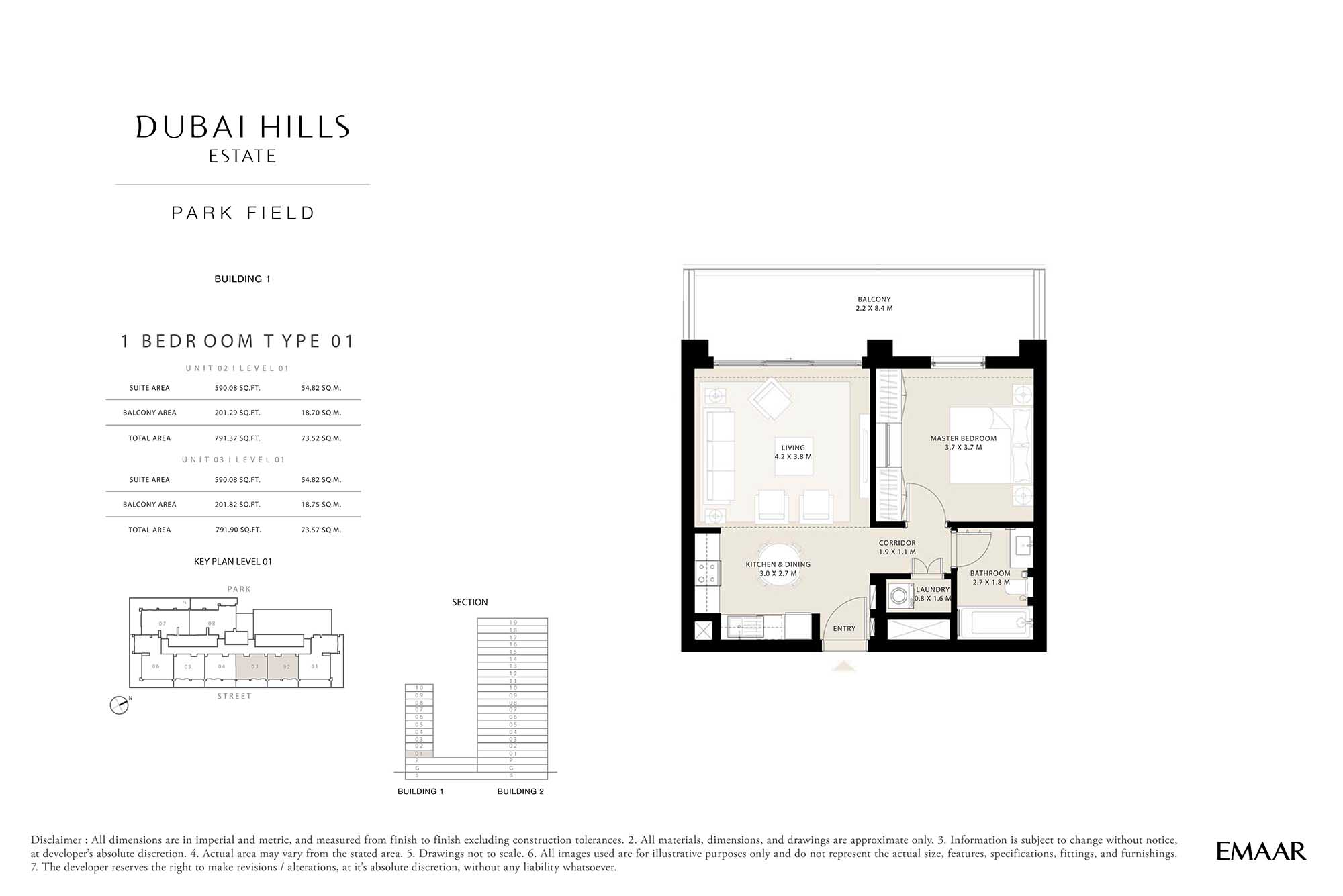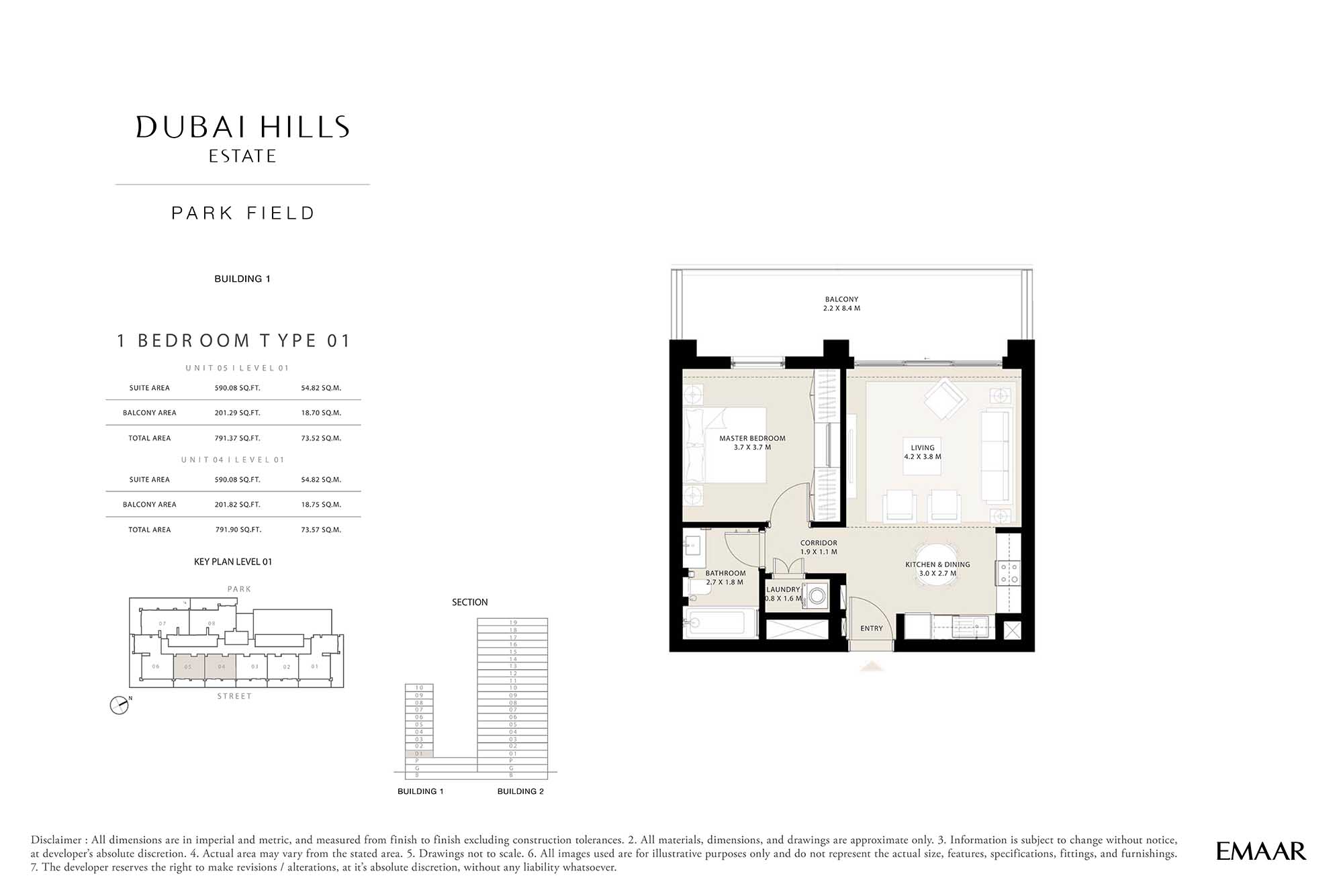 | Building 01 | 1 Bedroom | Level 01 (Type 01 - Unit 04 & 05) | 791.90 Sq Ft | Apartment |