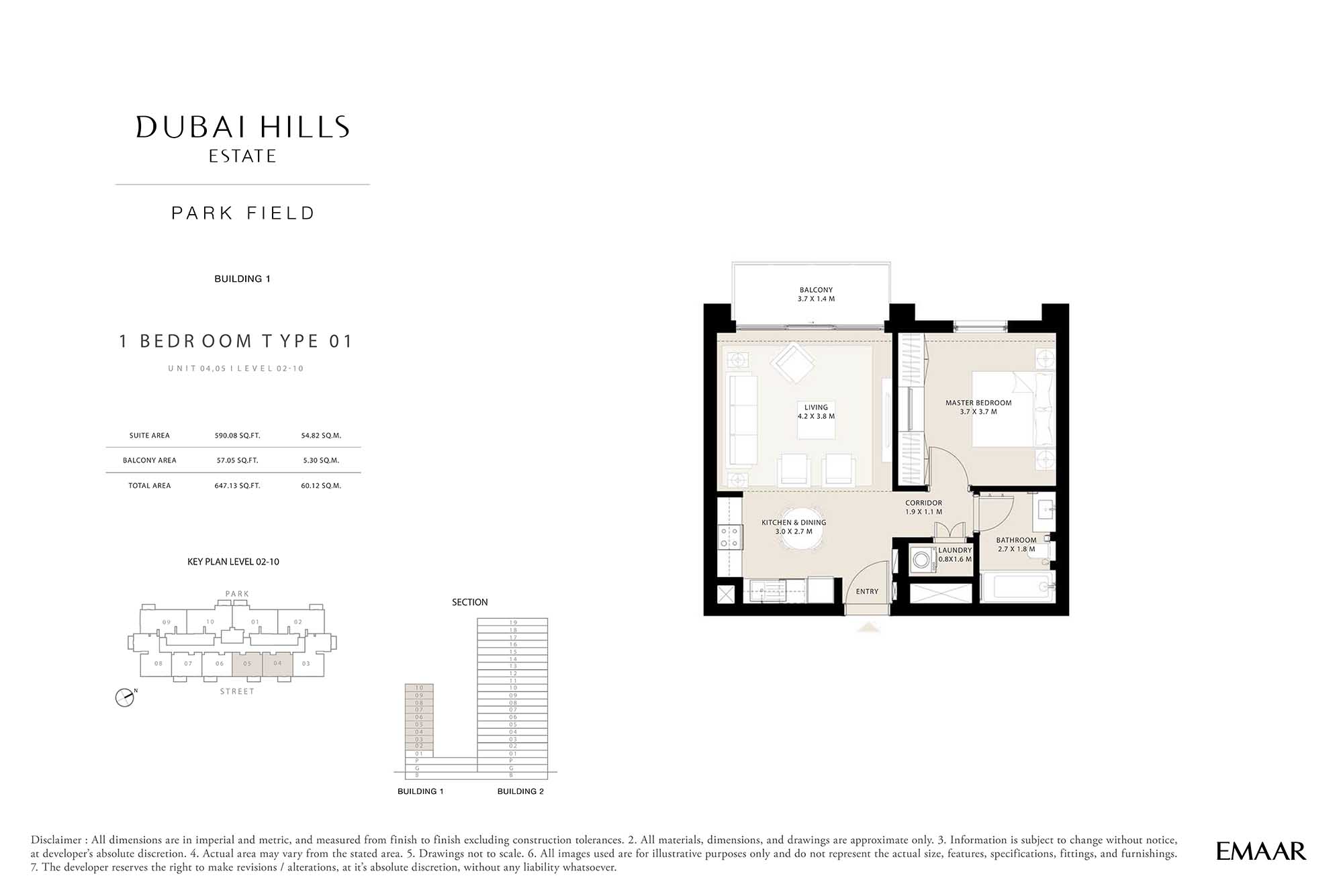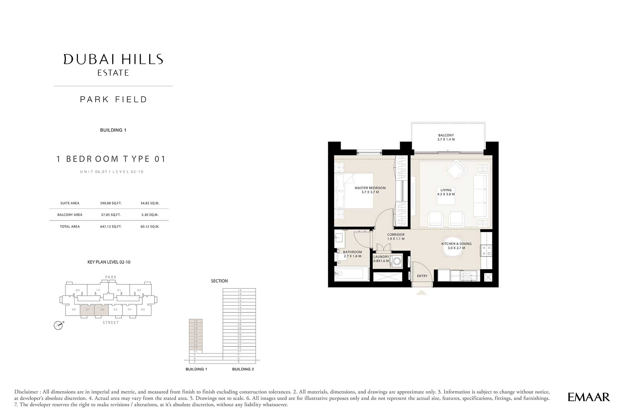 | Building 01 | 1 Bedroom | Level 02-10 (Type 01 - Unit 06 & 07) | 647.13 Sq Ft | Apartment |
