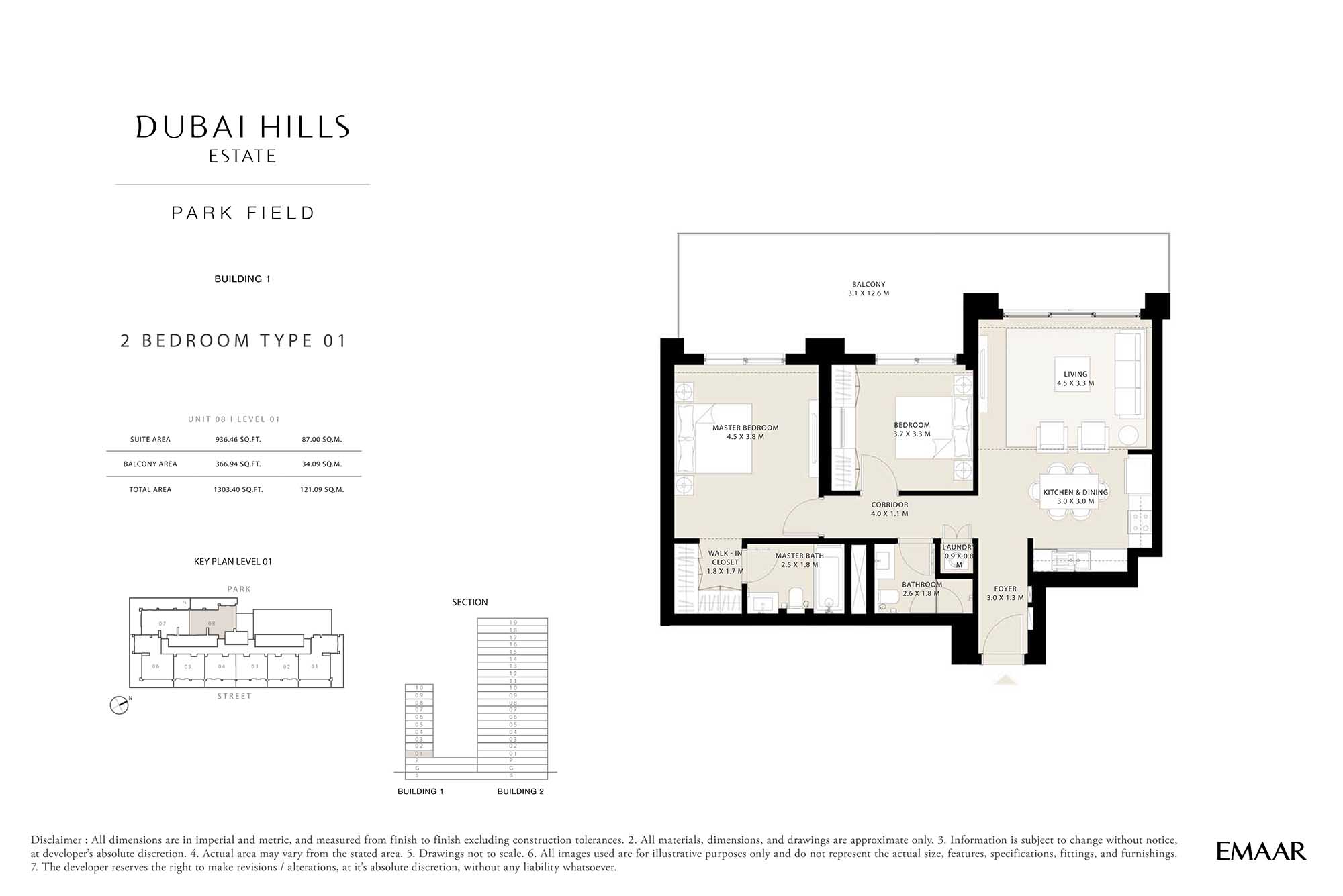 | Building 01 | 2 Bedrooms | Level 01 (Type 01 - Unit 08) | 1303.40 Sq Ft | Apartment |