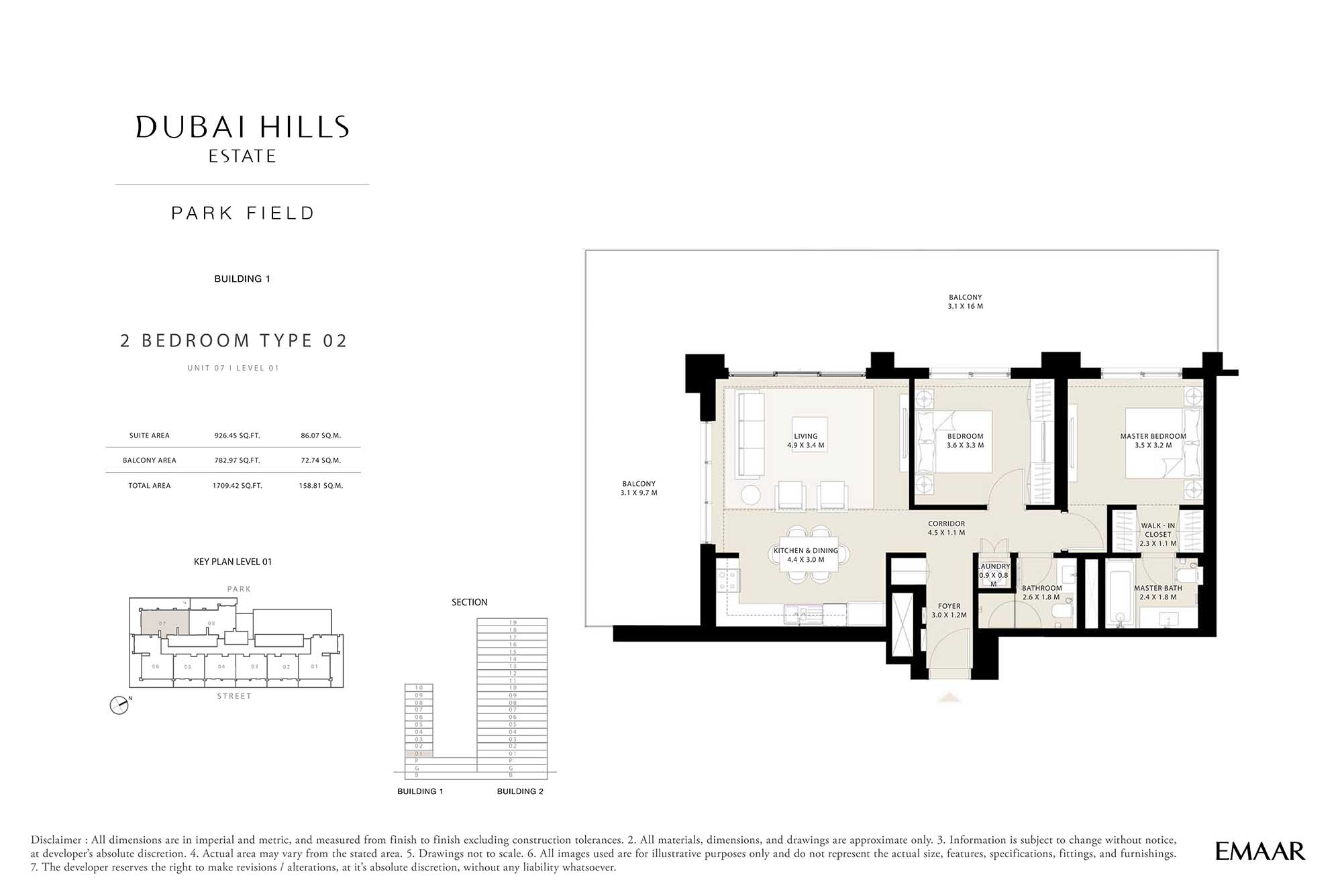 | Building 01 | 2 Bedrooms | Level 01 (Type 02 - Unit 07) | 1709.42 Sq Ft | Apartment |