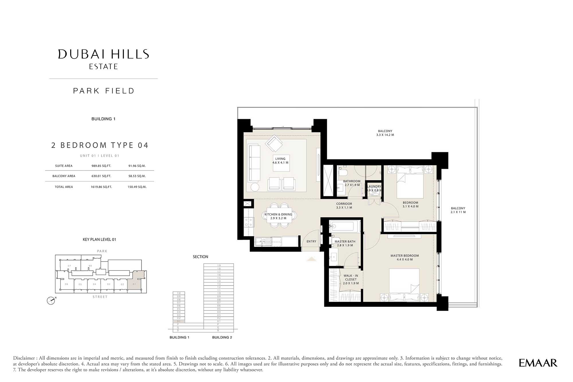 | Building 01 | 2 Bedrooms | Level 01 (Type 04 - Unit 01) | 1619.86 Sq Ft | Apartment |
