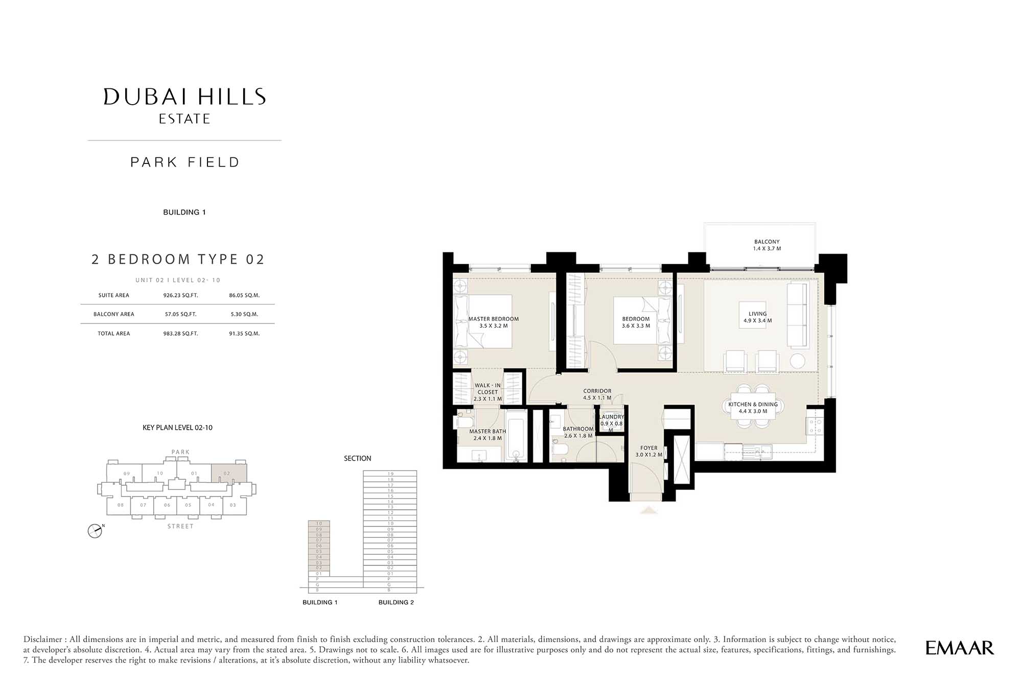 | Building 01 | 2 Bedrooms | Level 02-10 (Type 01 - Unit 02) | 983.28 Sq Ft | Apartment |