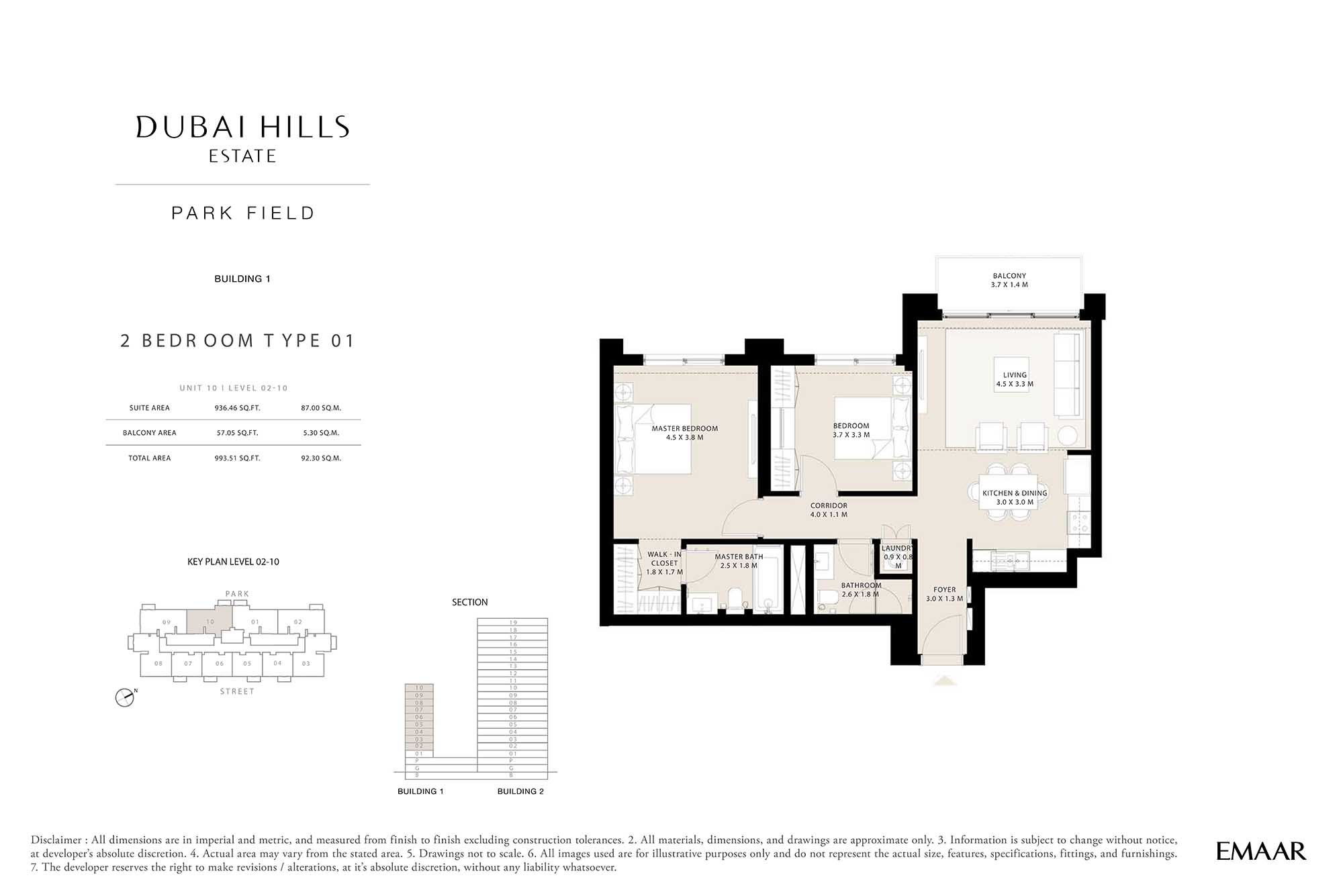 | Building 01 | 2 Bedrooms | Level 02-10 (Type 01 - Unit 10) | 993.51 Sq Ft | Apartment |
