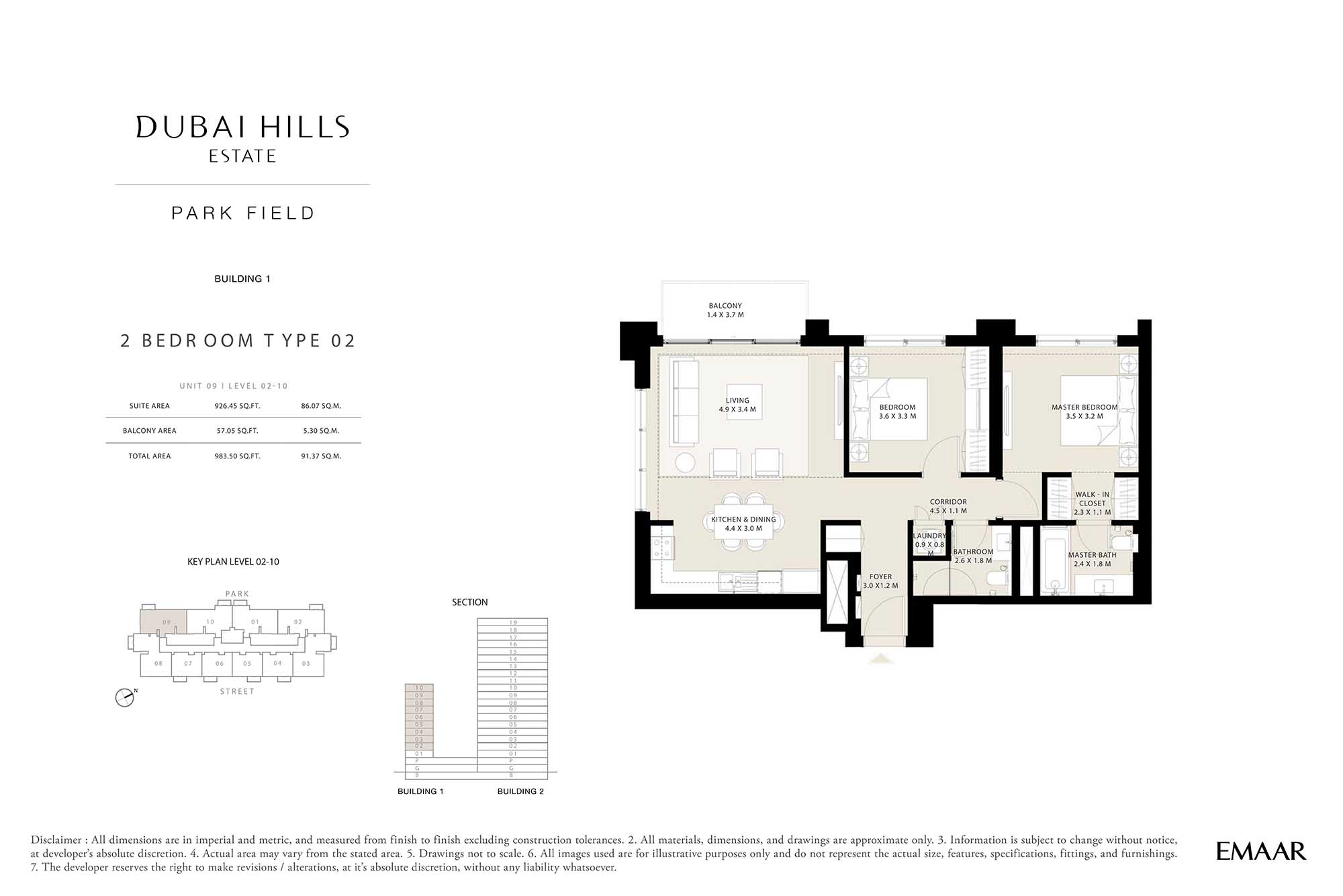 | Building 01 | 2 Bedrooms | Level 02-10 (Type 02 - Unit 09) | 983.50 Sq Ft | Apartment |
