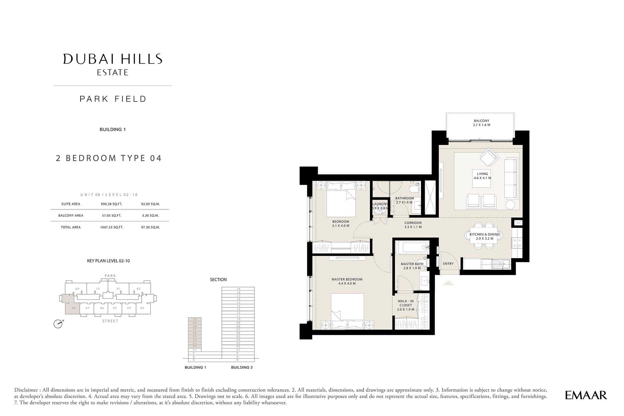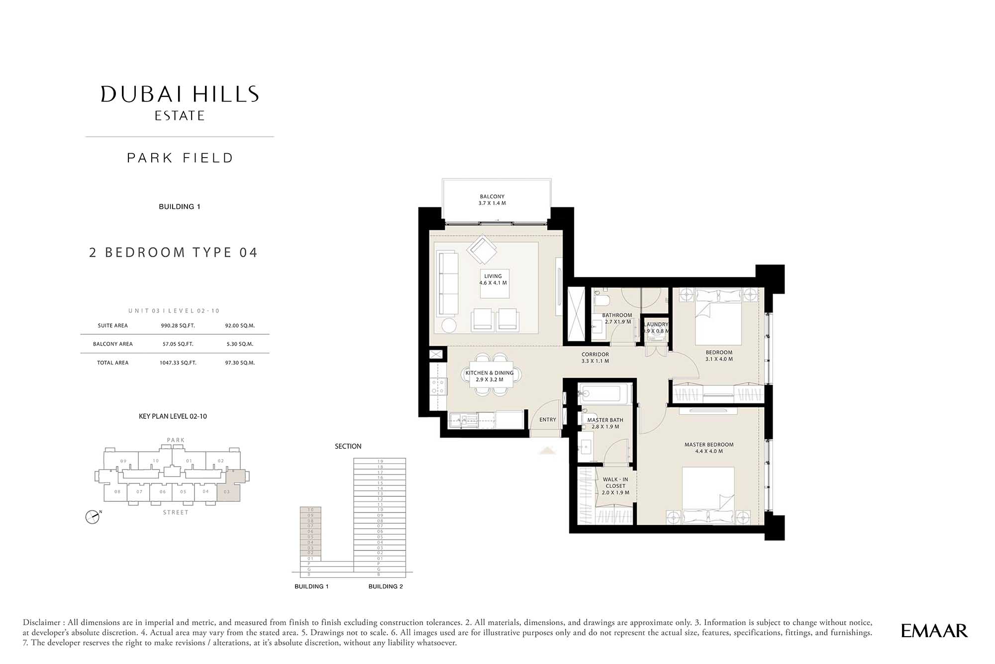 | Building 01 | 2 Bedrooms | Level 02-10 (Type 04 - Unit 08) | 1047.33 Sq Ft | Apartment |