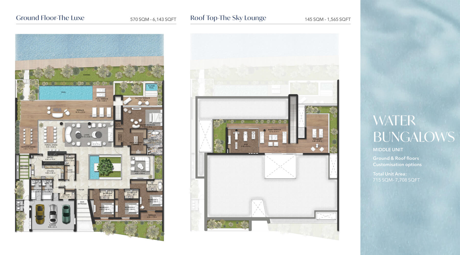Majid Plagette 32 offers an array of luxurious floor plans designed for refined living with water bungalows and club villas available at service. From the exclusive Water Bungalows lining the serene sandy lagoon to the bespoke Club Villas, each dwelling is meticulously crafted to blend seamlessly with the natural surroundings. Experience the epitome of elegance with private gardens, outdoor patios, and pools, all designed to elevate your lifestyle to new heights of comfort and sophistication.