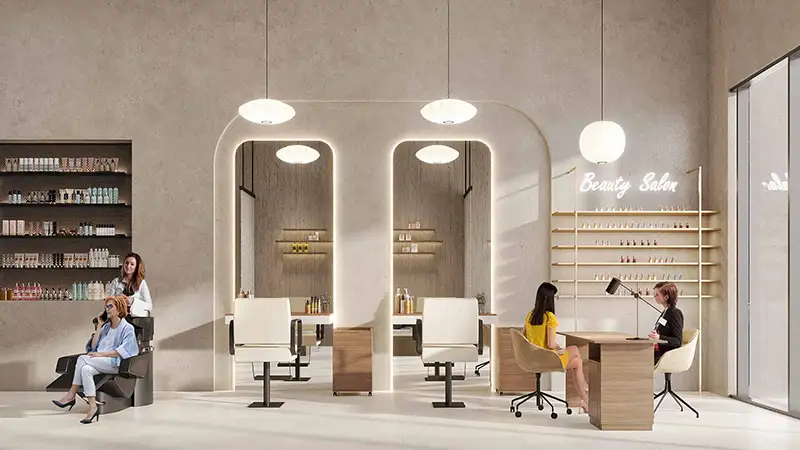 - The backside of the facade, the ground level features multiple retail shops such as supermarket, pharmacy management, water sport shop, barber, & a beauty center