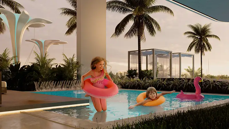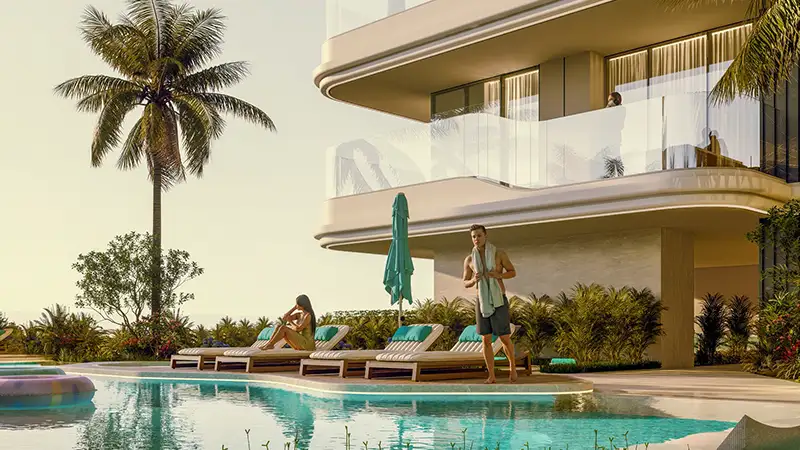 Reef 997 Residences at Dubai Islands rises as the great success story of Reef Developments, set to emerge as an Iconic residential address with 1 & 2-bedroom apartments, duplexes and penthouses. The facade transforms how one should live in the contemporary urban environment through its futurist design, meticulous details and adherence to the excellence of lifestyle. This is not some fanciful promise but a well-considered proposition that is where innovation meets island lifestyle, where climate-controlled winter gardens and the world's first patented cooled outdoor amenities transform average balconies into private, year-round sanctuaries. Here, the architectural gesture is designed to make outdoor living as easy and appealing to the senses as the indoors.