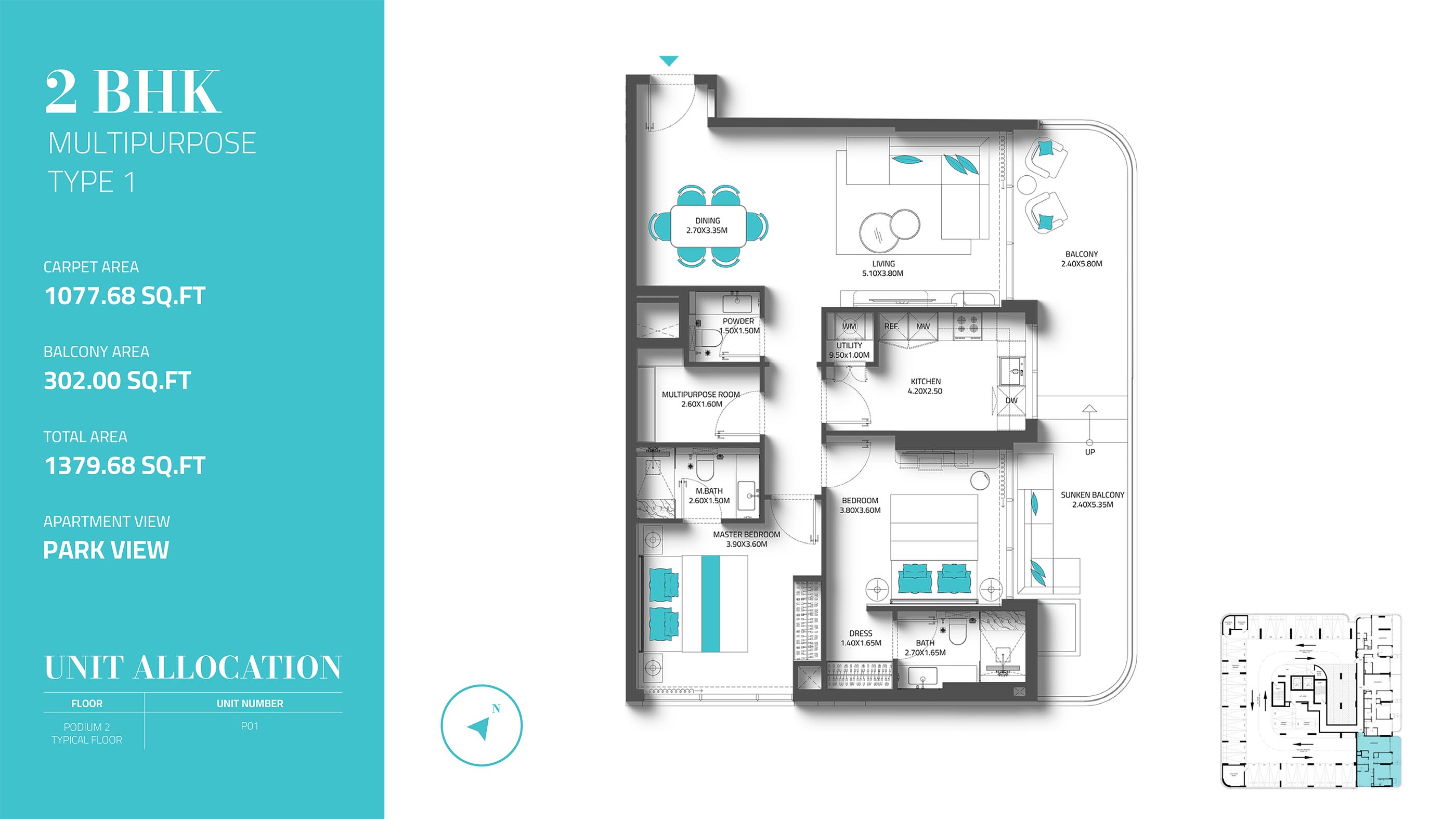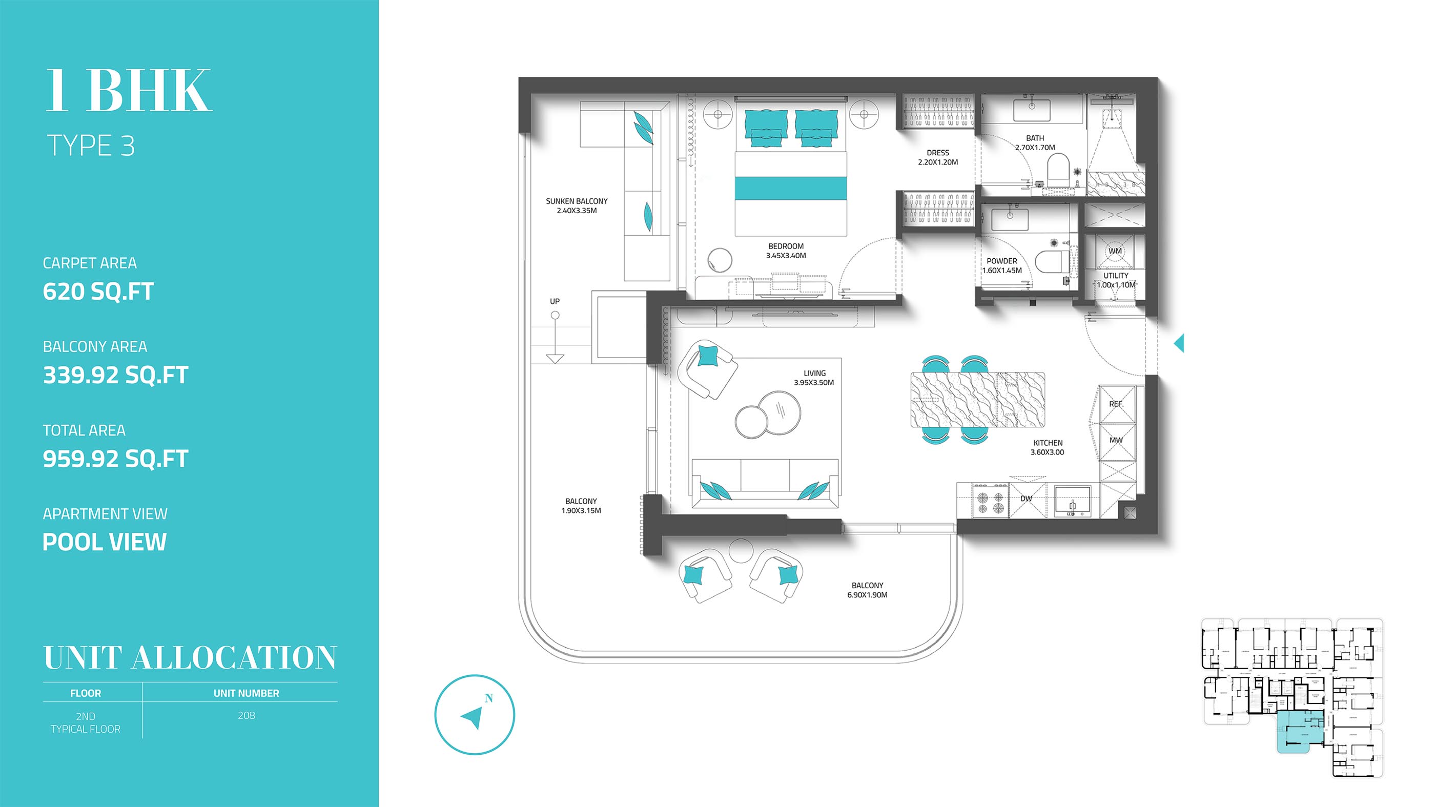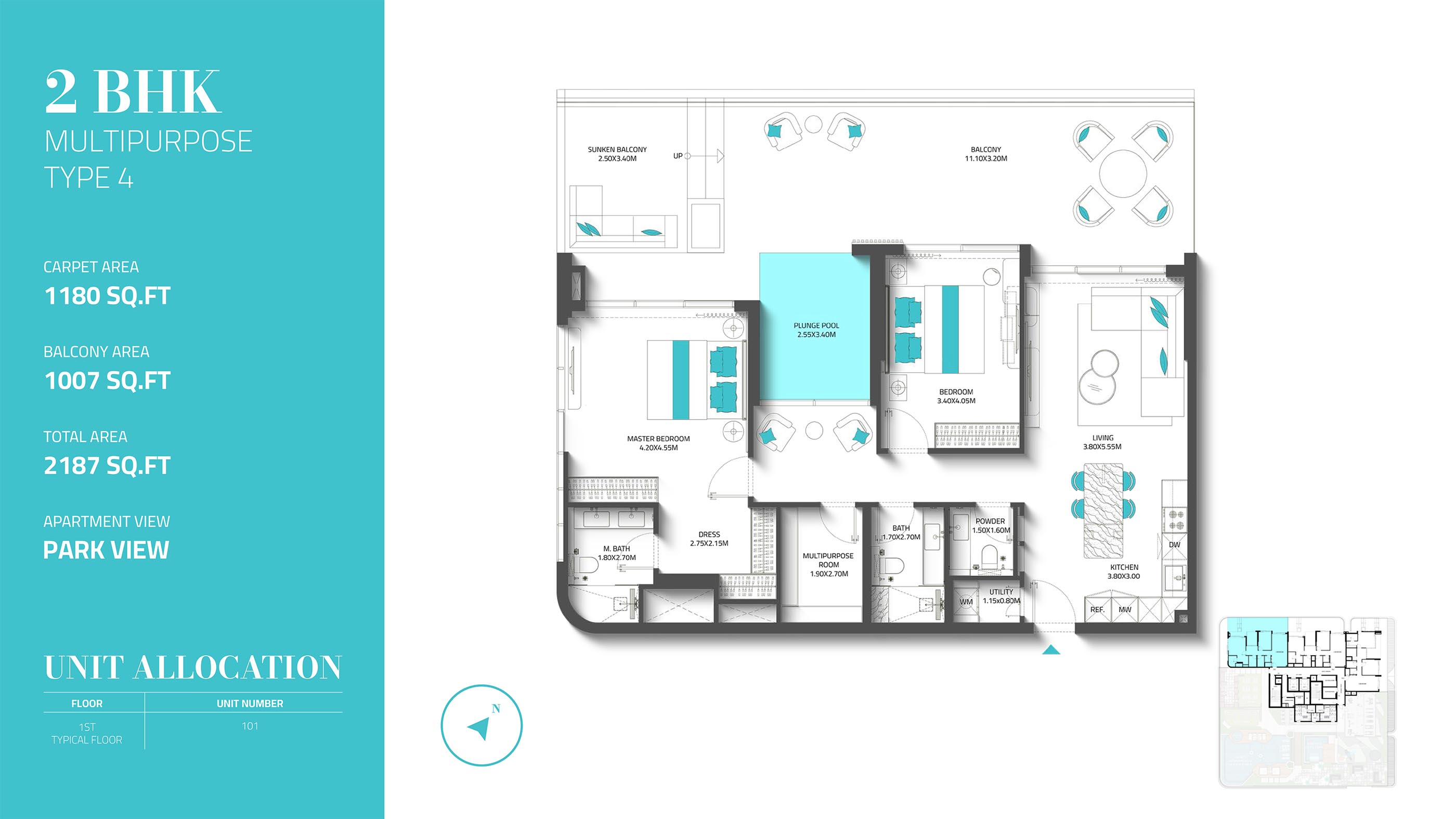 Architecturally, the façade reads as a deliberate composition of form, light and materiality. The building rises as G+2P+8, a detail which respects the low-rise cadence of a quality island enclave, while establishing expansive views from multiple vista points. Large glazed areas and well-proportioned volumes, allow the interiors to breathe and draw in natural light, whilst a minimal approach to facade details and clean lines provide a modern coastal style that responds to the surroundings. The façade is calibrated to form leisure design, winter gardens and sunken balconies that are both private and generous at the same time and the circulation strategy places well-defined, approachable public spaces that set a refined tone of arrival to homecoming.