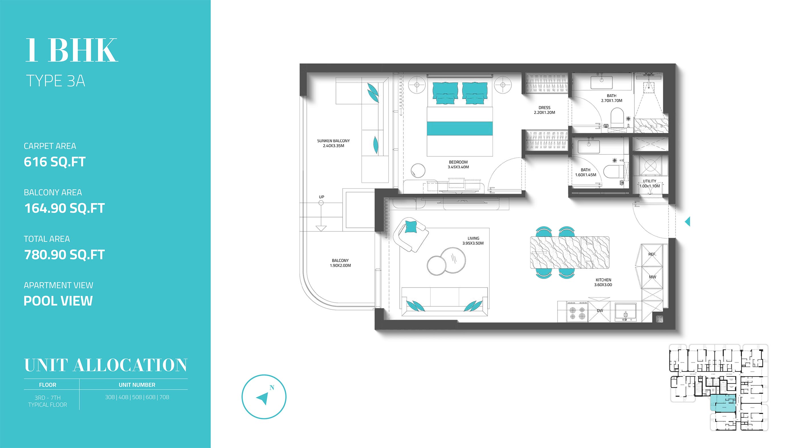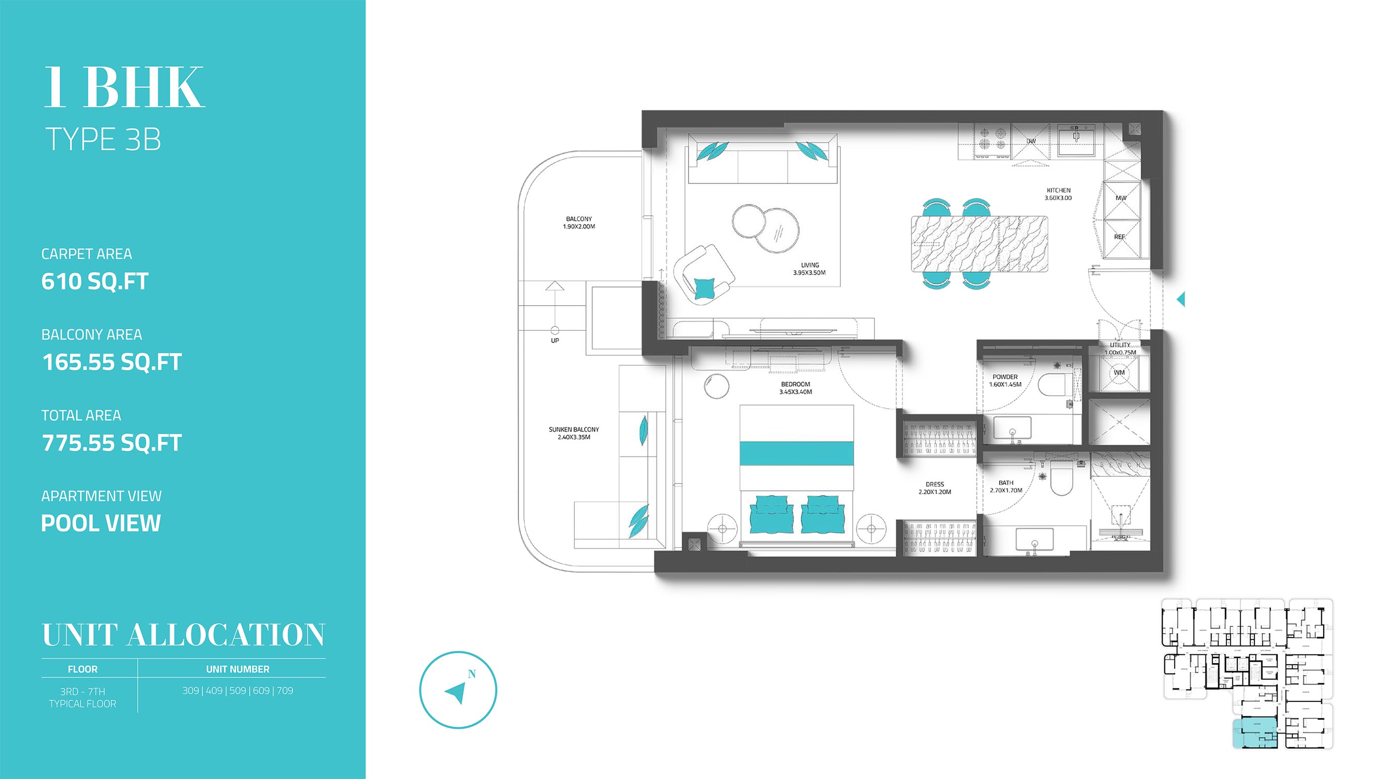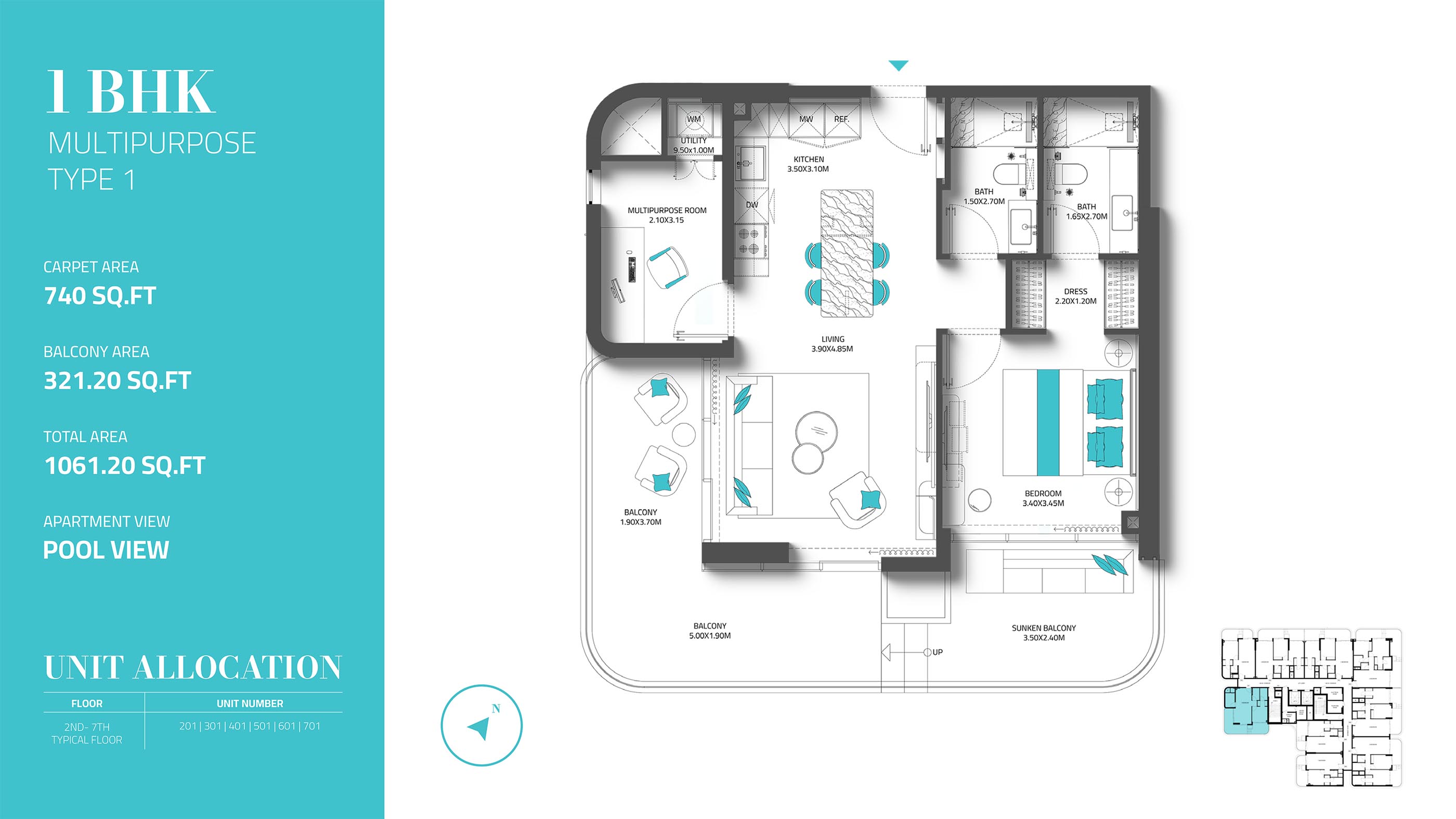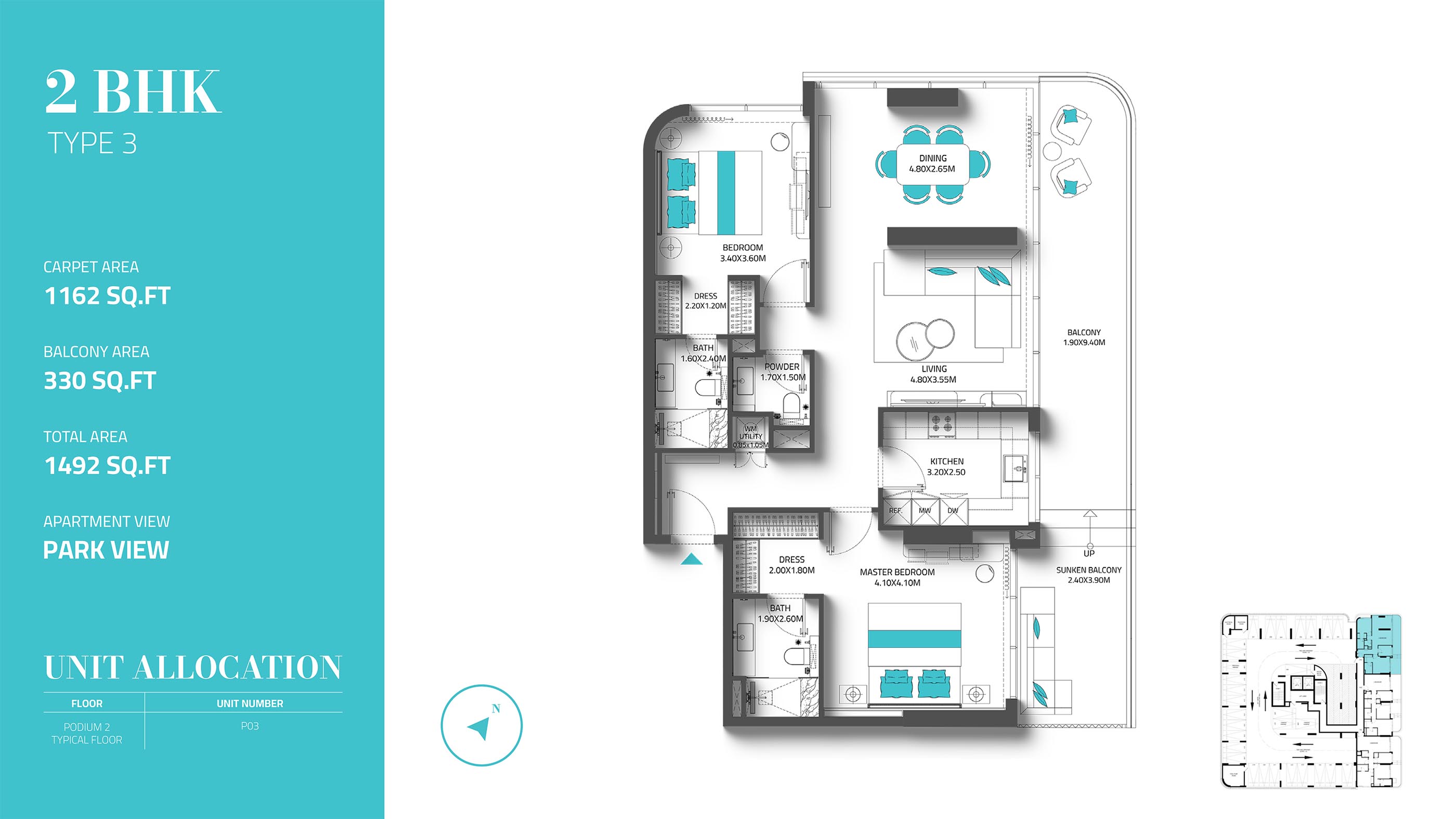 The Reef 997 Residences floor plans have been crafted to be versatile with 1 and 2-bedroom apartments, 3-bedroom duplexes, 4 bedroom penthouses. Interiors are spacious with open plan designs, a design which combines the living and dining and kitchen areas with bedrooms in strategic positions in an attempt to get maximum privacy. Floor-to-ceiling windows ensure that there is an abundance of natural light and also balcony introduces the outdoors to the places, where people live and this offers a refreshing view. Living is further enhanced with quality finishes, efficient storage solutions and intelligent details. Both style and functionality are optimized into each unit into a home that is as practical as it is appealing to the residents.