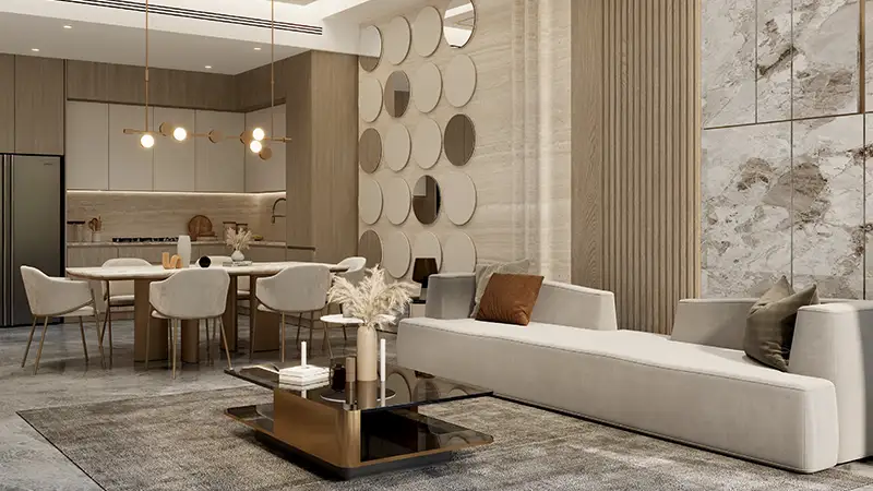 With a limited number of homes, this address features thoughtfully crafted units with quality finishes and sizes. There are most of the units with distinctive layouts offering private pools, additional spaces, and without pools. In each unit living room reflects a fusion of style and simplicity, while the neutral palette, furnished seating area and a dining area create a clutter-free and functional ambience for families. The huge windows in the living room and bedrooms keep the rooms sun-lit and frame the panoramic views of the locality.