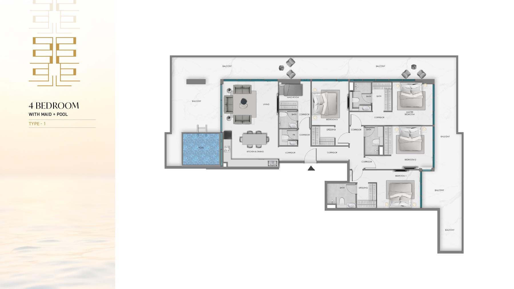 - Presenting a series of opulent 1, 2, 3, & 4-bedroom apartments with personal pools, storeroom, laundry, & maid room in selected units