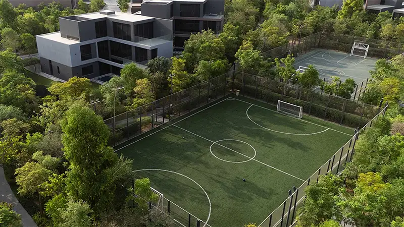In this cluster, you will find a diverse configuration of dark, neutral, earthy, and soft tones in the facade of homes. Each one holds a minimalist yet compelling and unique identity, surrounded by lush green spaces. The pedestrian-friendly locality offers seamless access to the bustling soul of this community, and the entire landscape is surrounded by more than a hundred thousand trees, while jogging & cycling tracks, lush areas for relaxation, a central lagoon pool with landscaped waterfalls for showpieces, a modern gym and cafes are complementing this family-focused heaven.