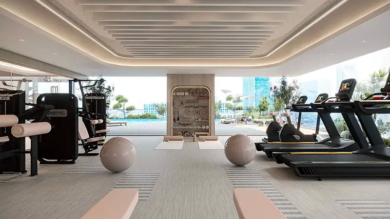 - Exceptional amenities of an infinity rooftop pool, sauna, kids’ pool, a Jacuzzi, ice bath therapy zone, a gym, a BBQ area, a cinema, and a lounge