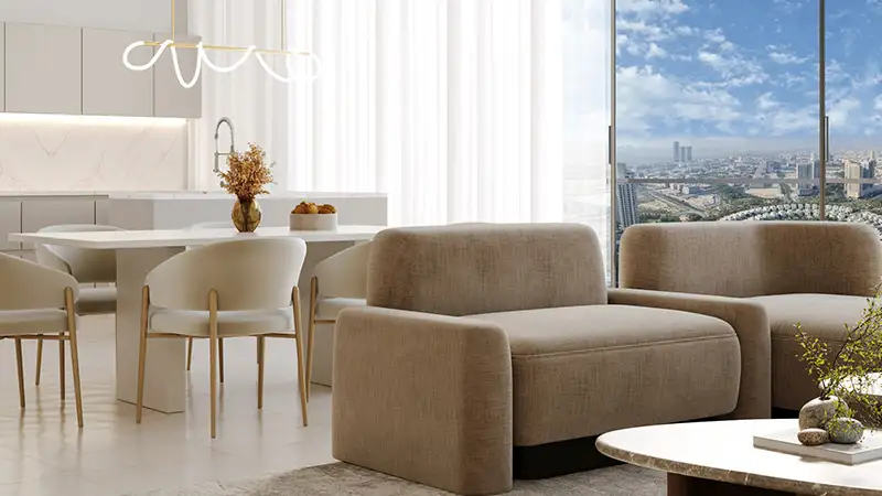 Sereno Residences at JVC represents the new era of residential luxury developed by Svarn Development offering premium collection of studios, 1 and 2 bedroom apartments in Dubai. With 91 thoughtfully designed residences, it presents a sanctuary where simplicity, tranquillity, and modern living meet. Imagine an environment where each day feels like a breath of fresh air, a place where you can unwind, recharge, and live at your own rhythm. Whereas the façade is designed to be a peaceful retreat that encourages mindfulness and connection with nature.