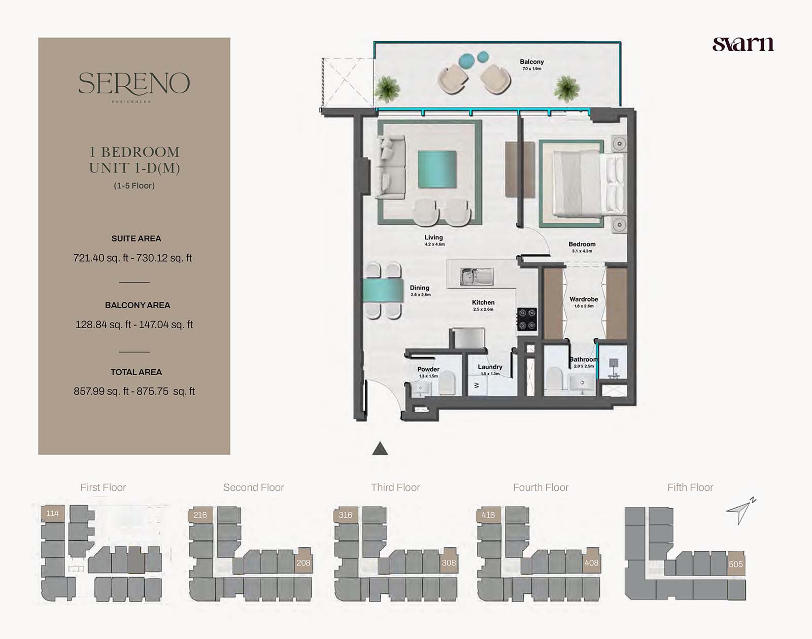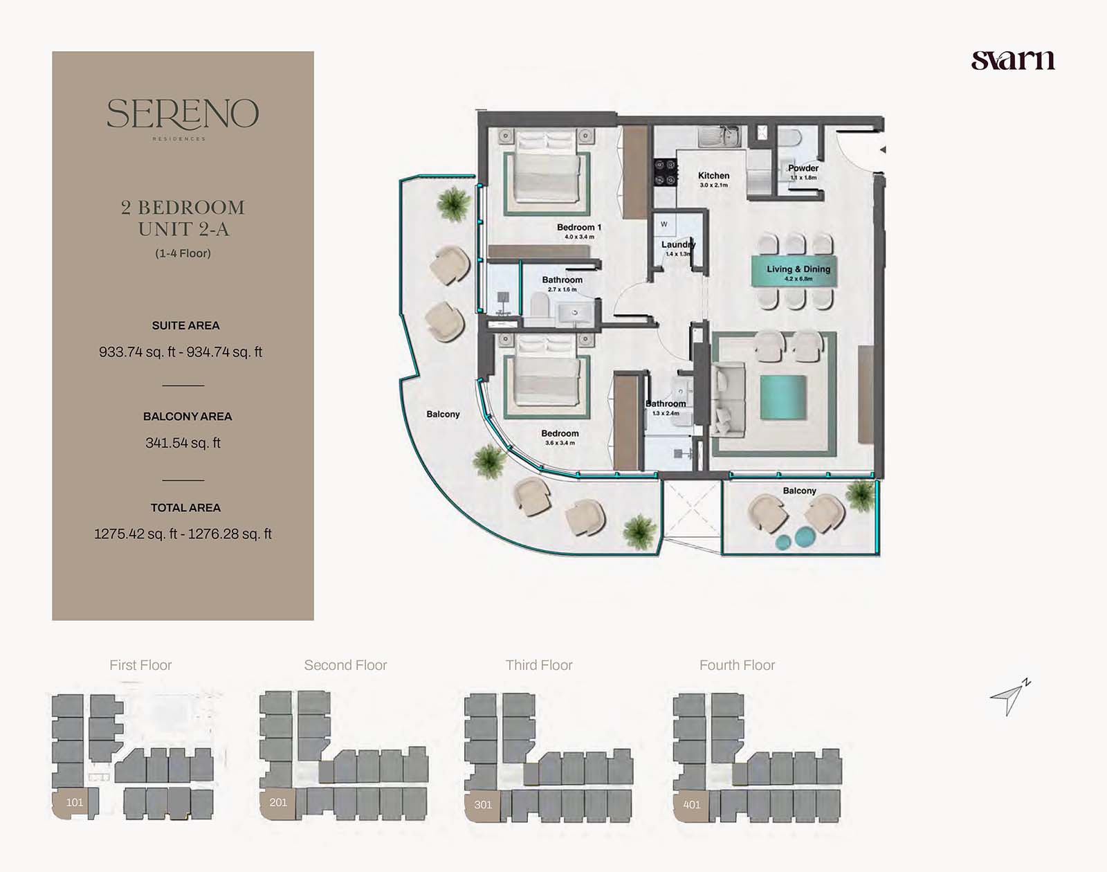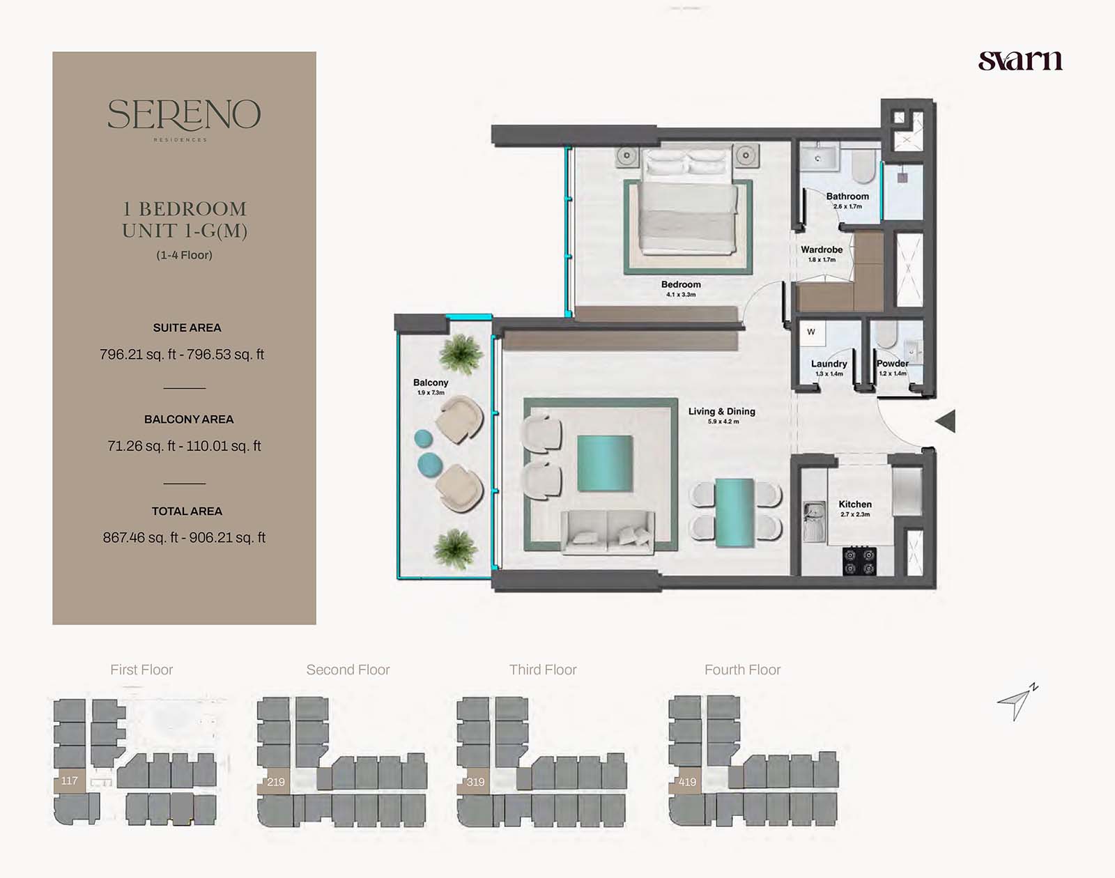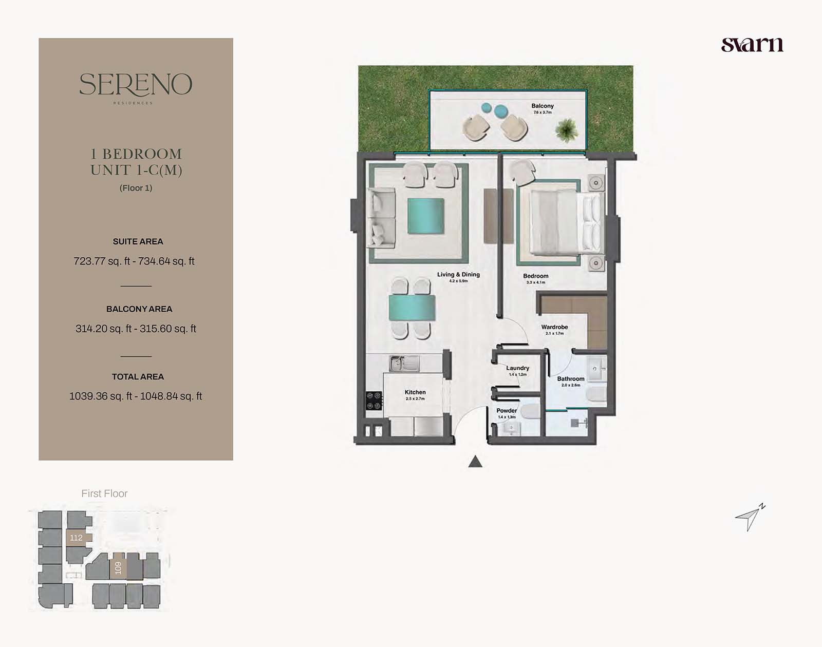 Sereno Residences offers a selection of meticulously designed floor plans of studios, 1 and 2-bedroom apartments that cater to a variety of lifestyles. The residences are thoughtfully crafted to maximize space, natural light, and functionality, ensuring that it provides a comfortable and welcoming living environment. Each unit features open-plan living spaces, spacious bedrooms, and modern kitchens equipped with high-quality finishes and German appliances. The floor-to-ceiling windows allow residents to enjoy stunning views of the community’s green spaces while flooding the interiors with natural light.