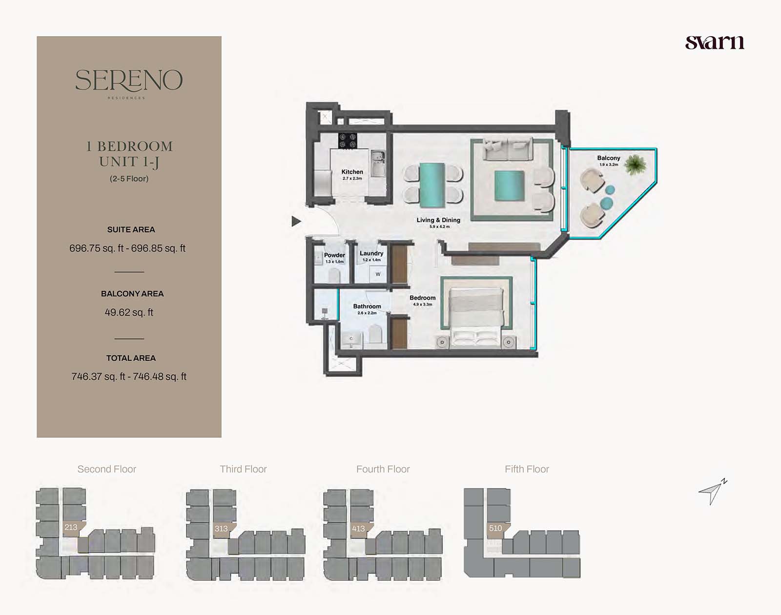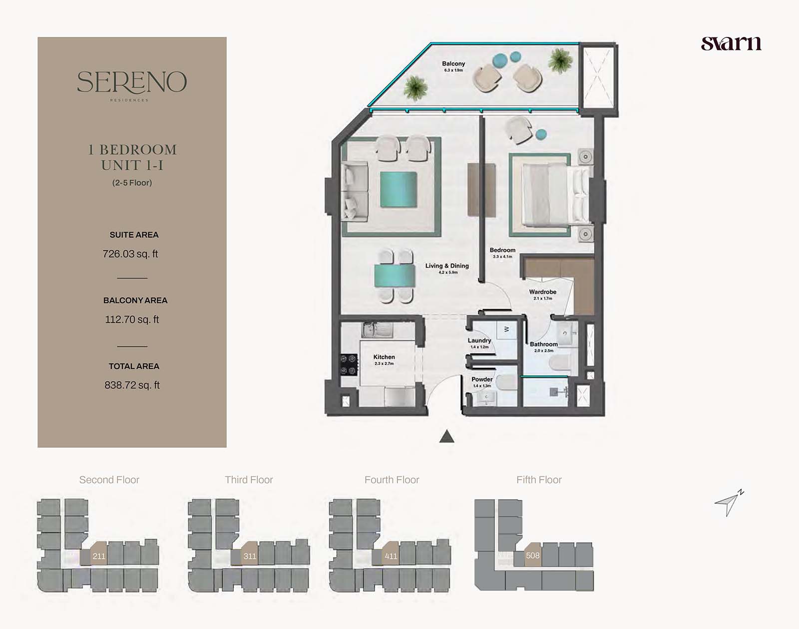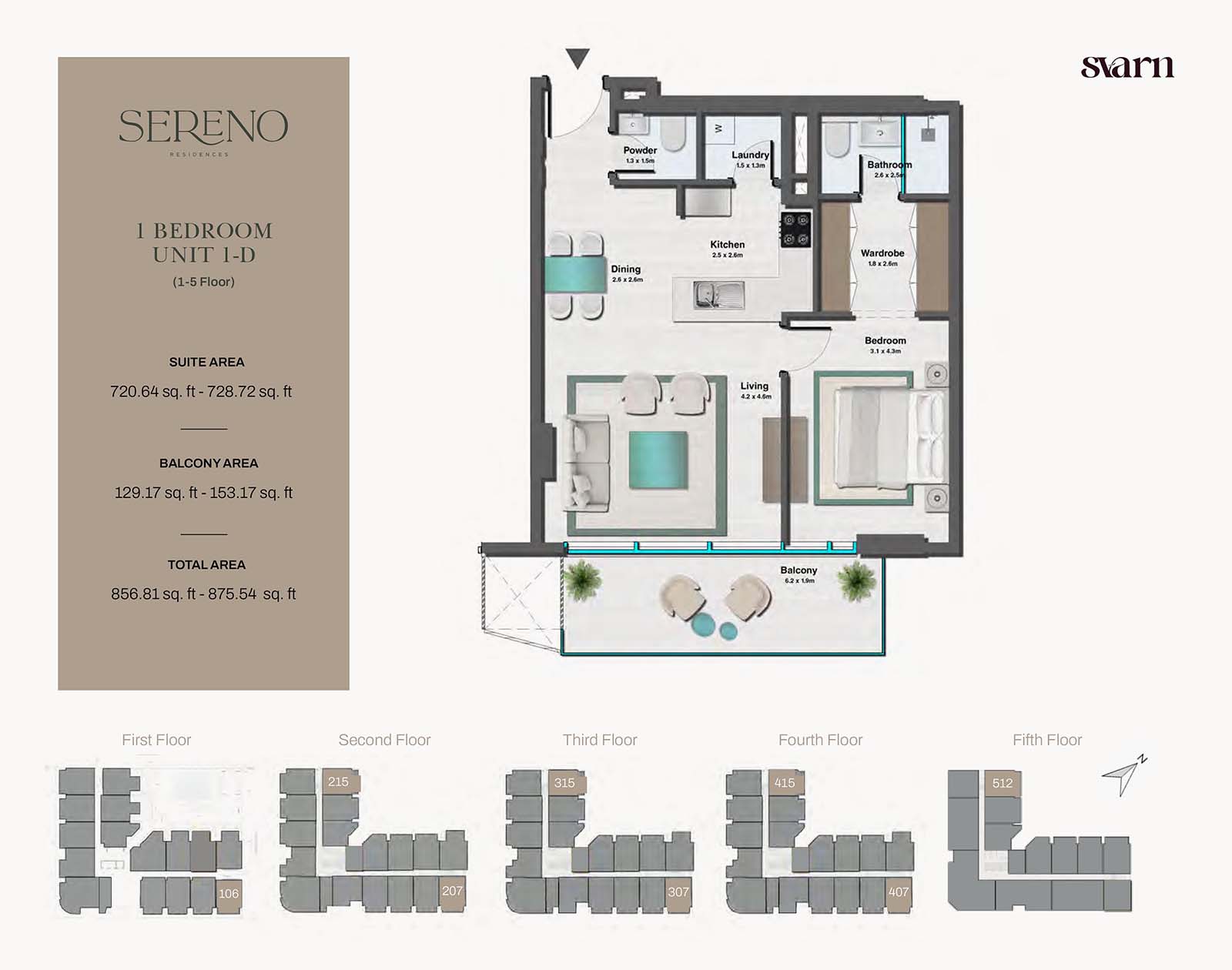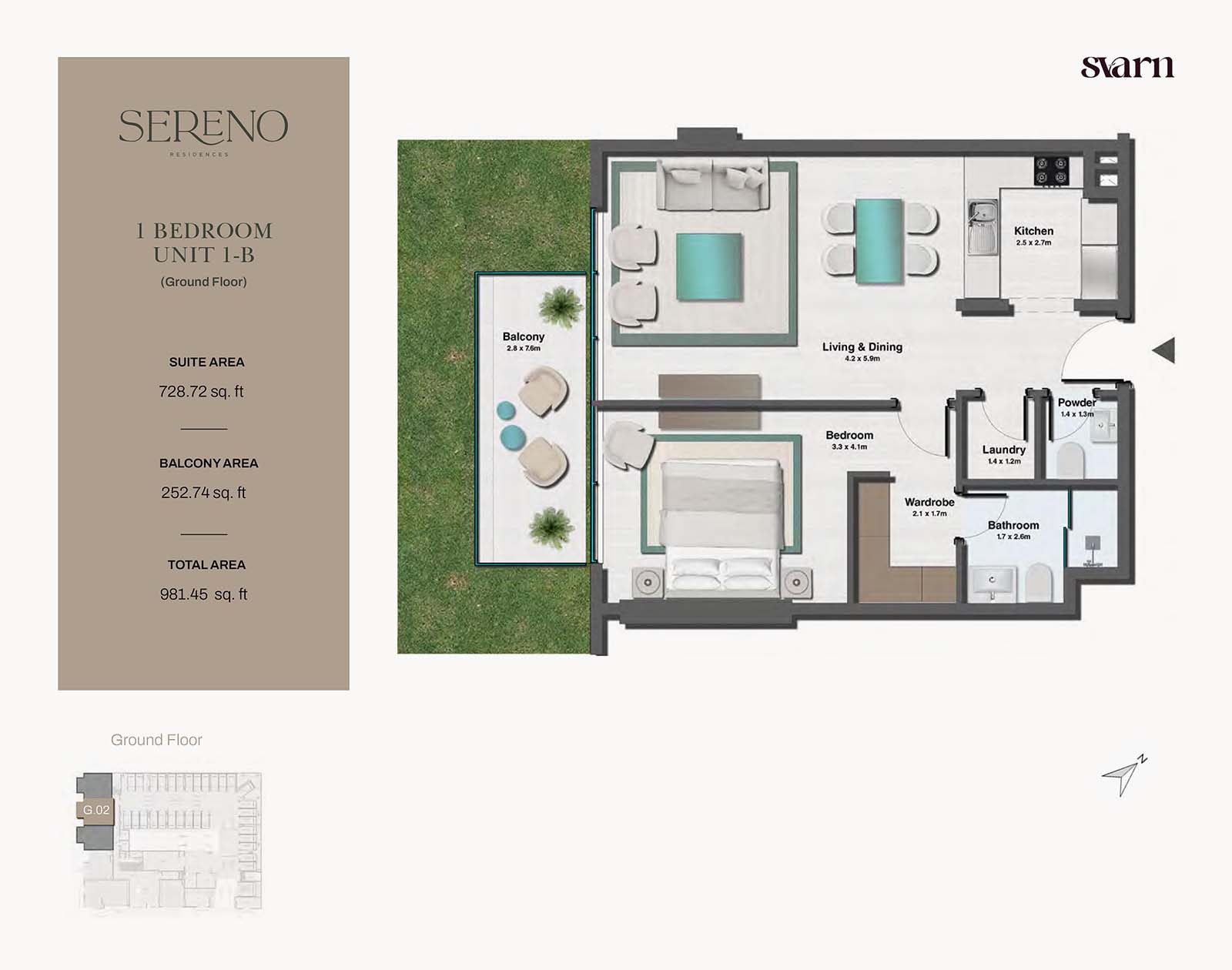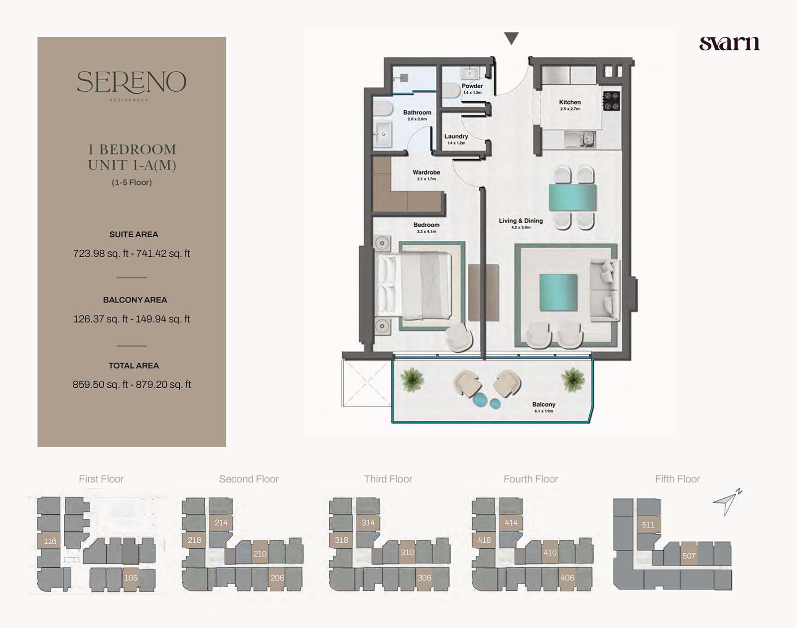Sereno Residences offers a selection of meticulously designed floor plans of studios, 1 and 2-bedroom apartments that cater to a variety of lifestyles. The residences are thoughtfully crafted to maximize space, natural light, and functionality, ensuring that it provides a comfortable and welcoming living environment. Each unit features open-plan living spaces, spacious bedrooms, and modern kitchens equipped with high-quality finishes and German appliances. The floor-to-ceiling windows allow residents to enjoy stunning views of the community’s green spaces while flooding the interiors with natural light.