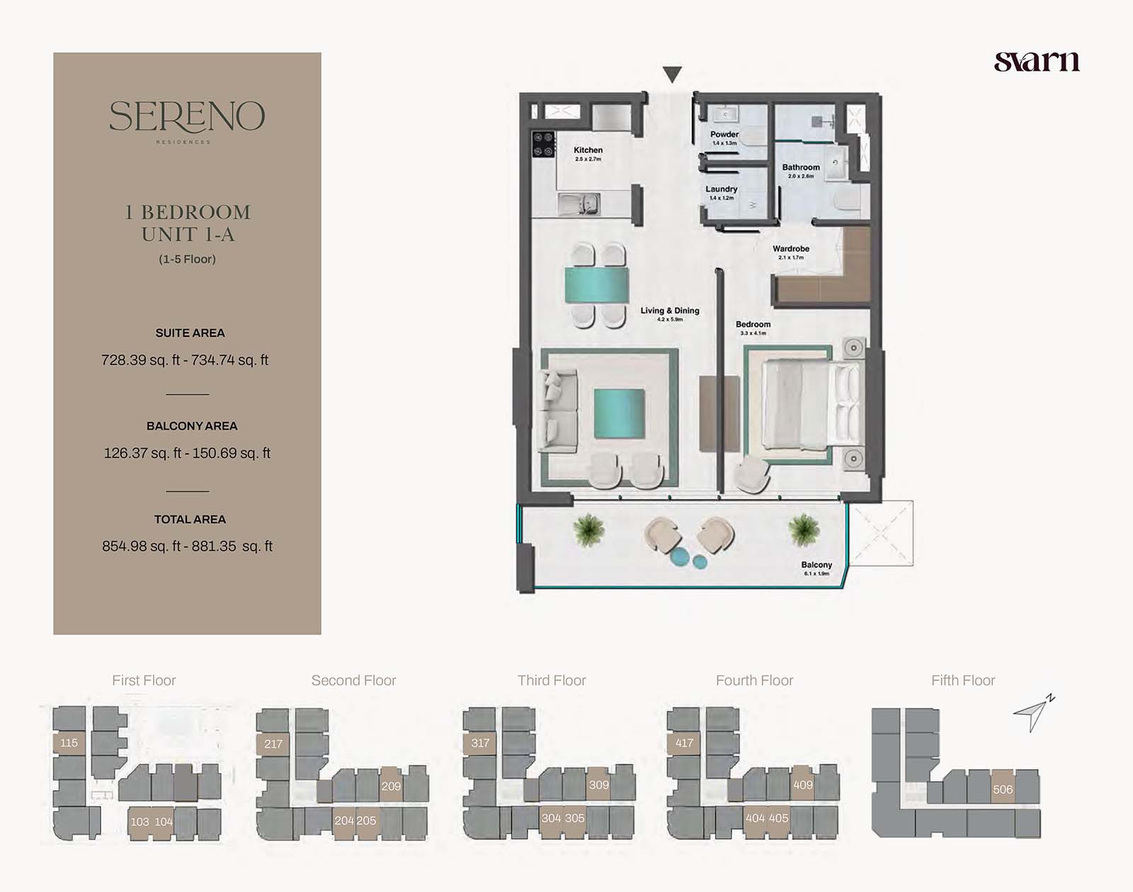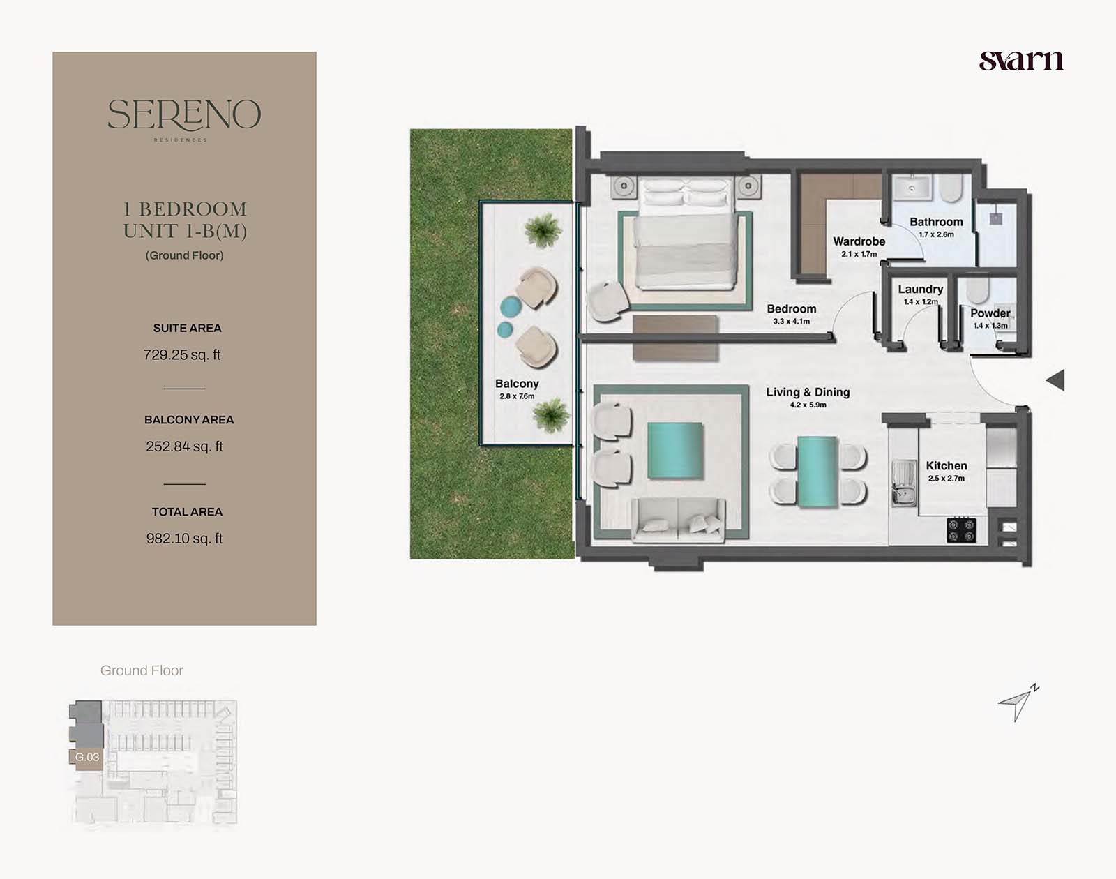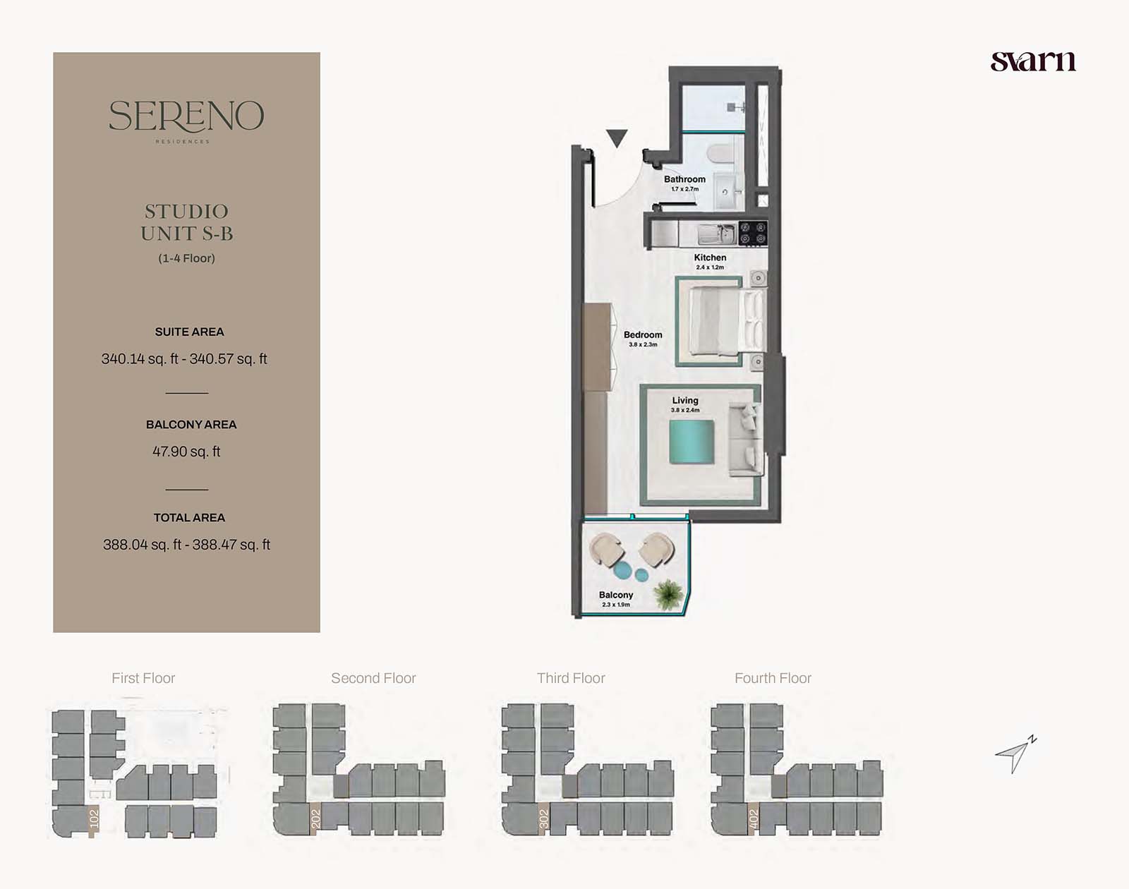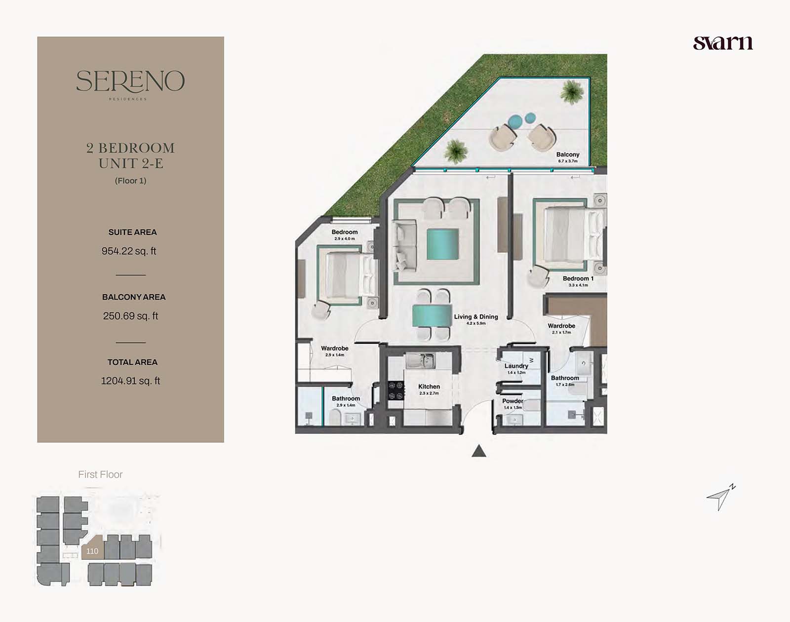 Sereno Residences offers a selection of meticulously designed floor plans of studios, 1 and 2-bedroom apartments that cater to a variety of lifestyles. The residences are thoughtfully crafted to maximize space, natural light, and functionality, ensuring that it provides a comfortable and welcoming living environment. Each unit features open-plan living spaces, spacious bedrooms, and modern kitchens equipped with high-quality finishes and German appliances. The floor-to-ceiling windows allow residents to enjoy stunning views of the community’s green spaces while flooding the interiors with natural light.