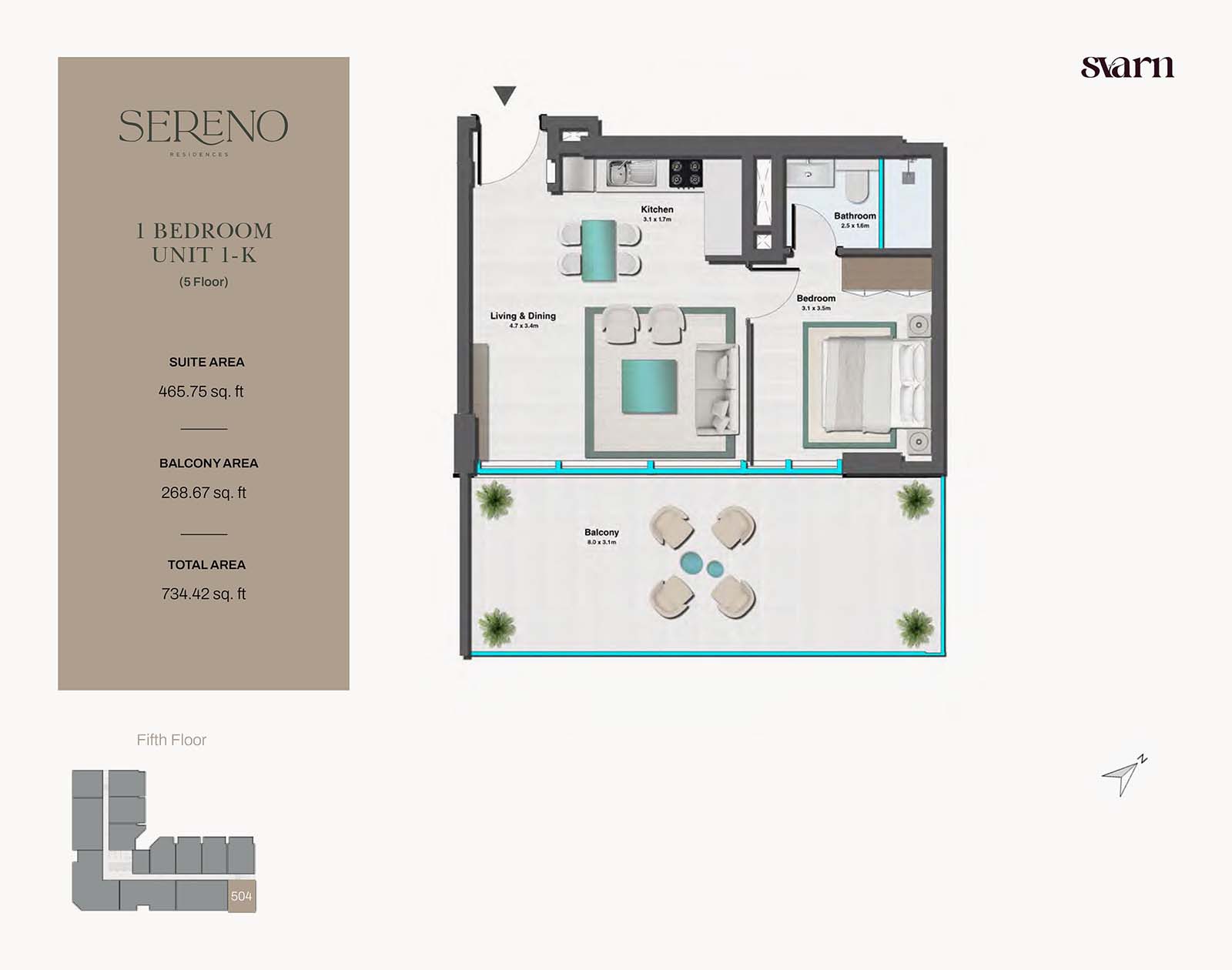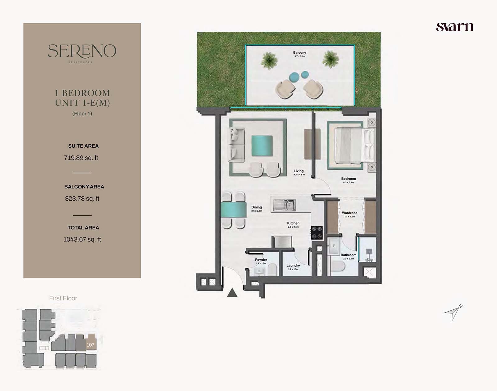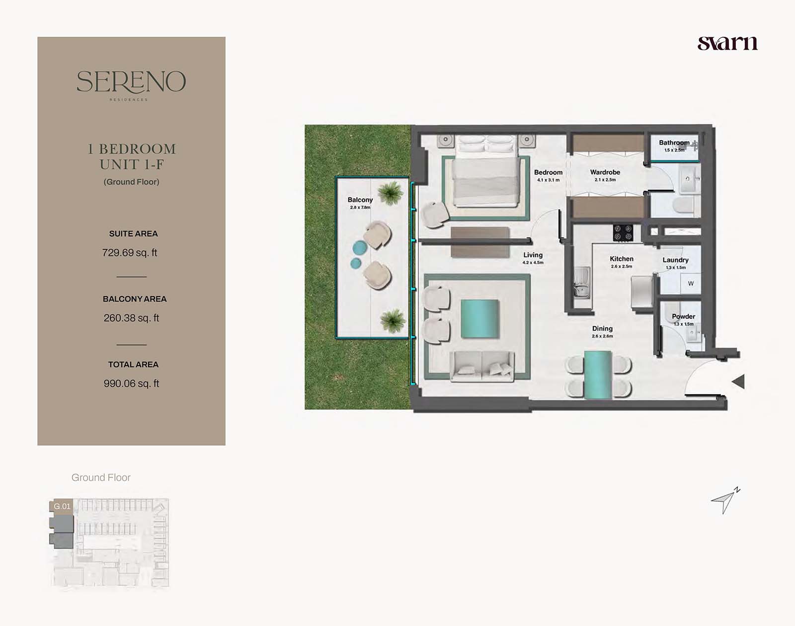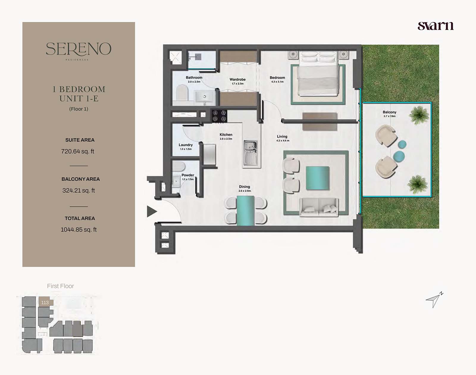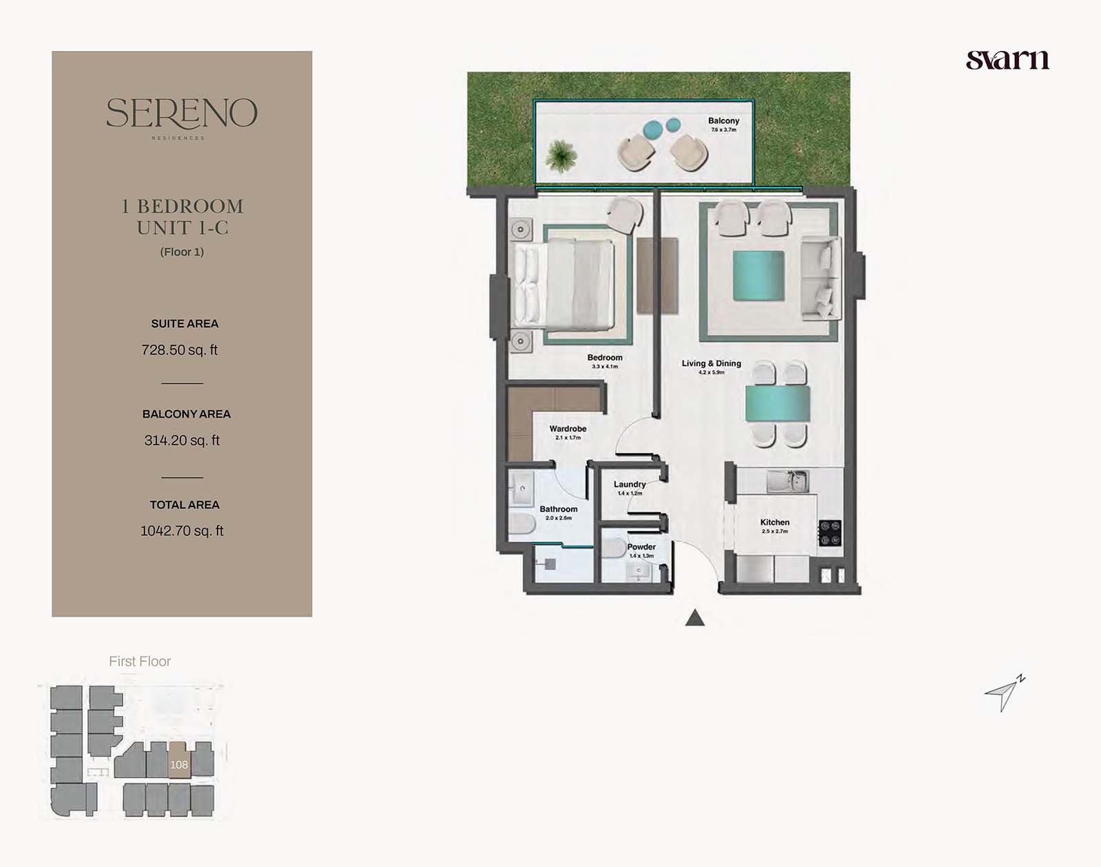 Sereno Residences offers a selection of meticulously designed floor plans of studios, 1 and 2-bedroom apartments that cater to a variety of lifestyles. The residences are thoughtfully crafted to maximize space, natural light, and functionality, ensuring that it provides a comfortable and welcoming living environment. Each unit features open-plan living spaces, spacious bedrooms, and modern kitchens equipped with high-quality finishes and German appliances. The floor-to-ceiling windows allow residents to enjoy stunning views of the community’s green spaces while flooding the interiors with natural light.