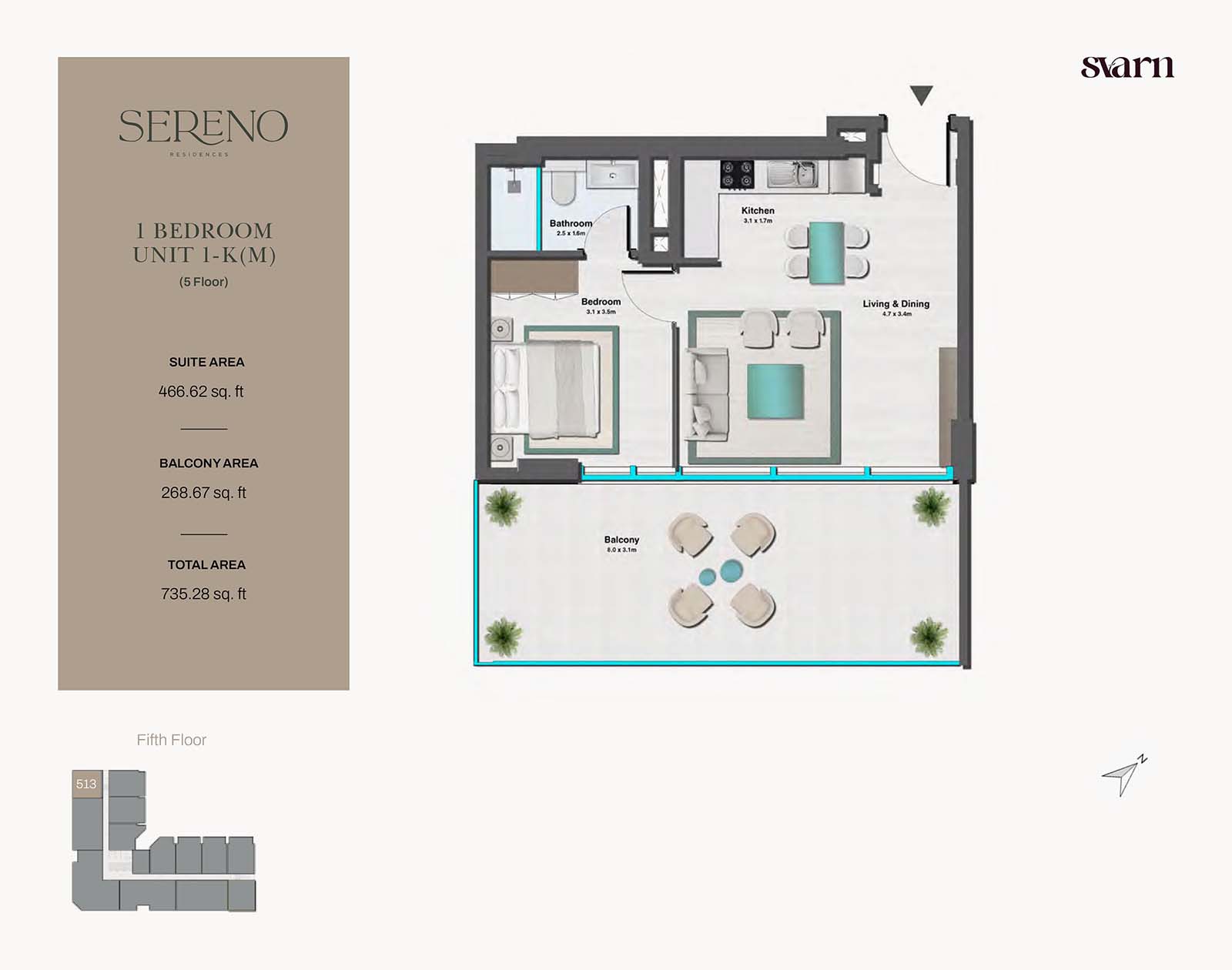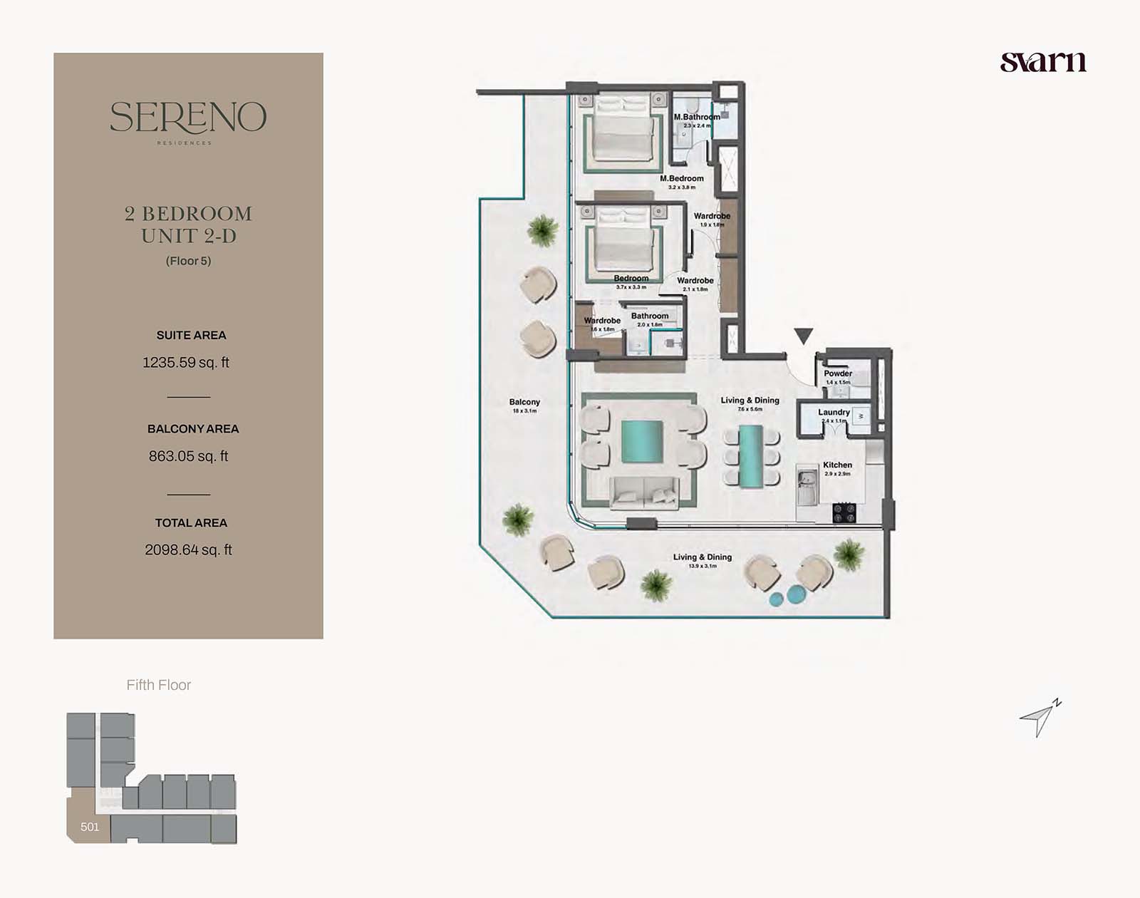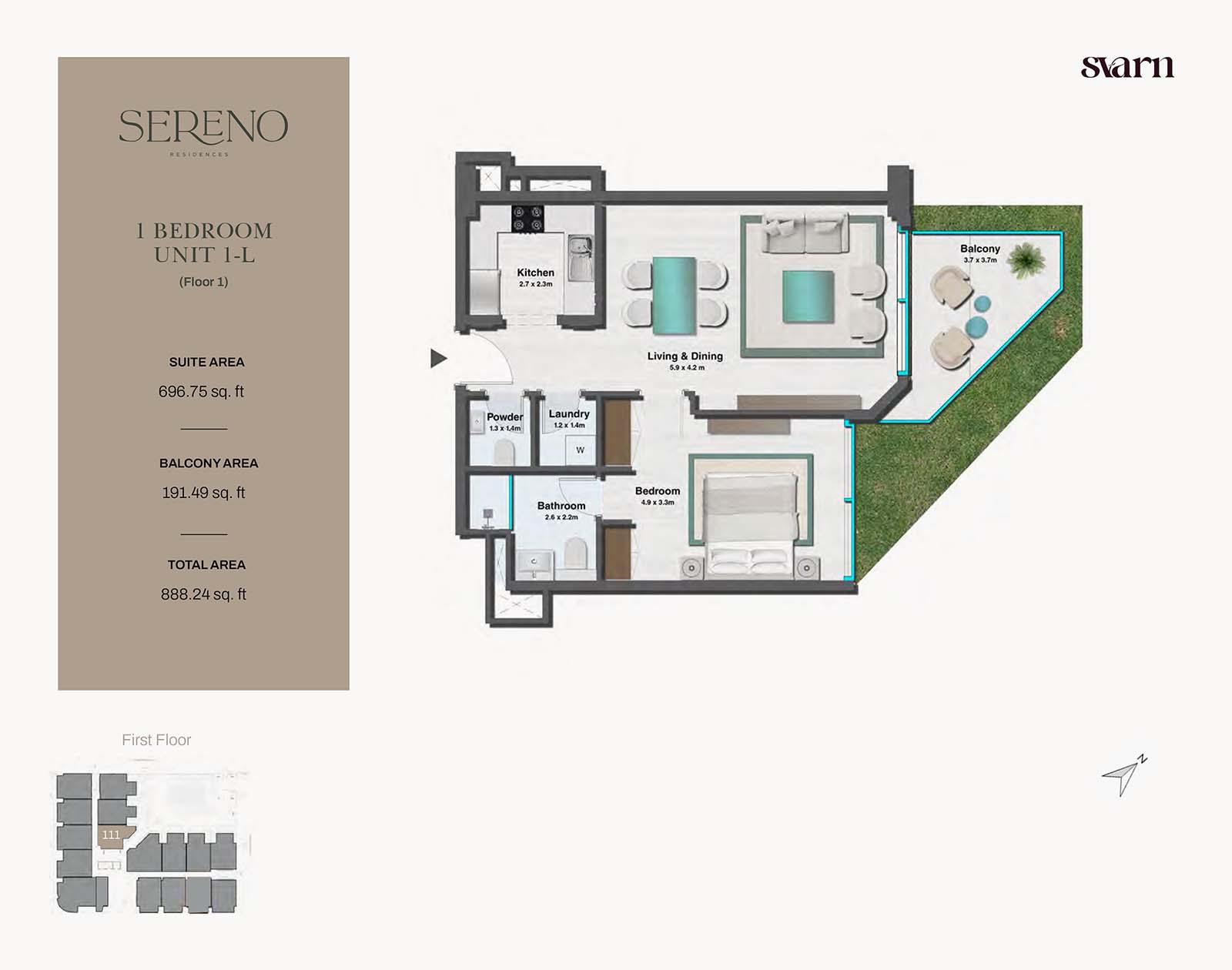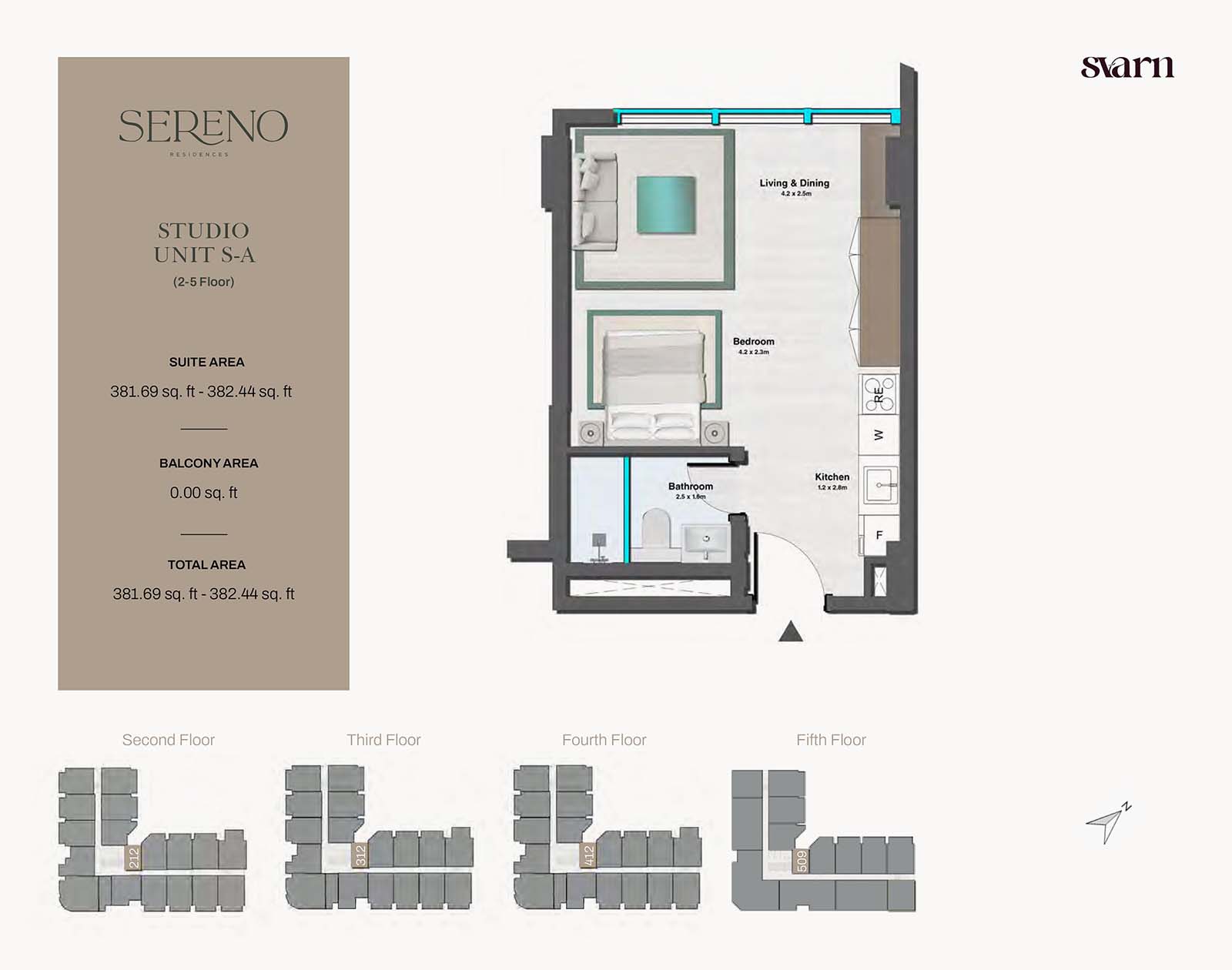Sereno Residences offers a selection of meticulously designed floor plans of studios, 1 and 2-bedroom apartments that cater to a variety of lifestyles. The residences are thoughtfully crafted to maximize space, natural light, and functionality, ensuring that it provides a comfortable and welcoming living environment. Each unit features open-plan living spaces, spacious bedrooms, and modern kitchens equipped with high-quality finishes and German appliances. The floor-to-ceiling windows allow residents to enjoy stunning views of the community’s green spaces while flooding the interiors with natural light.