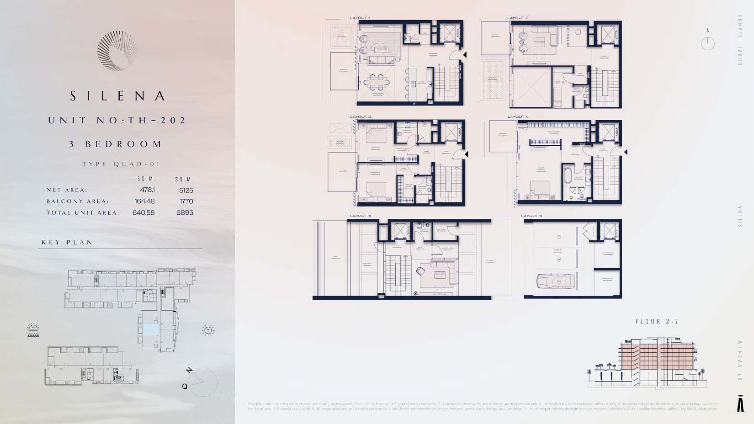 | 2nd - 7th Floor | 3 Bedrooms + Maid | Floor 2-7 (Type QUAD-01)-(Unit-TH-202) | 6895.00 Sq Ft | Townhouse |