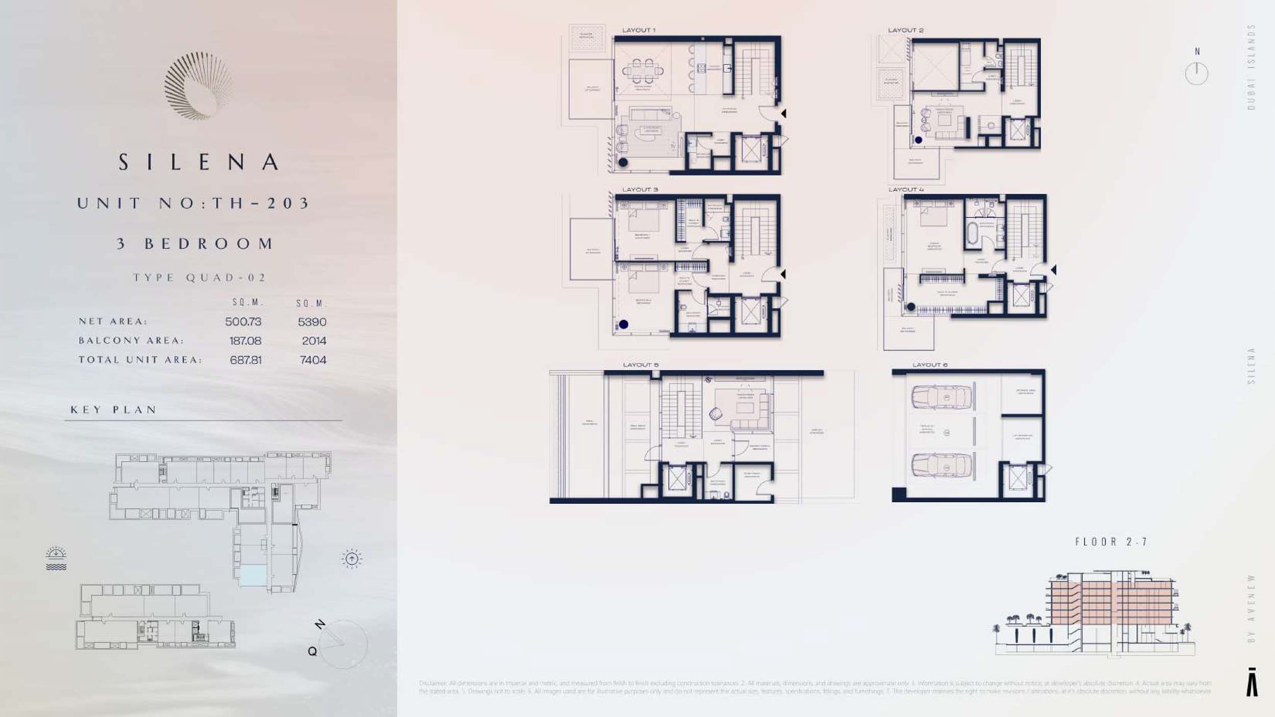 | 2nd - 7th Floor | 3 Bedrooms + Maid | Floor 2-7 (Type QUAD-02)-(Unit-TH-203) | 7404.00 Sq Ft | Townhouse |