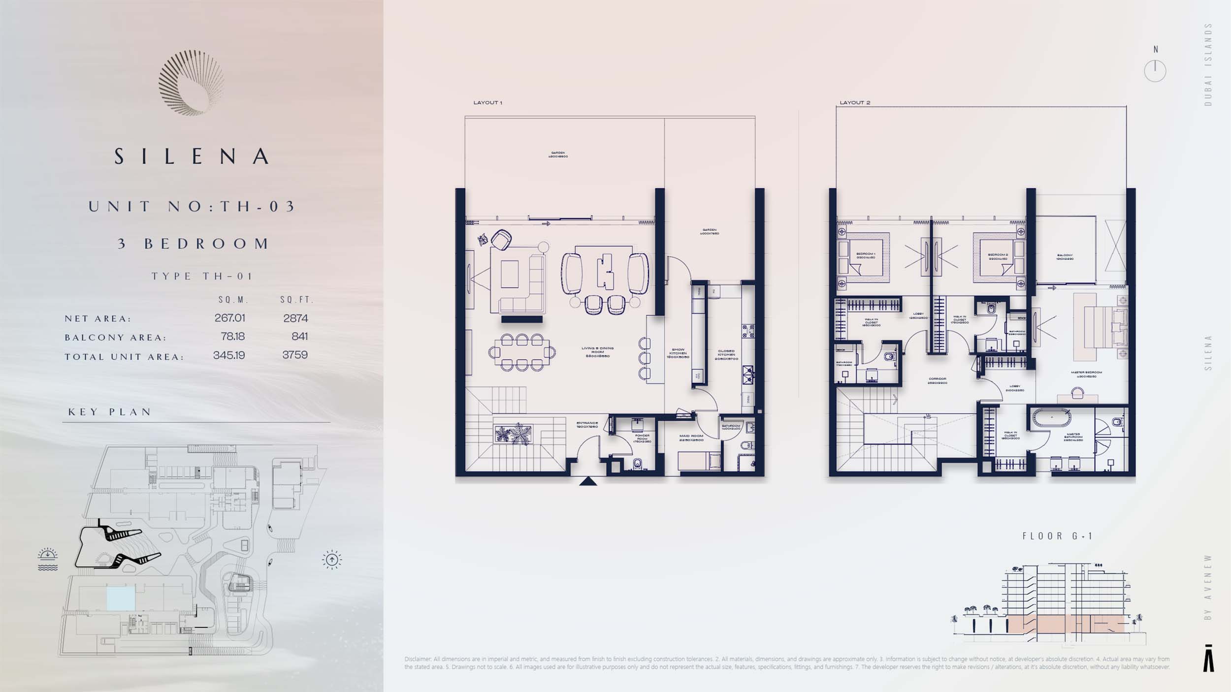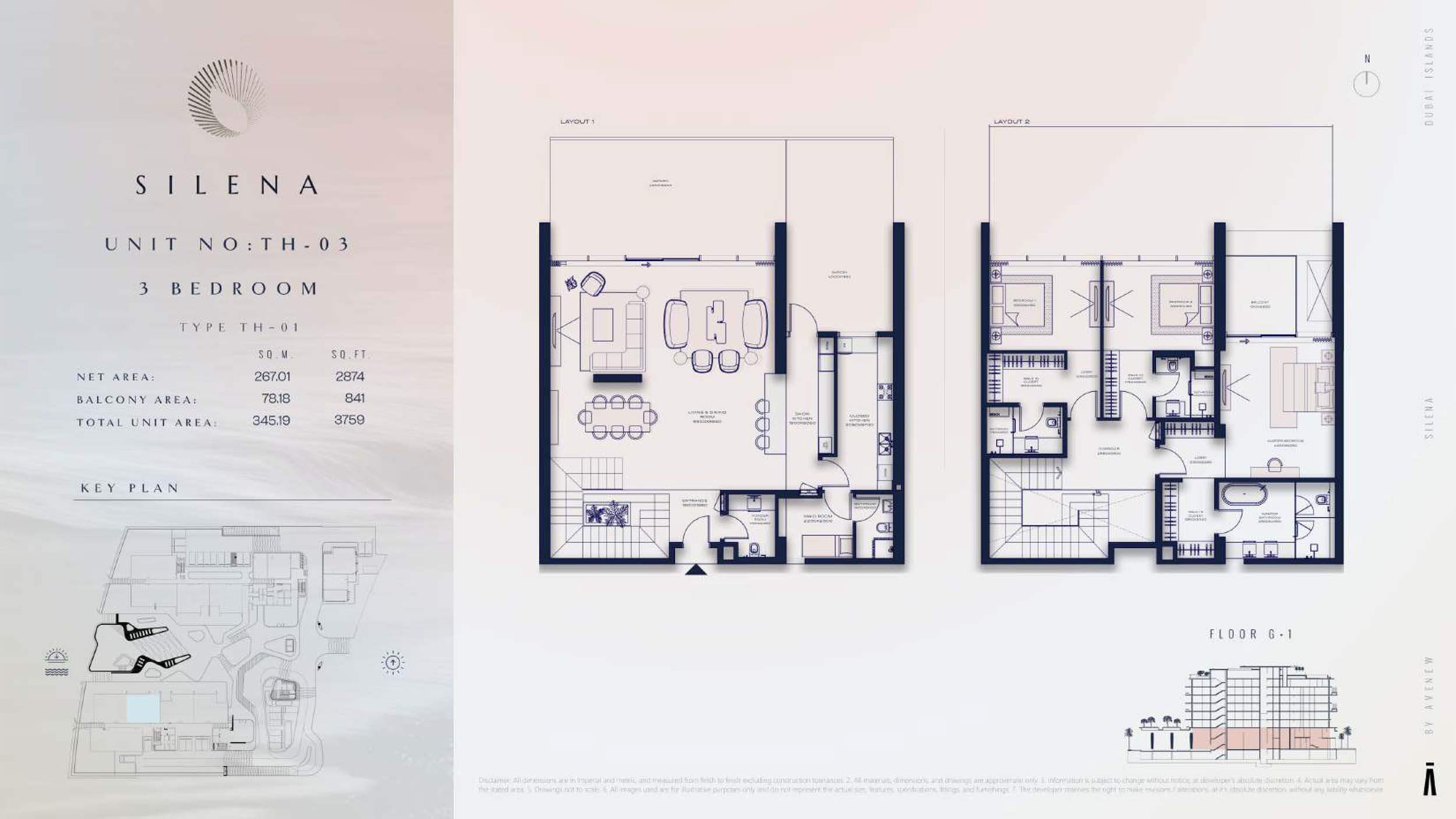 | Ground - 1st Floor | 3 Bedrooms + Maid | Floor G-1 (Type TH-01)-(Unit-TH-03) | 3759.00 Sq Ft | Townhouse |