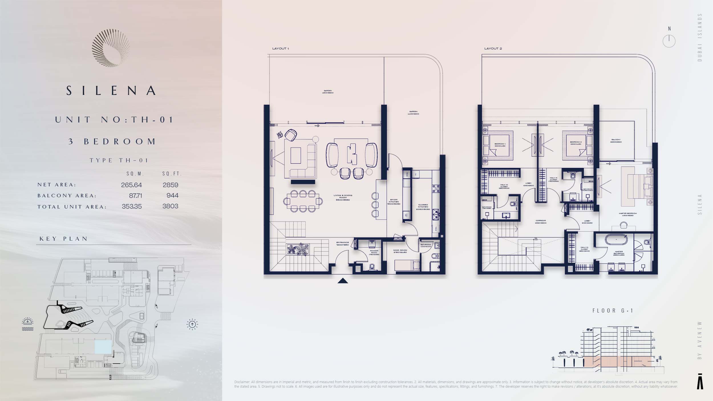 | Ground - 1st Floor | 3 Bedrooms + Maid | Floor G-1 (Type TH-01)-(Unit-TH-01) | 3803.00 Sq Ft | Townhouse |