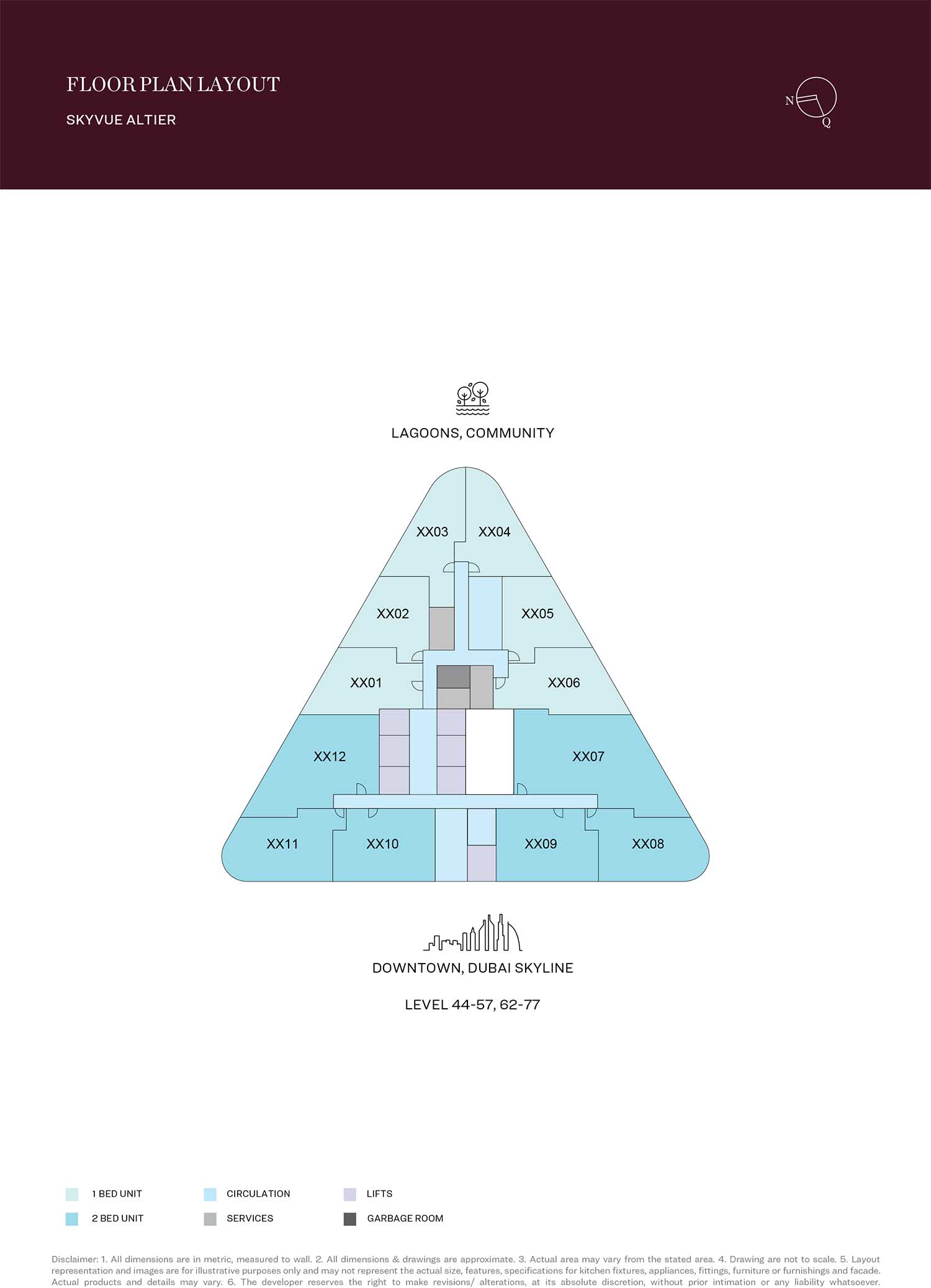 Skyvue Altier at Sobha Hartland 2 is a 77-storey pinnacle of urban living, defined by 1 & 2-bedroom apartments with creative triangular floor plans. The spaciously built sizes of all homes open to the panoramic views of the lagoon, amenity zone, and the open landscape of the city on one side and the Downtown Dubai skyline on the other. Each unit of this high-rise epitome offers grand living areas with quality furnishing, soft textured surfaces, neutral hues, a dining zone, and an open kitchen with premium features and bathrooms with excellent fittings and fixtures. Embrace privacy and tranquil moments in the calm bedrooms that are accessible to the balconies with a connection to the outside’s beauty.