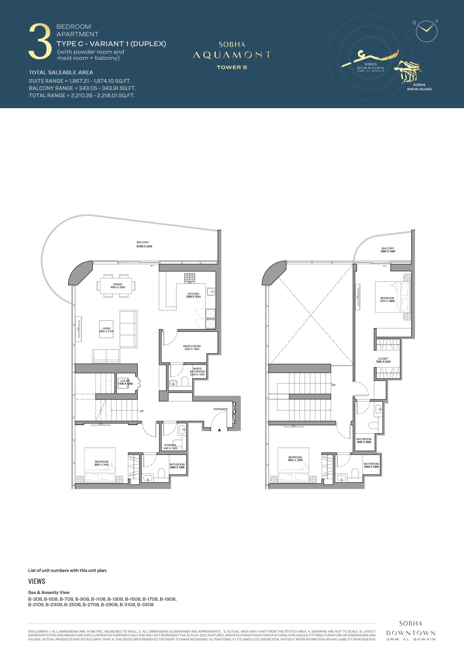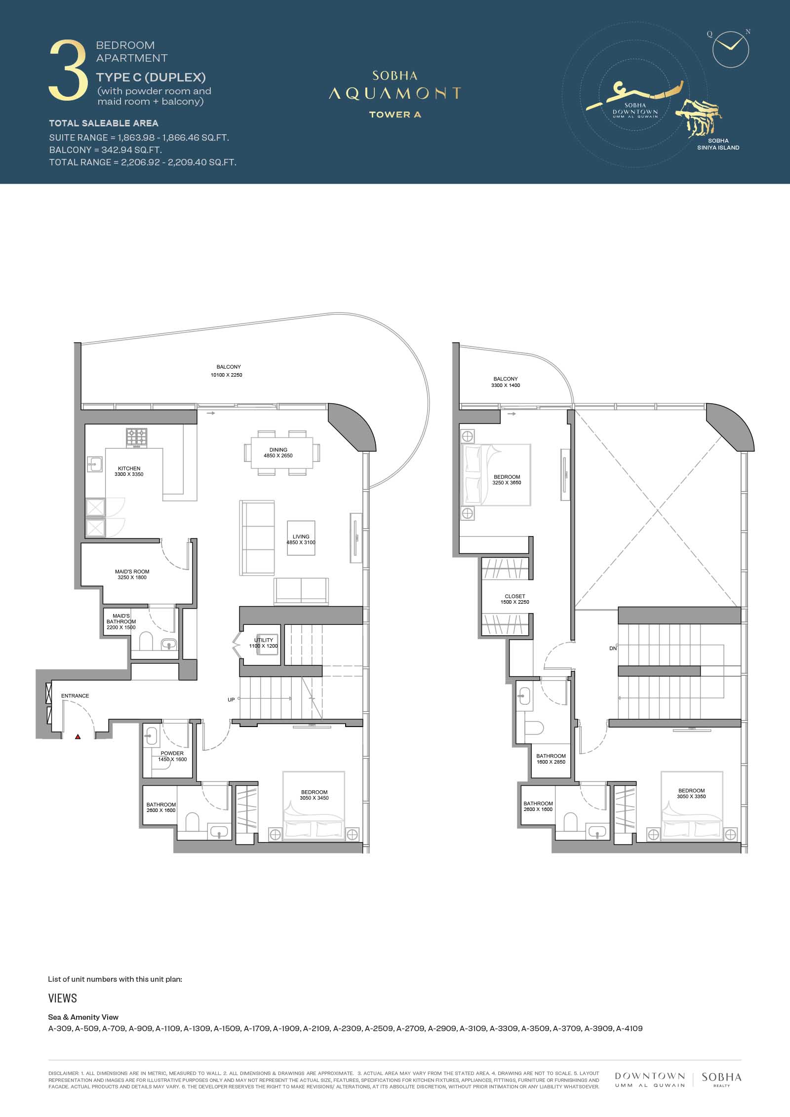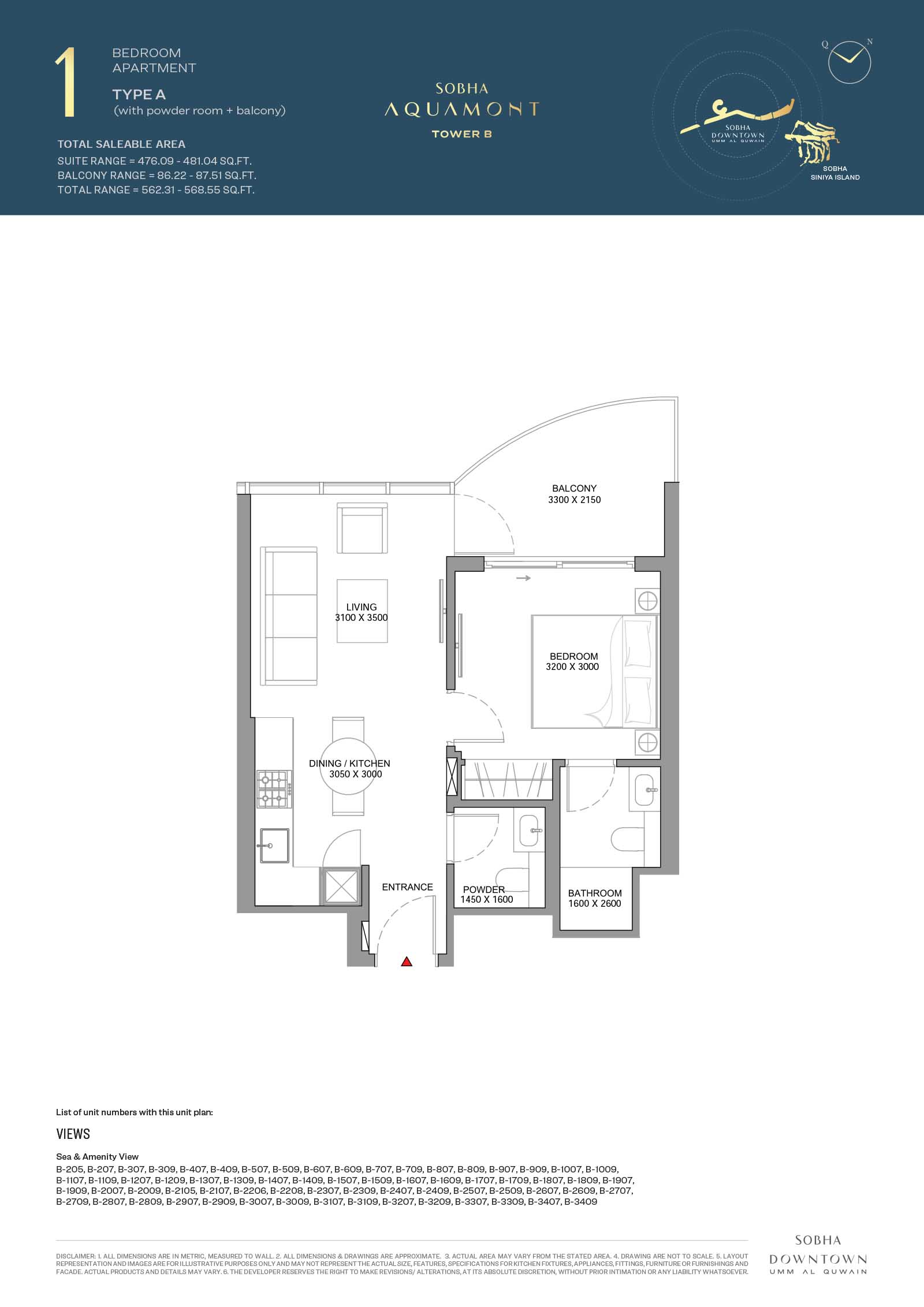 Sobha Aquamont presents a variety of floor plans ranging from grand 1 to 3-bedroom apartments to expansive duplexes with unmatched views. Here, the apartments boast modern spaces with expensive living spaces, private balconies, open-plan kitchens, and calm, fully curated bedrooms bathed in sunlight and stunning views. The smart and functional layouts with neutral tones and premium finishes, each unit is made to simple everyday living.