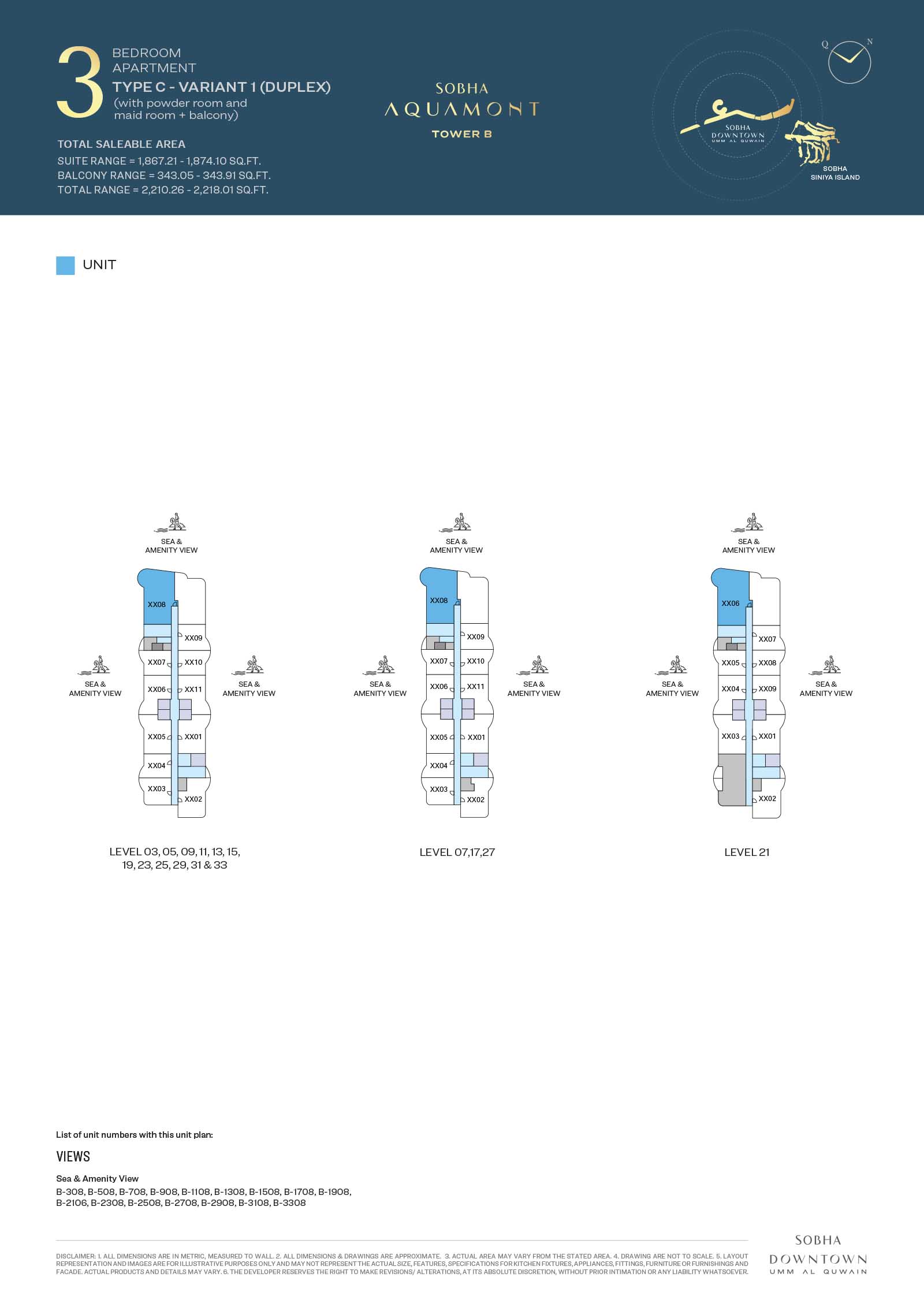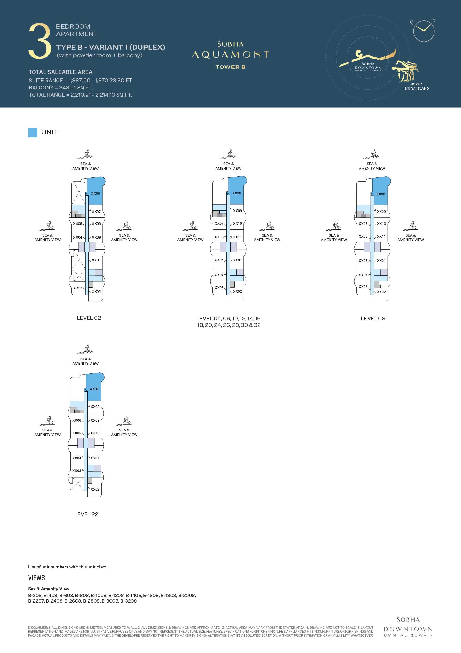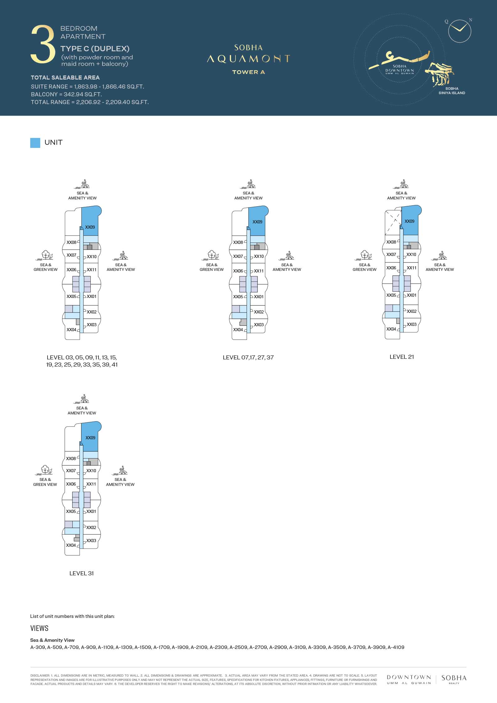 Sobha Aquamont presents a variety of floor plans ranging from grand 1 to 3-bedroom apartments to expansive duplexes with unmatched views. Here, the apartments boast modern spaces with expensive living spaces, private balconies, open-plan kitchens, and calm, fully curated bedrooms bathed in sunlight and stunning views. The smart and functional layouts with neutral tones and premium finishes, each unit is made to simple everyday living.