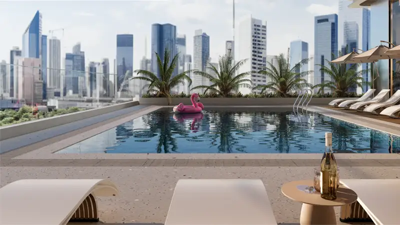Every detail within the complex is crafted to elevate the living experience. The grand entrance lobby exudes opulence, setting the tone for the remarkable features within. Open layouts and premium finishes define each residence, complemented by built-in wardrobes, closed kitchens, and state-of-the-art fittings. Smart home technology seamlessly integrates comfort with convenience, providing a glimpse into the future of urban living. The rooftop amenities add an exclusive retreat for residents, featuring a swimming pool, bubble pool, and sun deck that provide a serene escape from the bustling city below.