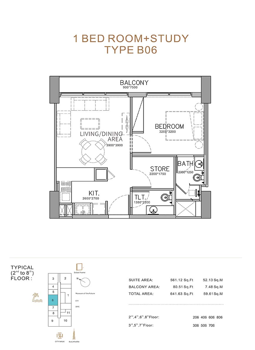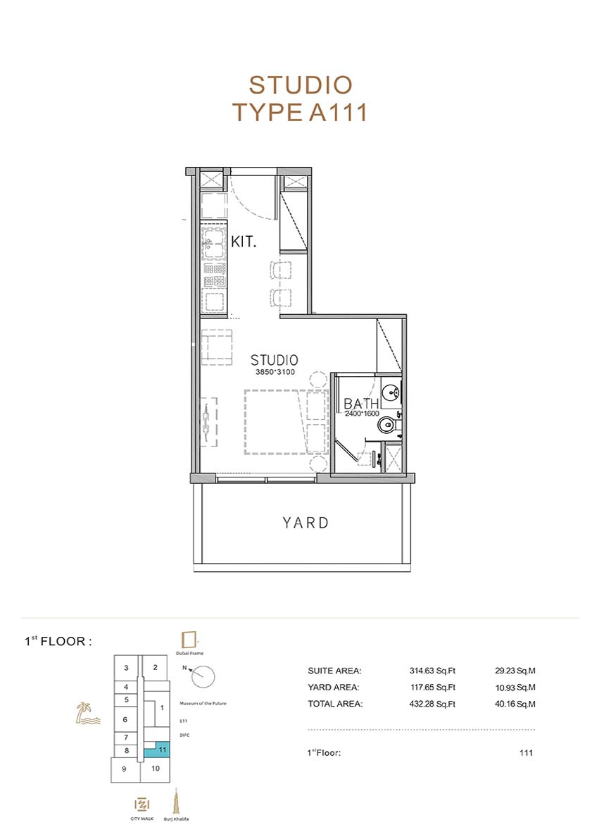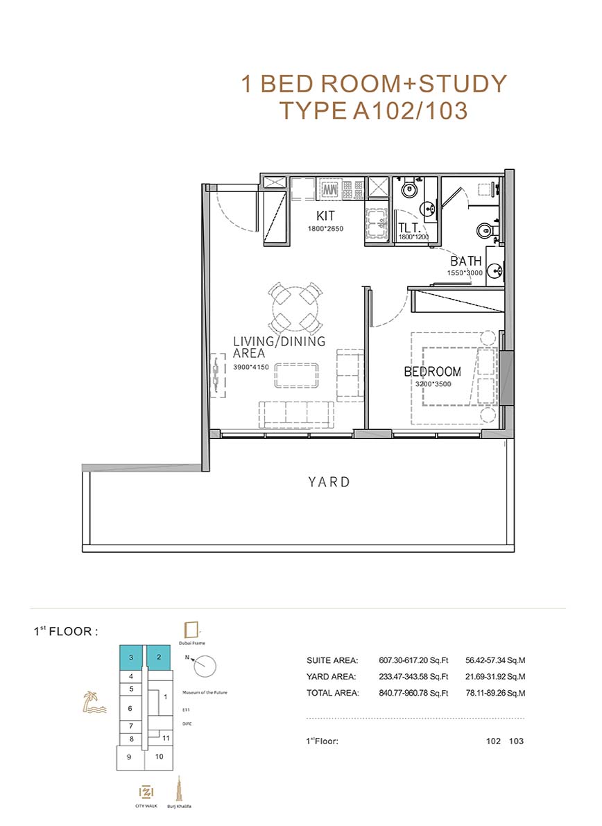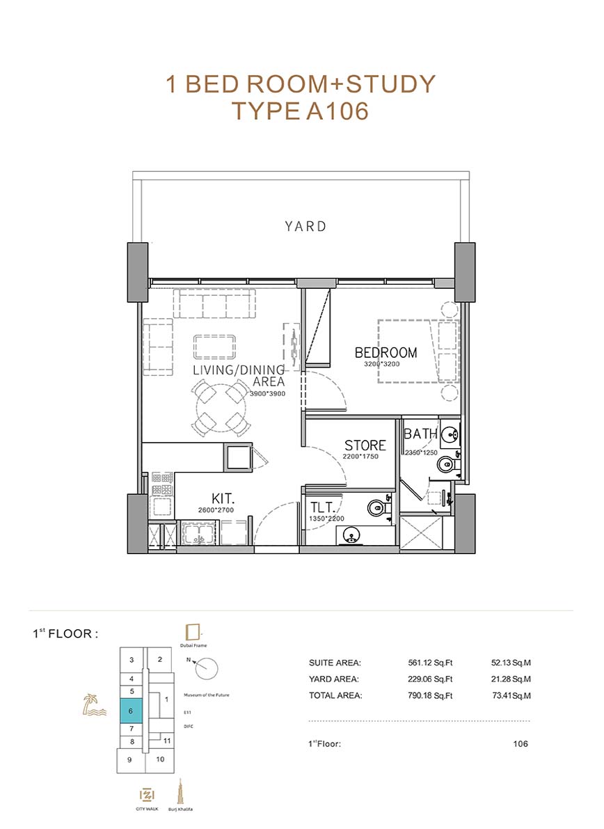 The floor plans of Stamn Yuni reflect a thoughtful approach with studios, 1 and 2-bedroom apartments to maximizing space and functionality. Each unit is designed with open layouts that enhance natural light and create a sense of spaciousness. Built-in wardrobes provide ample storage, while closed kitchens are equipped with high-quality fittings for convenience. Living spaces are designed with an emphasis on modern aesthetics and practicality, ensuring residents feel at home. Every unit integrates smart home technology, offering an elevated living experience that meets the demands of today’s urban dwellers.