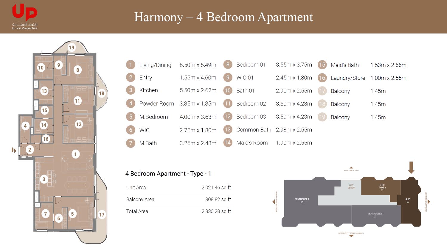 Takaya Harmony Tower at Motor City is a residential landmark addition to the Takaya development by Union Properties offering a collection of luxury apartments in Dubai. Rising 20 storey, this modern high-rise façade stands as an architectural marvel that seamlessly combines style, comfort, and convenience. This is more than just a residence; it’s a lifestyle destination designed to offer a well-rounded living experience for its residents. From the elegantly designed lobby to the spacious apartments with premium finishes, every aspect reflects a commitment to quality and luxury.
