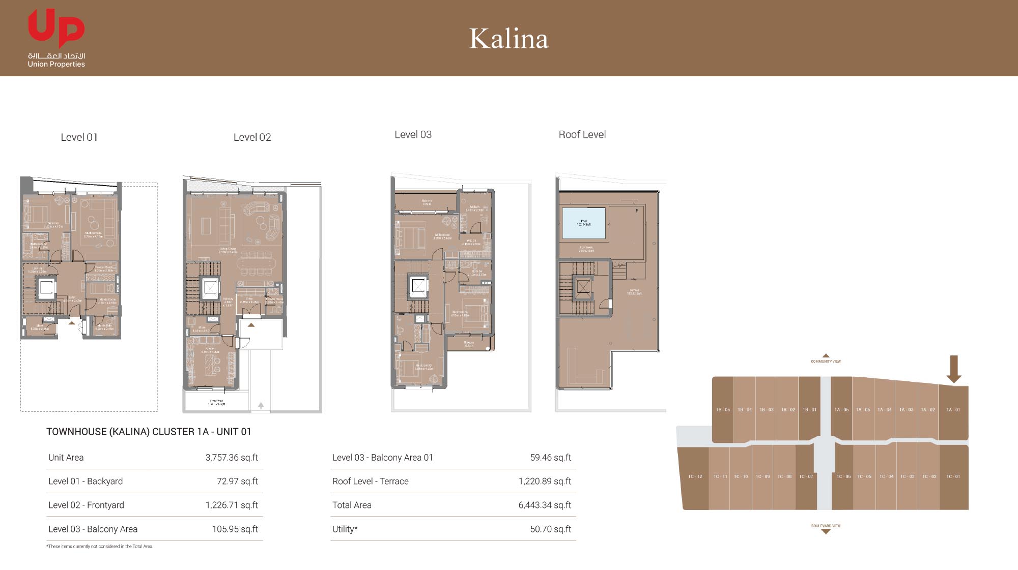 Takaya Kalina offers a diverse range of 4 bedroom townhouses floor plans, meticulously designed to meet the needs of modern residents. The interiors showcase contemporary design with premium finishes. Kitchens are equipped with top-quality appliances and ample storage, making them perfect for both everyday use and entertaining. Bedrooms serve as tranquil retreats, complete with spacious closets and en-suite bathrooms designed for comfort and luxury.