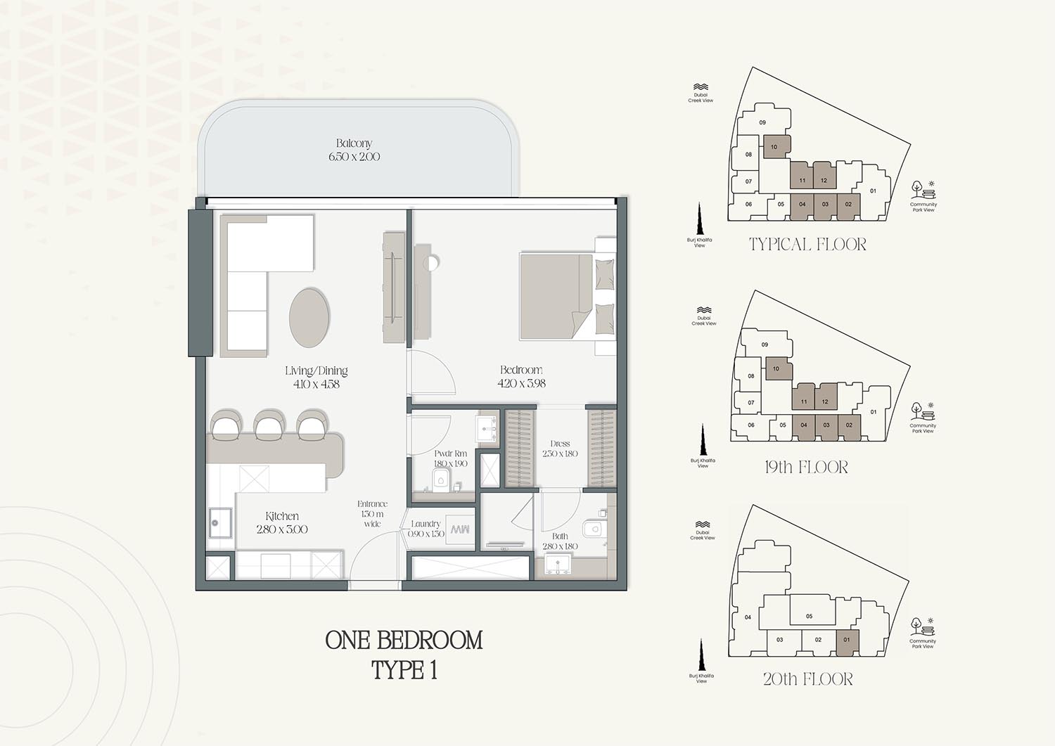 The Caden by Prescott Development is a lagoon-side paradise at Meydan Horizon in Dubai, with 1 to 4-bedroom apartments, duplexes, & a penthouse. Find your instinctive and harmonious purpose of living within this premium address positioned at the verge of a long flowing lagoon surrounded by flourishing greenery. This contemporarily rising housing property introduces a thoughtfully considered approach to elevated modern living in a beautiful setting, where the city’s vibrancy intersects the charm of buzzing nature. Balancing the urban connection with a waterfront living, this creatively planned building is shaped to capture natural light and sweeping views of the flowing water, greenery, and the horizon of the city.
