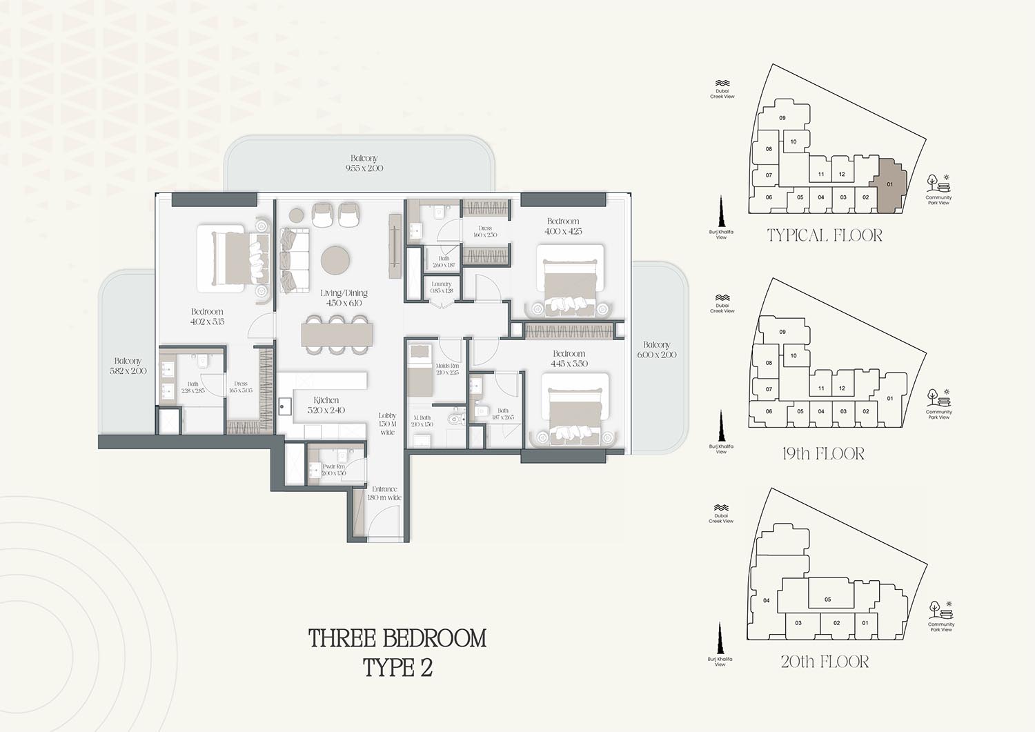 Set within Nad Al Sheba’s fastest growing and convenient point for effortless connection, it is a commitment to the rhythmic refined living. Soaring with a straight and bold, enticing presence, it features 2 basements, ground level with retail spaces, 3 podiums, and 20 floors, and a rooftop level. This tower opens to the crystal-clear lagoon, the facade shines and embraces the breathing essence of the surroundings, while the exterior features irregularly yet well-planned balconies and a major proportion of this architecture is covered with huge frames of expensive and striking glass.