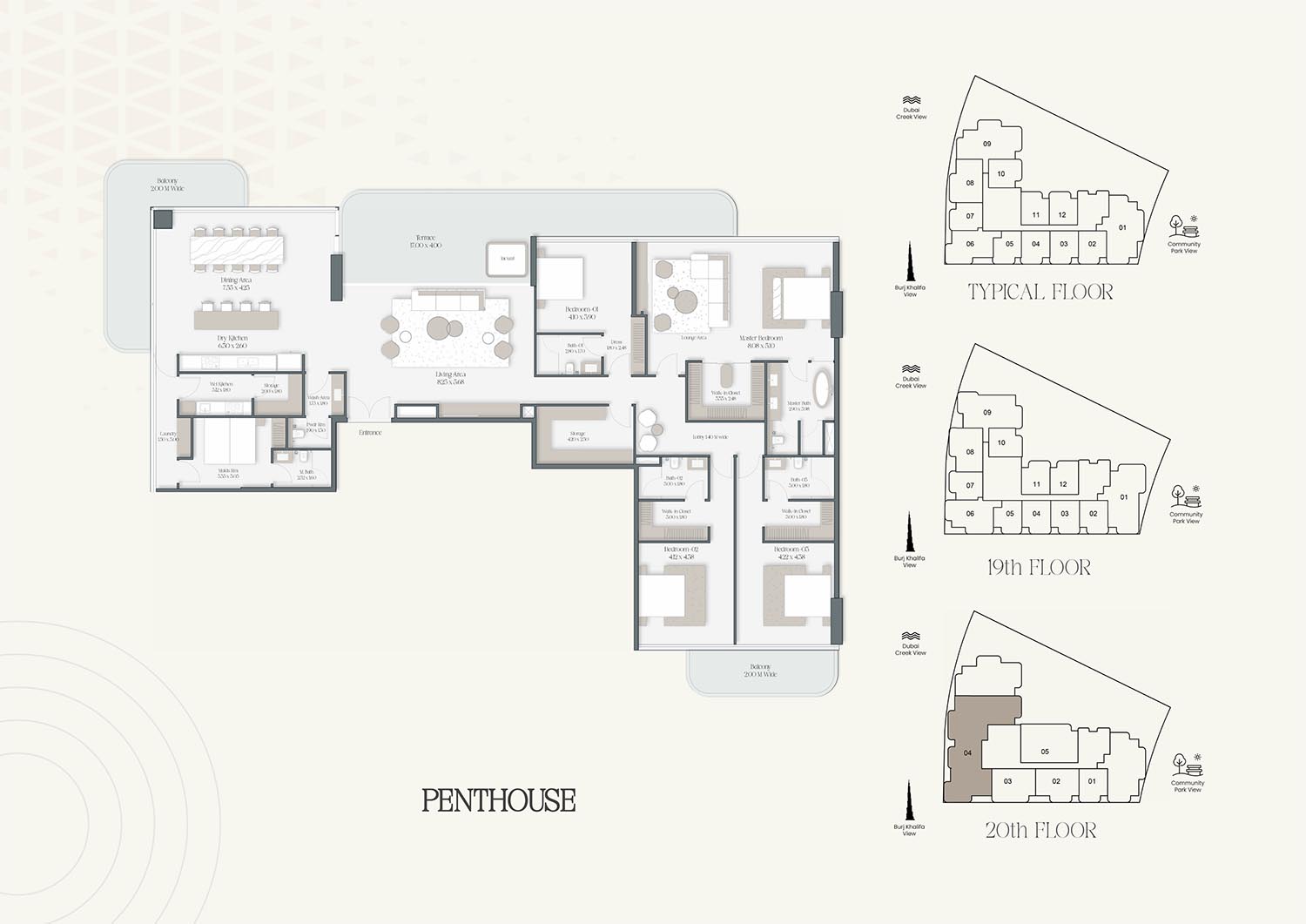 - Only 2 duplexes of four-bedrooms set and a significant penthouse on the top level