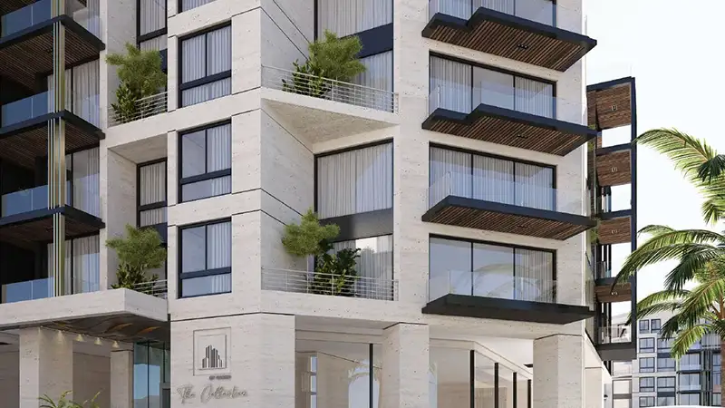 The Collection at MBR City is an exquisite residential development by Naser Developer featuring premium selection of thoughtfully designed 1 and 2-bedroom apartments in Dubai. Step into a world of unparalleled luxury and modern sophistication, designed to offer a seamless blend of elegance and functionality, where this six-storey masterpiece façade caters to discerning residents who seek both comfort and style. Every detail in this boutique residential façade is meticulously crafted to elevate your lifestyle. From the sleek architectural lines to the lush green surroundings, the development embodies contemporary living at its finest.