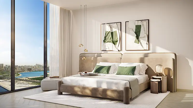 Reciting a symphony of beauty and balance, the interiors reflect the endless essence of luxury and elegance. Here, each residence has been precisely shaped as a work of intentionally crafted design. The indoor spaces are adorned by nature’s light and innovative sophistication, while the well-proportioned spacious with subtle & opulent textures, tactile surfaces, and an interplay of light and shadow create a warm environment to appreciate. The balconies and floor-to-ceiling expensive windows frame the sweeping views of the glittering flow of the canal and the ever-buzzing cityscape of Burj Khalifa and beyond. On top of all buildings, the sky gardens are the retreats where nature, well-being, and a cheerful connection among neighbours blend altogether with panoramic views of the skyline.