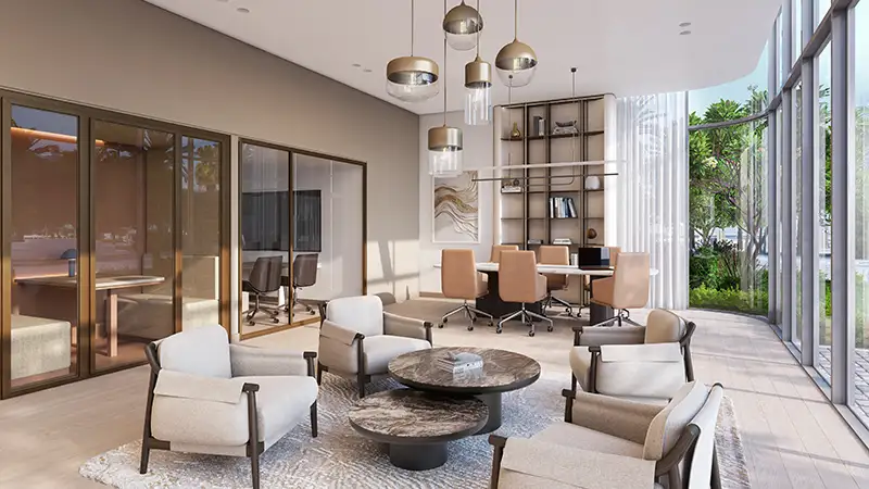 - A series of world-class integrated amenities such as entrance lobbies, sky gardens, social seating, BBQ area, family lounges, wellness studio, yoga studio, padel court, cinema, & pools