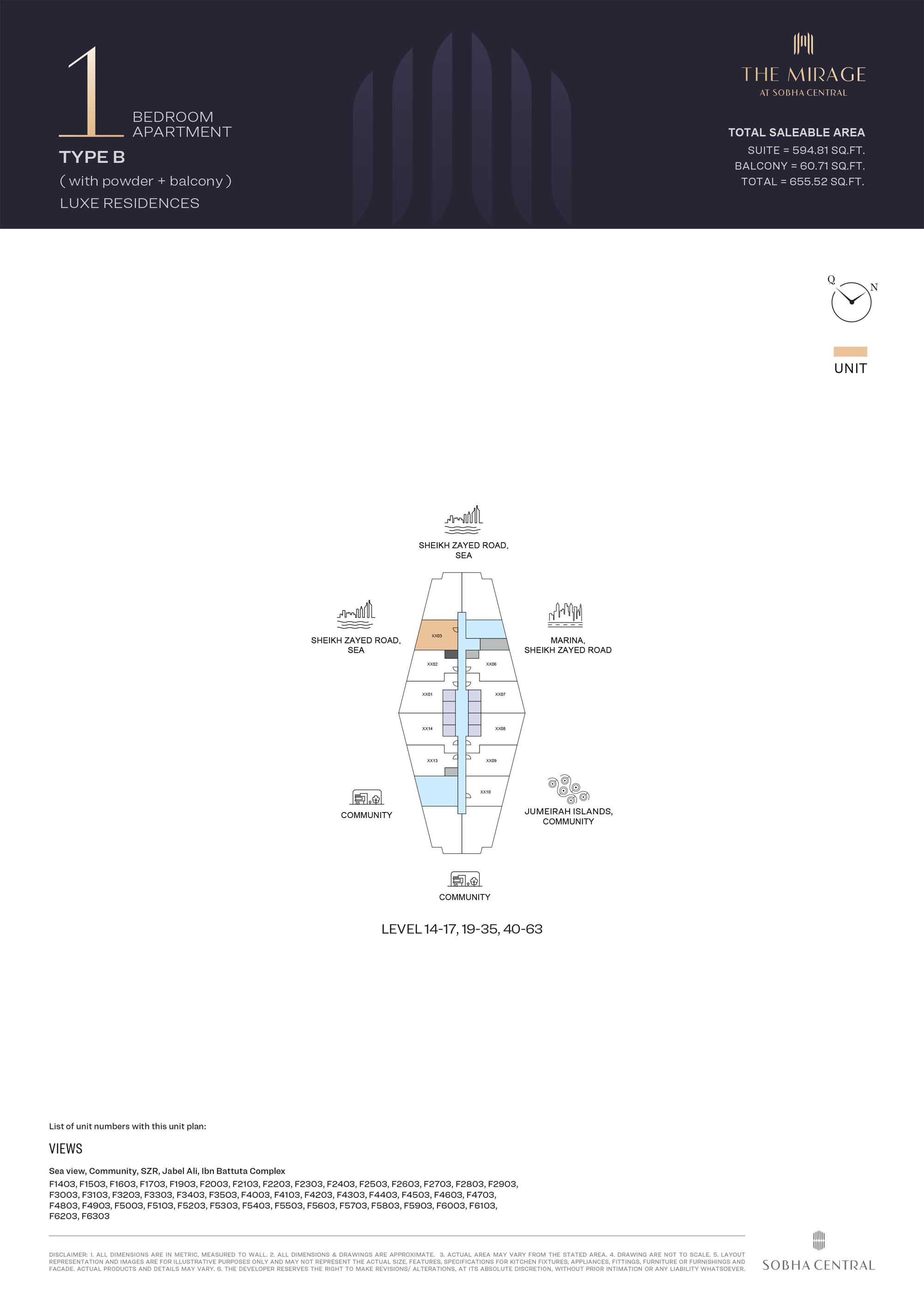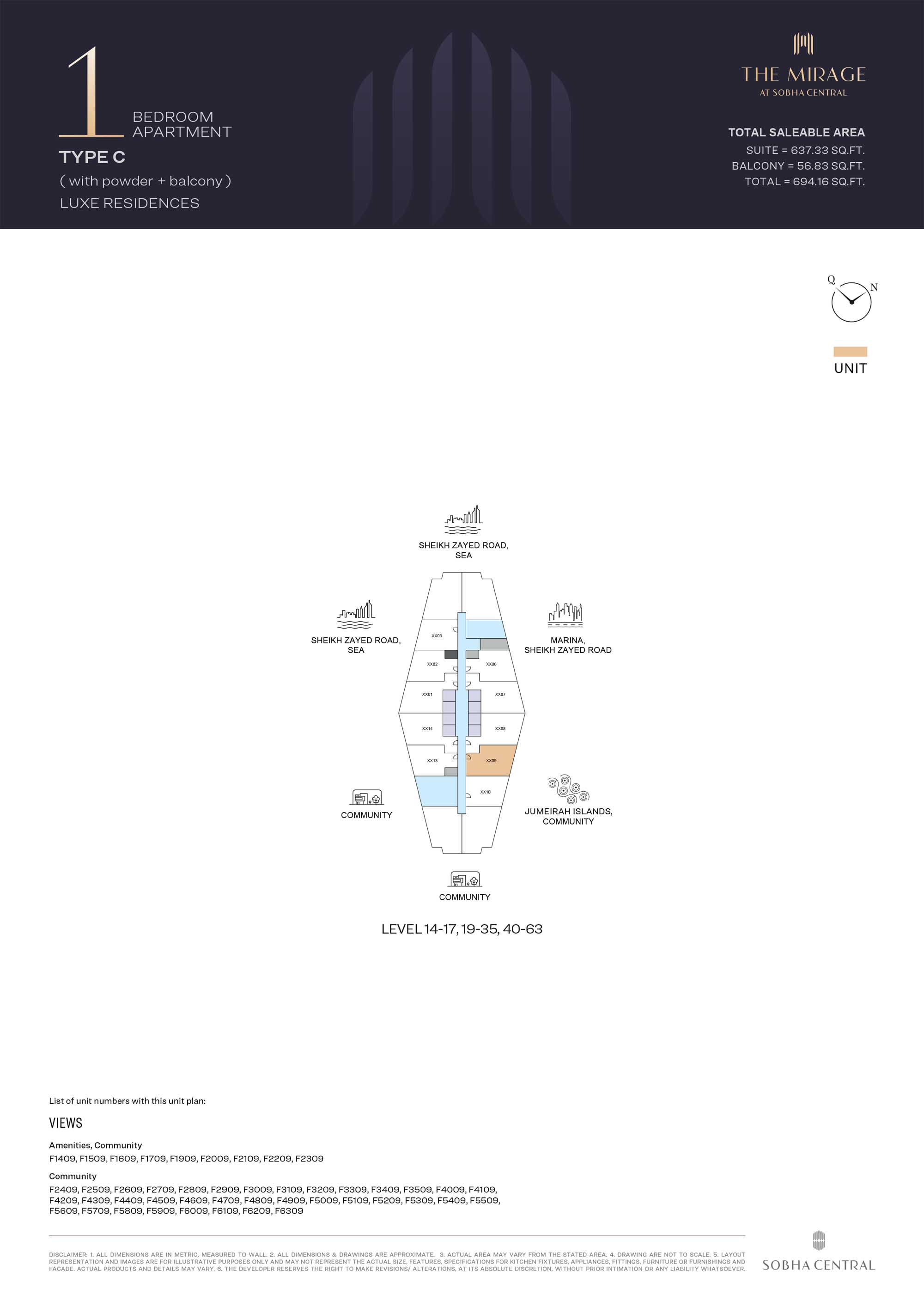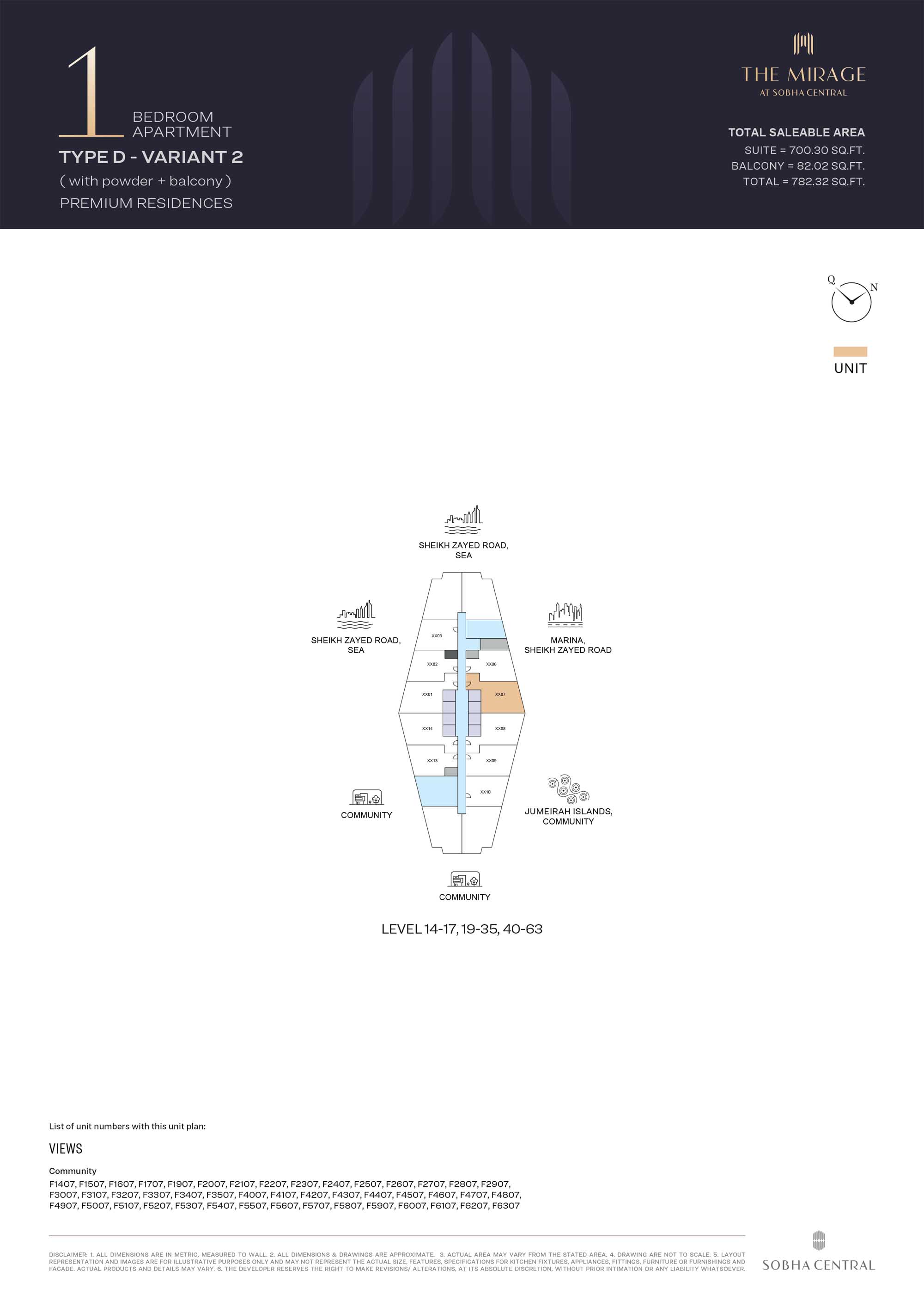 The Mirage at Sobha Central is a remarkable 63-storey residential icon of the community with practical & quality floor plans for 1 & 2-bedroom apartments. With the simple yet effective layouts, each unit of this high-rise masterpiece is curated with generous & functional spaces, curated with quality furnishings, fittings and fixtures, while the open design ensures utmost functionality with comfort and convenience. The striking glass facade contributes to huge windows and balconies in each unit that offer breathtaking views of the ocean horizon, beautiful green community, Dubai Marina’s vibrant energy and beyond the sky.