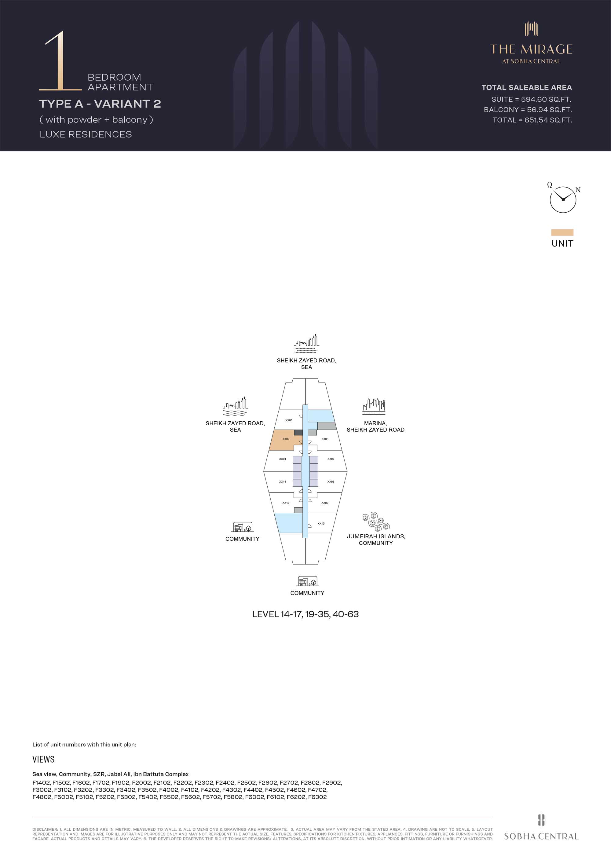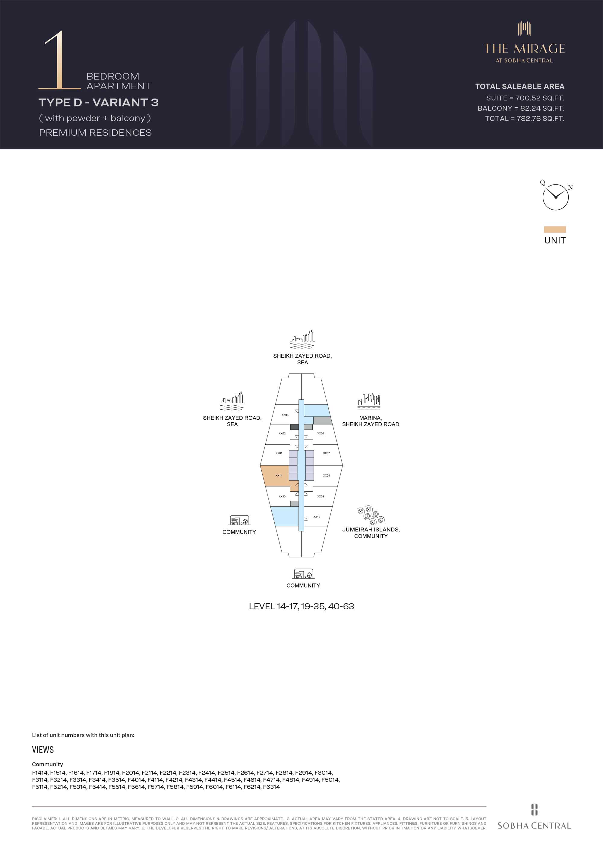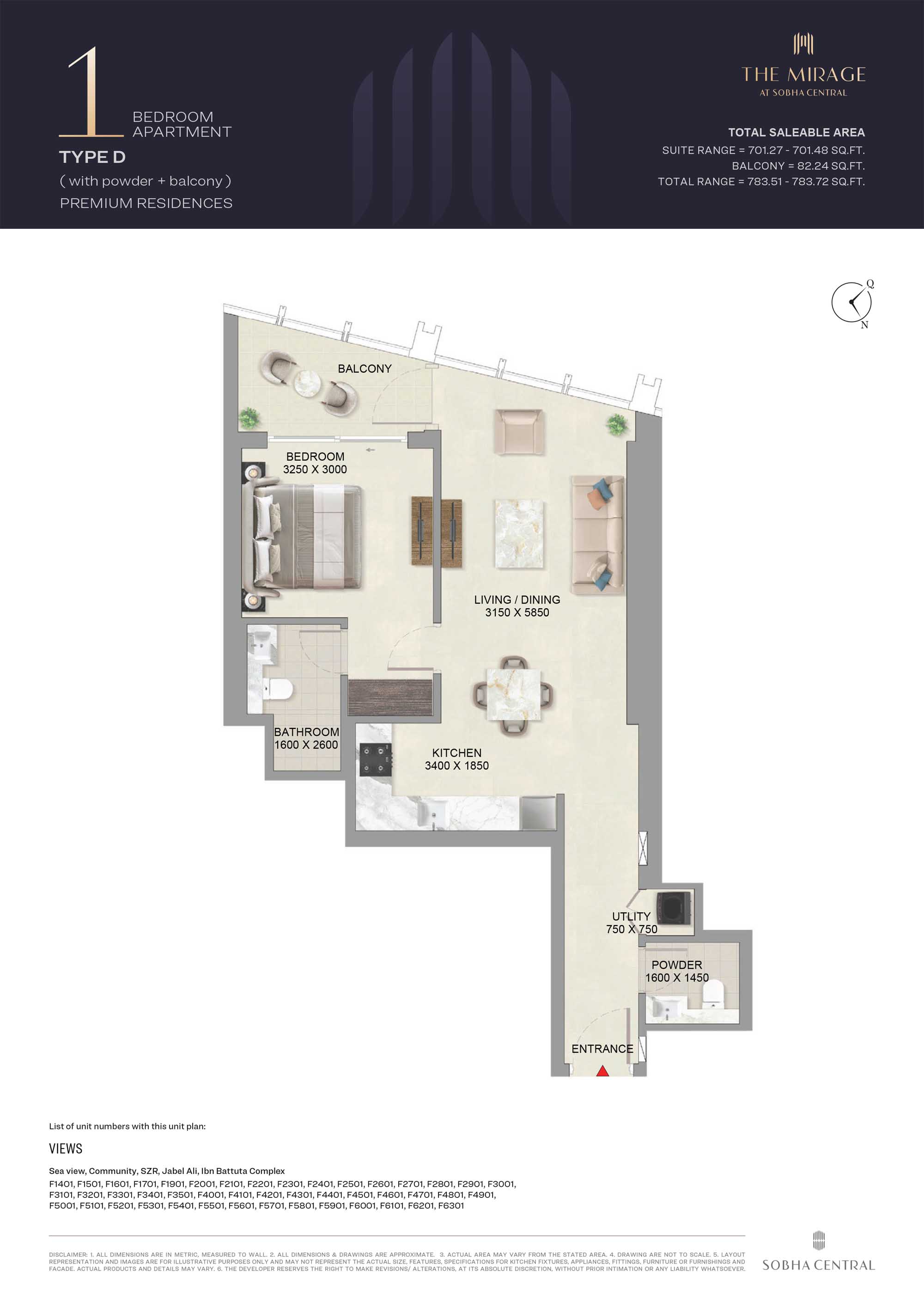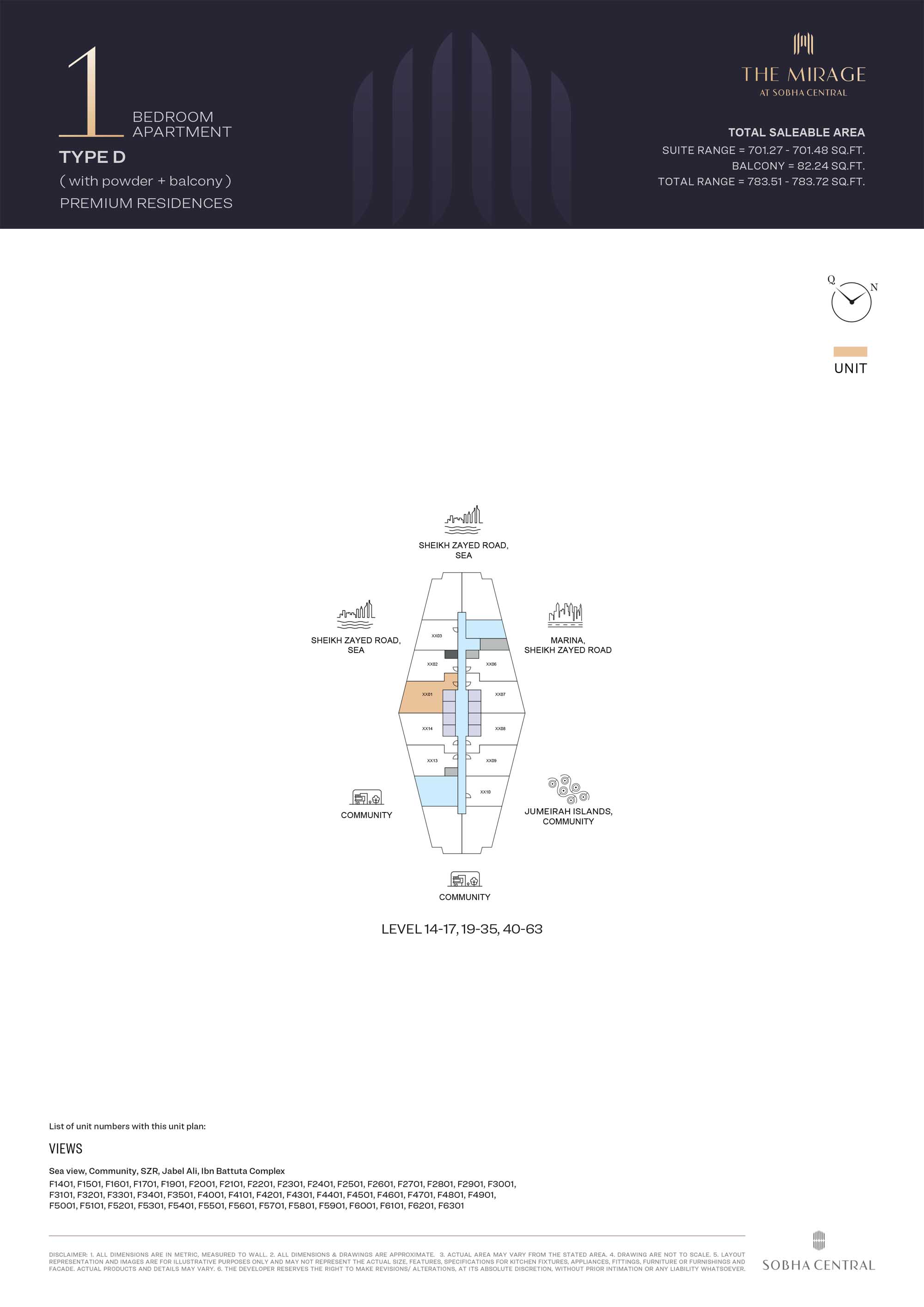 The Mirage at Sobha Central is a remarkable 63-storey residential icon of the community with practical & quality floor plans for 1 & 2-bedroom apartments. With the simple yet effective layouts, each unit of this high-rise masterpiece is curated with generous & functional spaces, curated with quality furnishings, fittings and fixtures, while the open design ensures utmost functionality with comfort and convenience. The striking glass facade contributes to huge windows and balconies in each unit that offer breathtaking views of the ocean horizon, beautiful green community, Dubai Marina’s vibrant energy and beyond the sky.