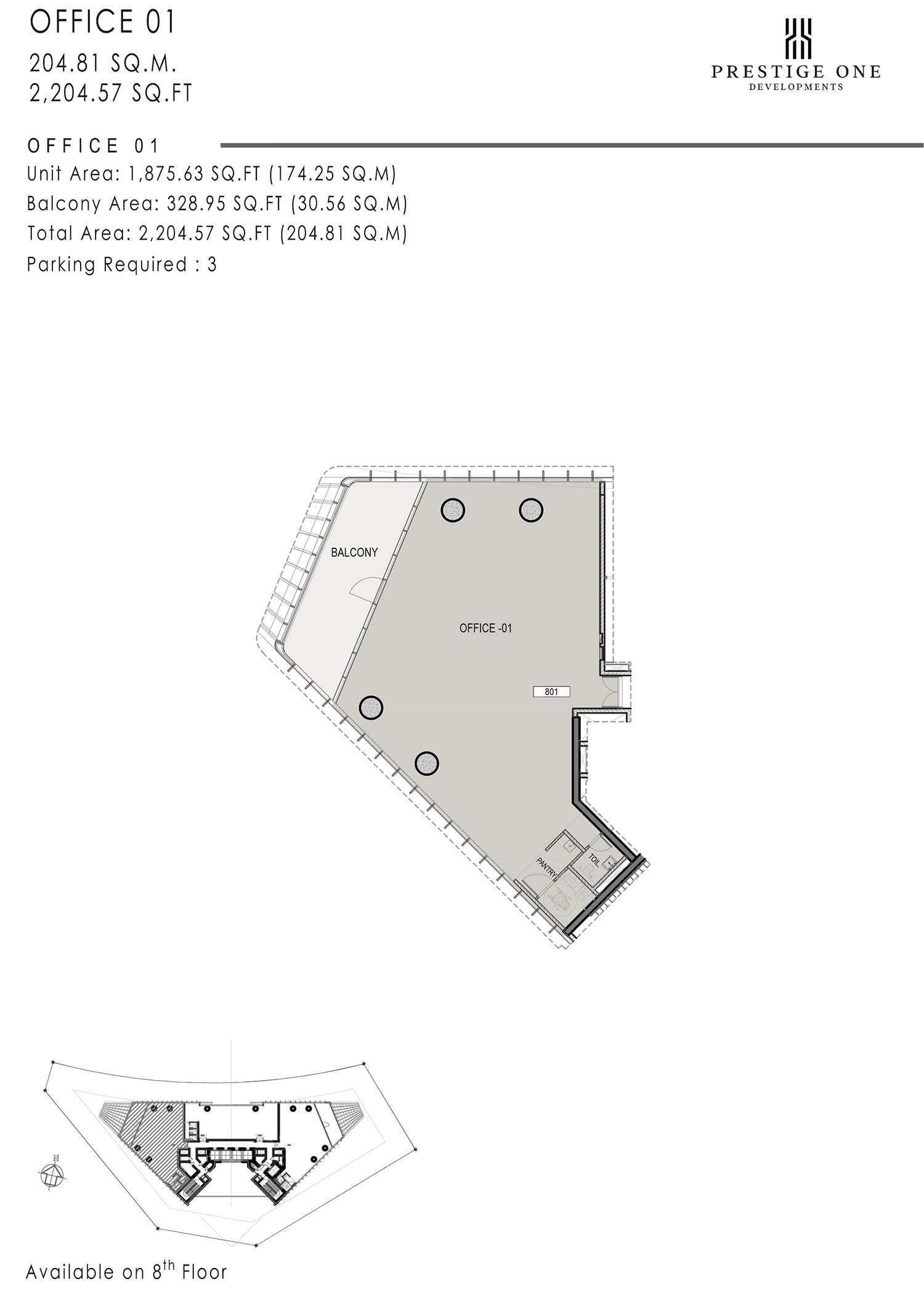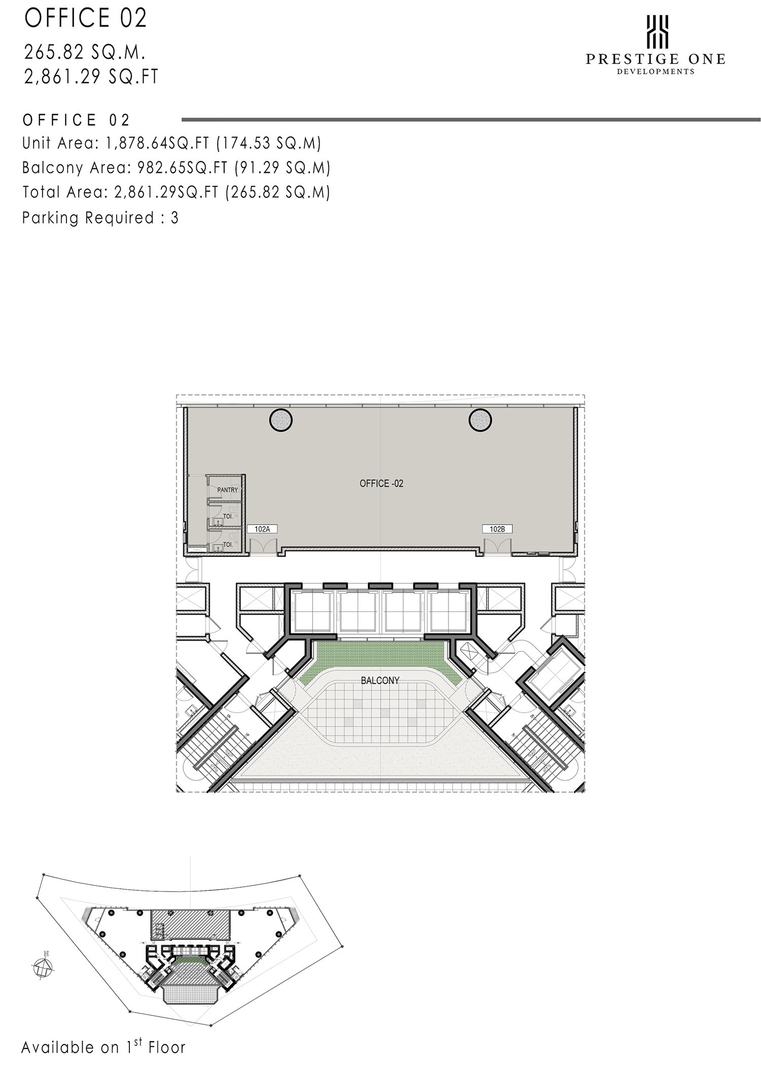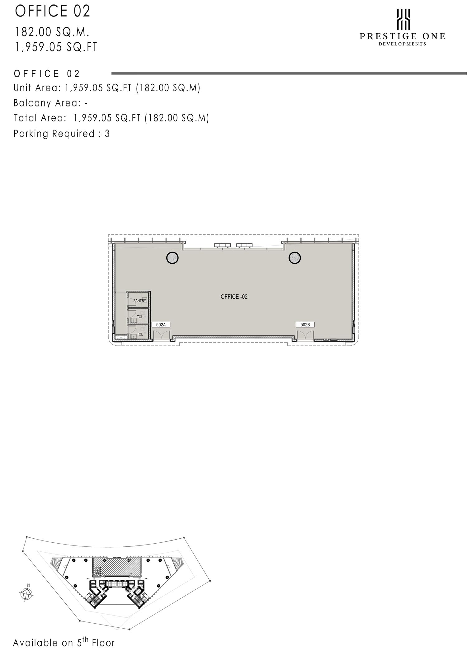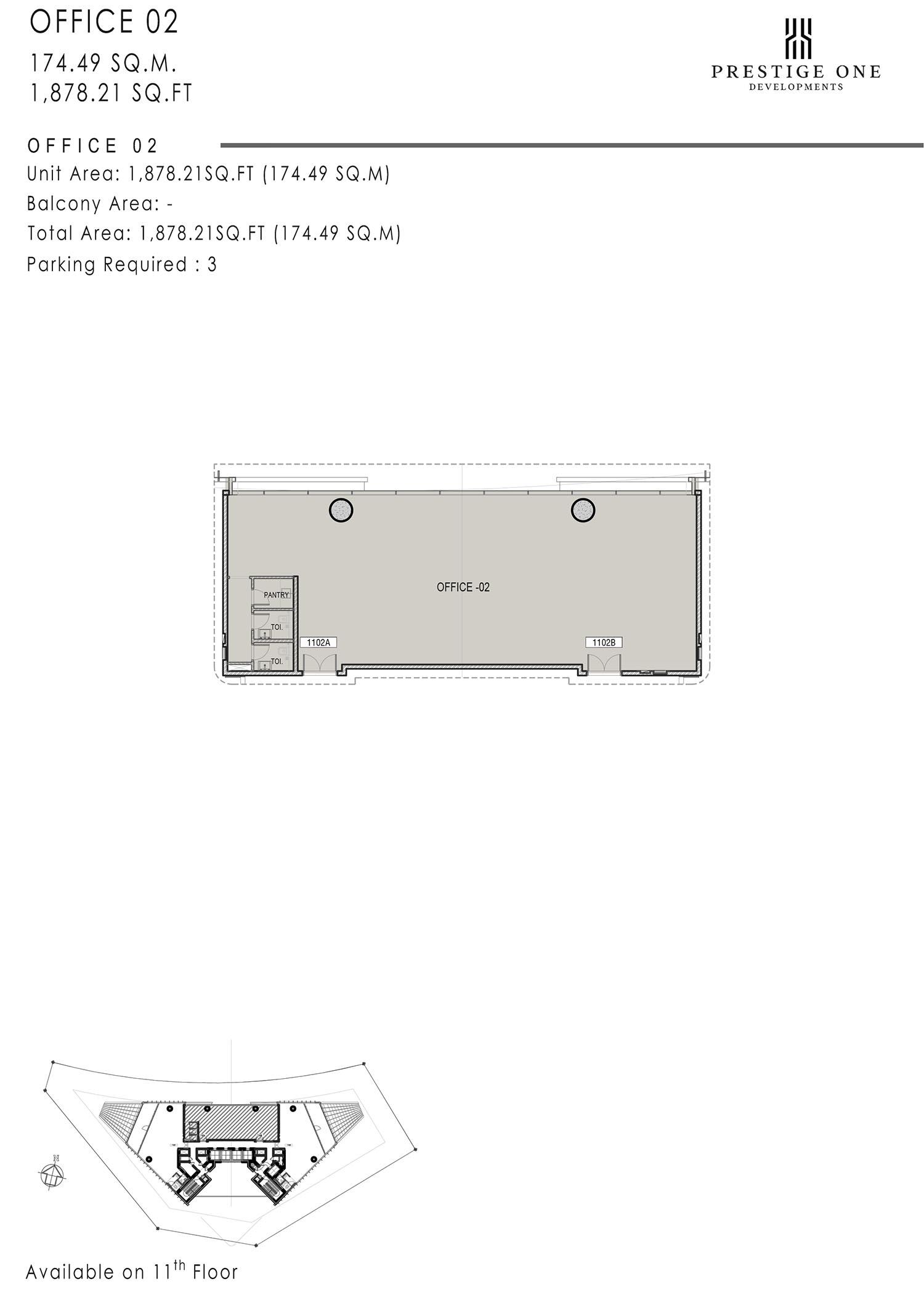 The floor plan of Prestige The One offers businesses a flexible and efficient layout, tailored to meet diverse commercial requirements. With an emphasis on openness and space utilization, the building’s layouts have been crafted to accommodate businesses of all sizes, from start-ups to multinational corporations. Each floor is designed to be highly adaptable, allowing tenants to create custom configurations that best suit their operational needs. In addition to traditional office spaces, the layouts integrate communal areas such as lounges, cafés, and relaxation zones, encouraging collaboration and interaction between employees.