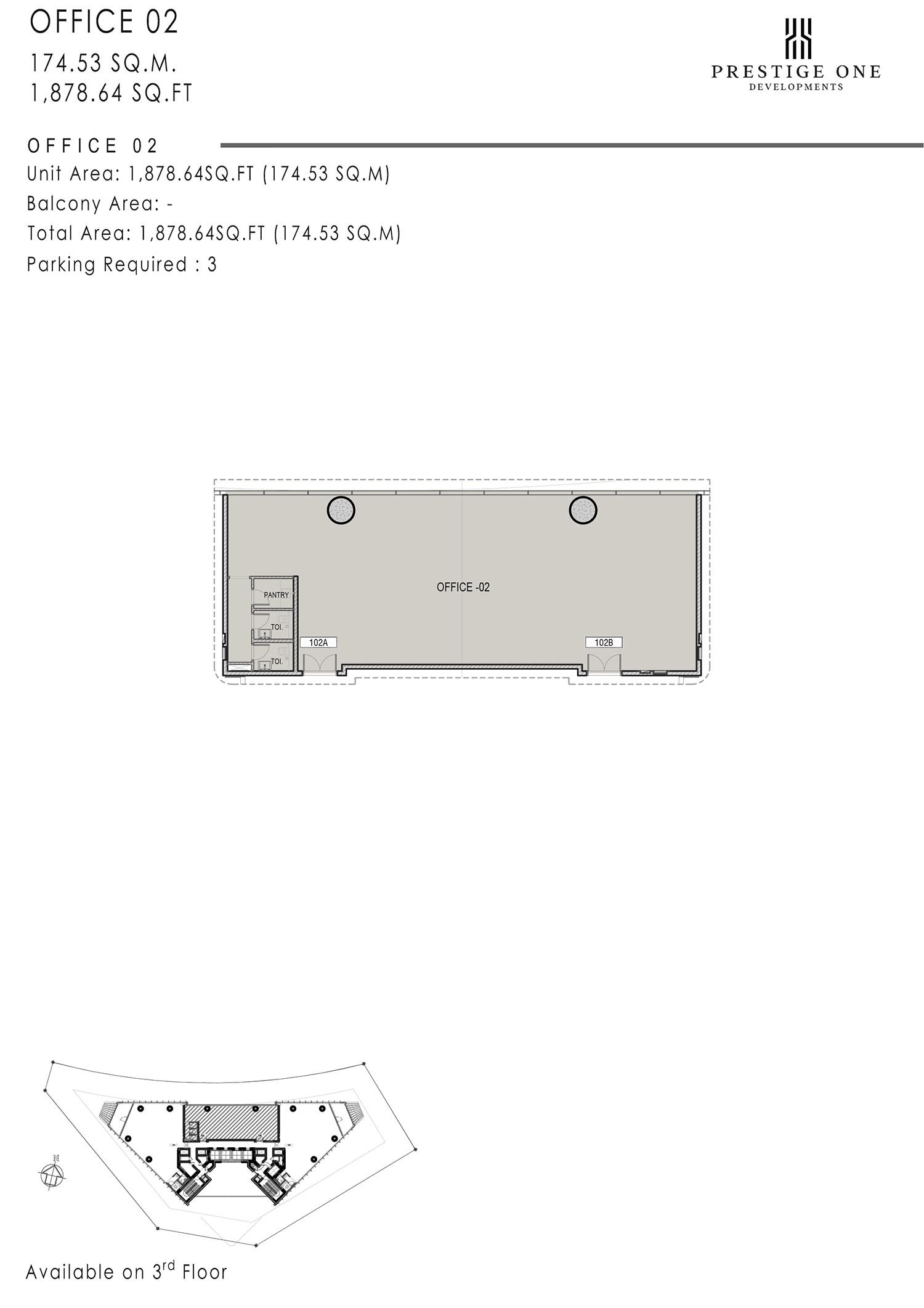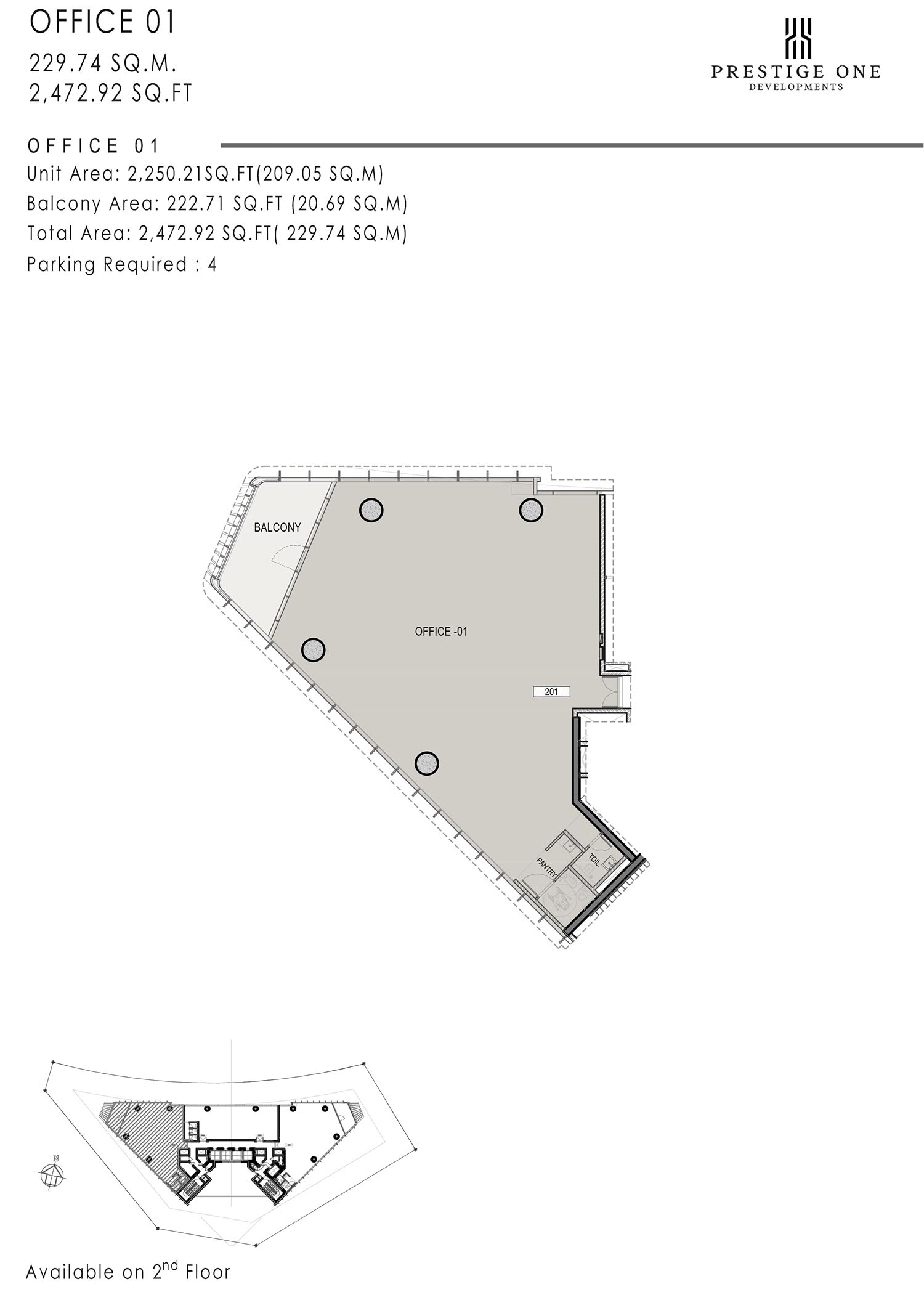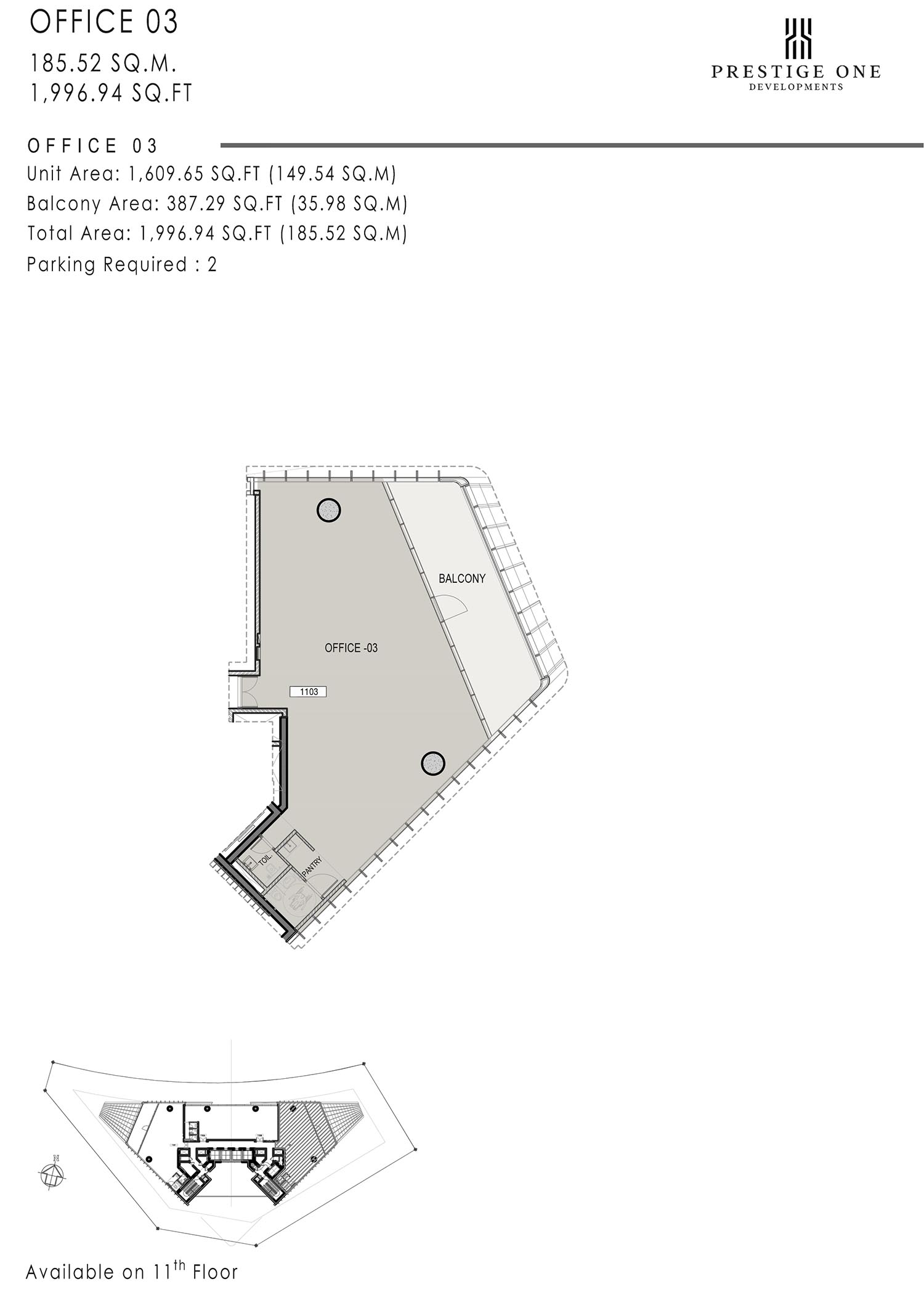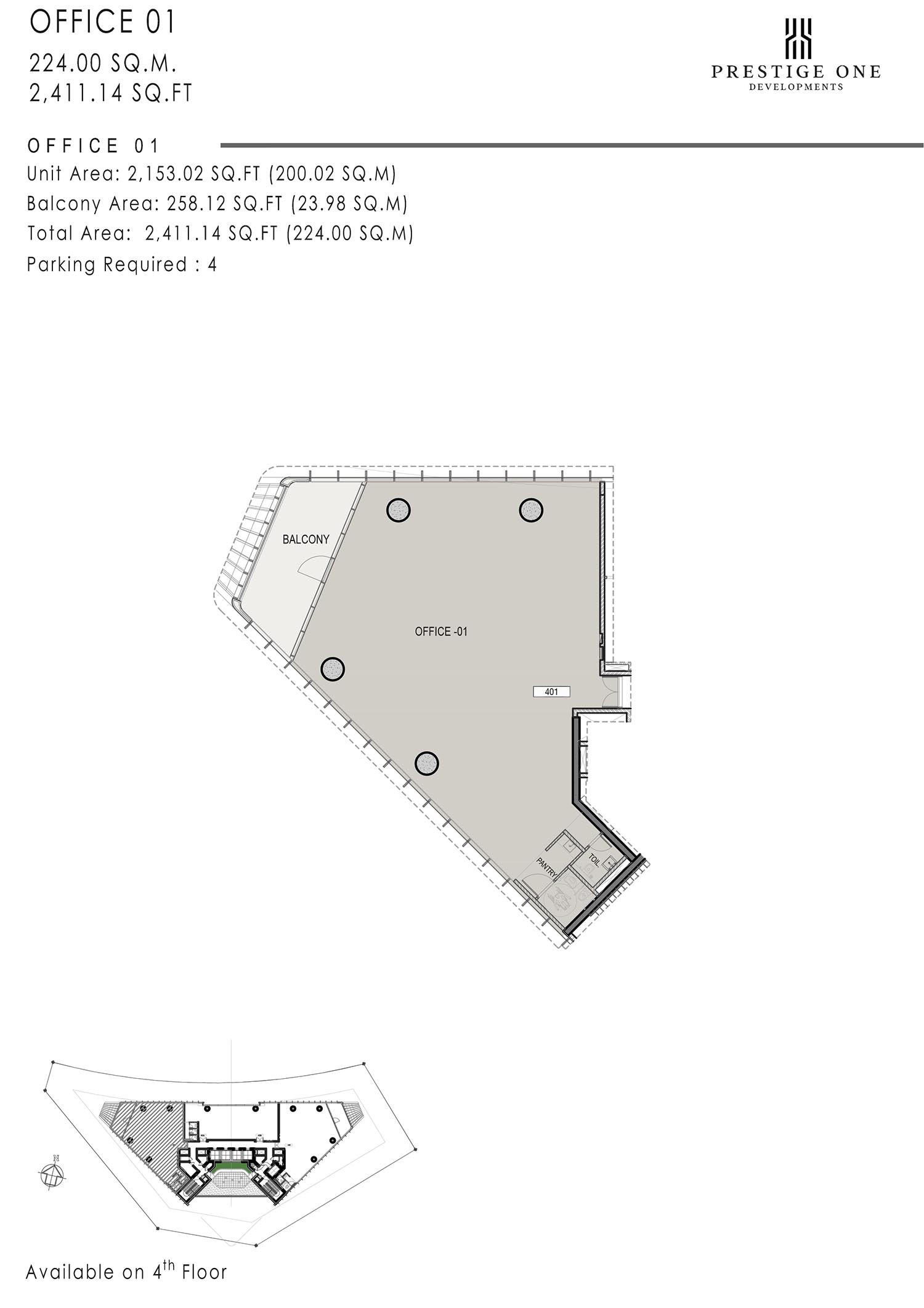 The floor plan of Prestige The One offers businesses a flexible and efficient layout, tailored to meet diverse commercial requirements. With an emphasis on openness and space utilization, the building’s layouts have been crafted to accommodate businesses of all sizes, from start-ups to multinational corporations. Each floor is designed to be highly adaptable, allowing tenants to create custom configurations that best suit their operational needs. In addition to traditional office spaces, the layouts integrate communal areas such as lounges, cafés, and relaxation zones, encouraging collaboration and interaction between employees.