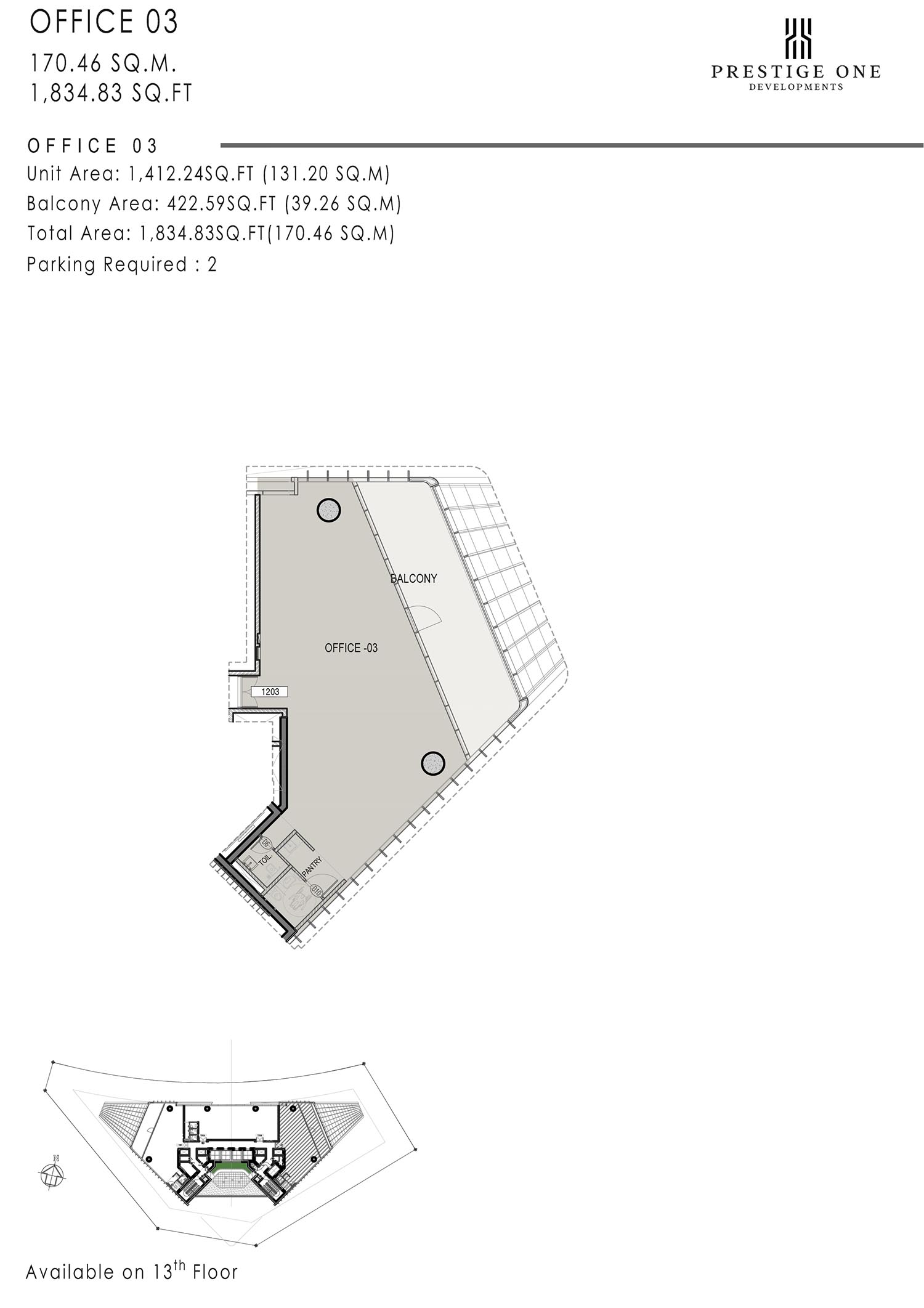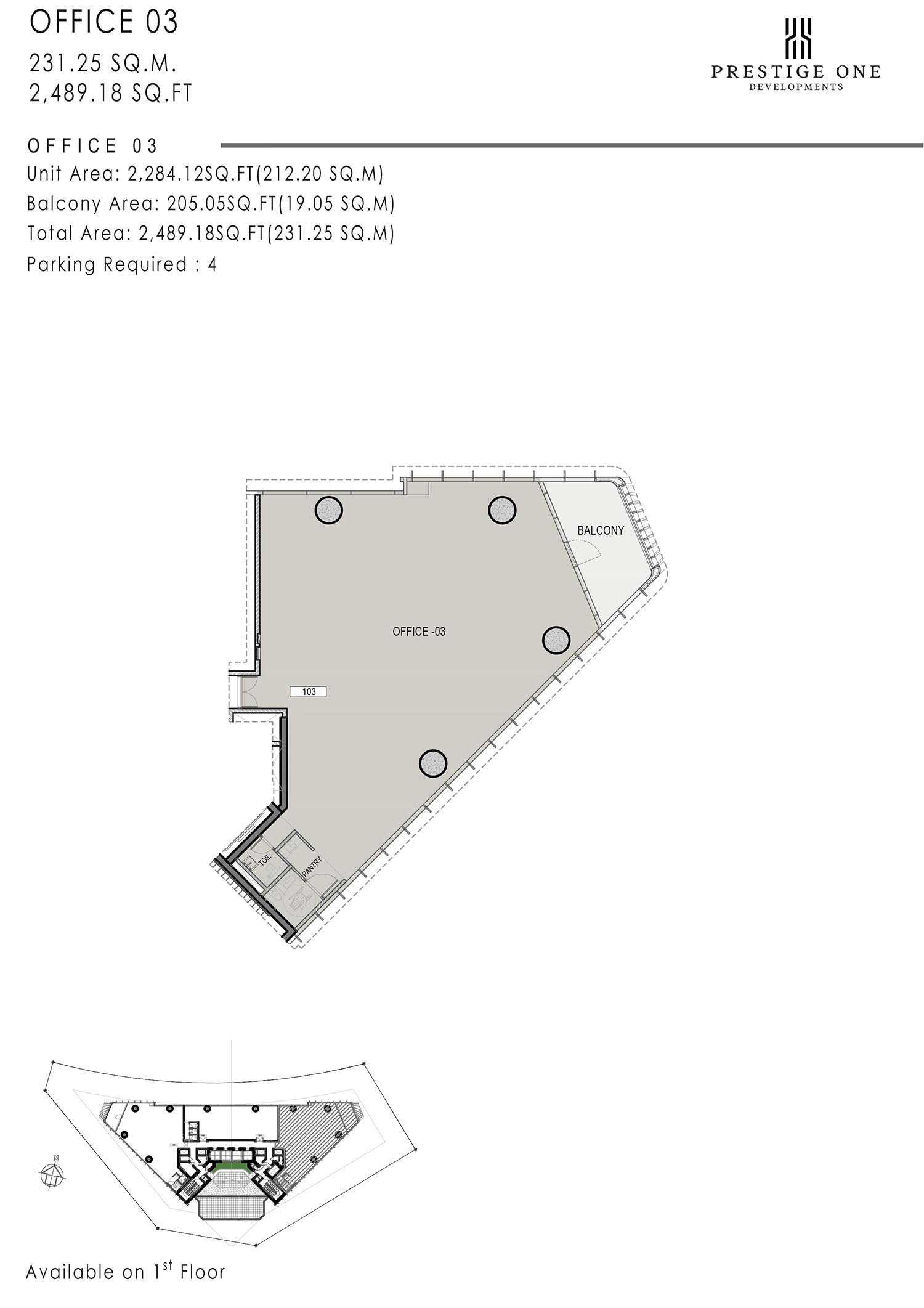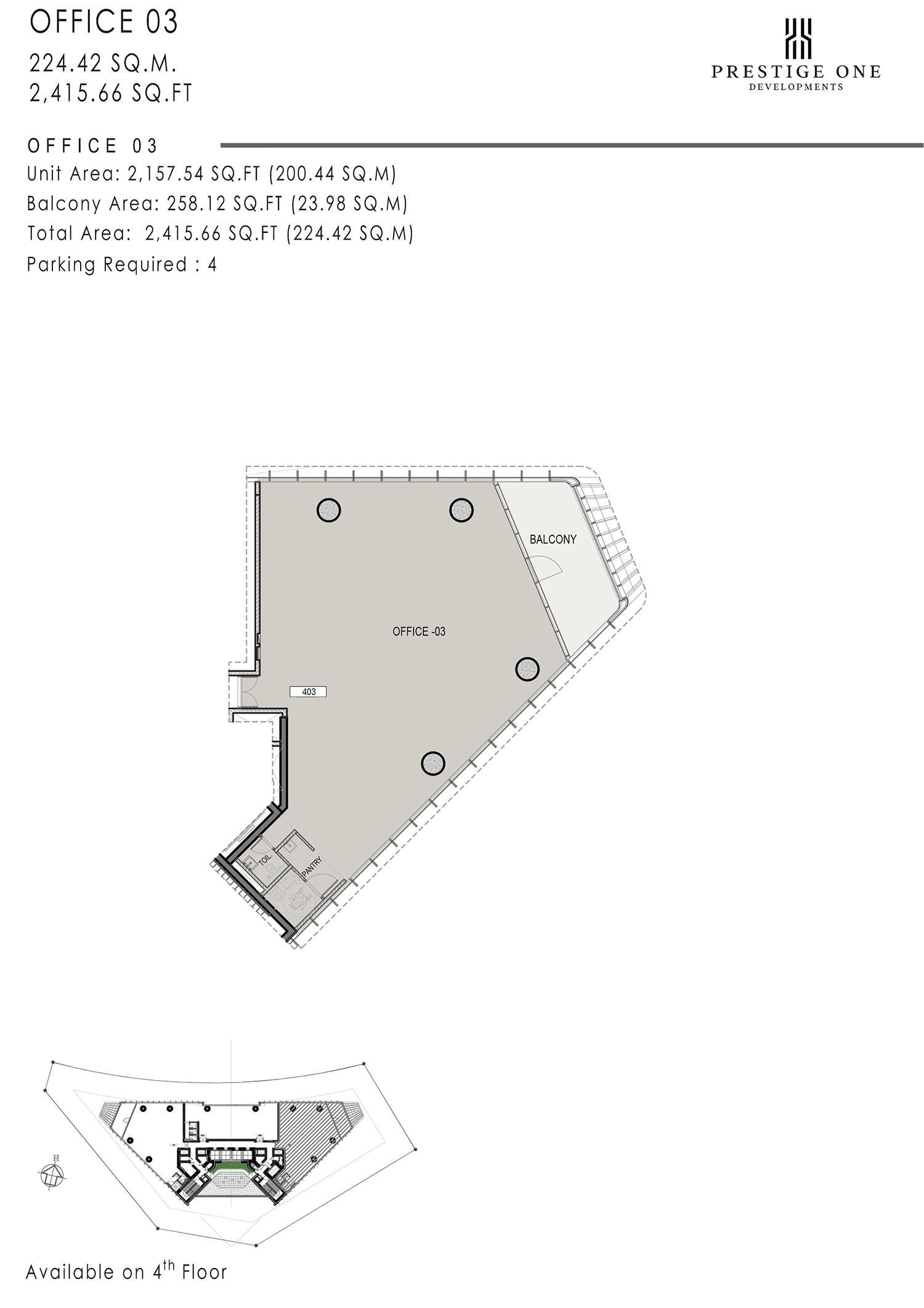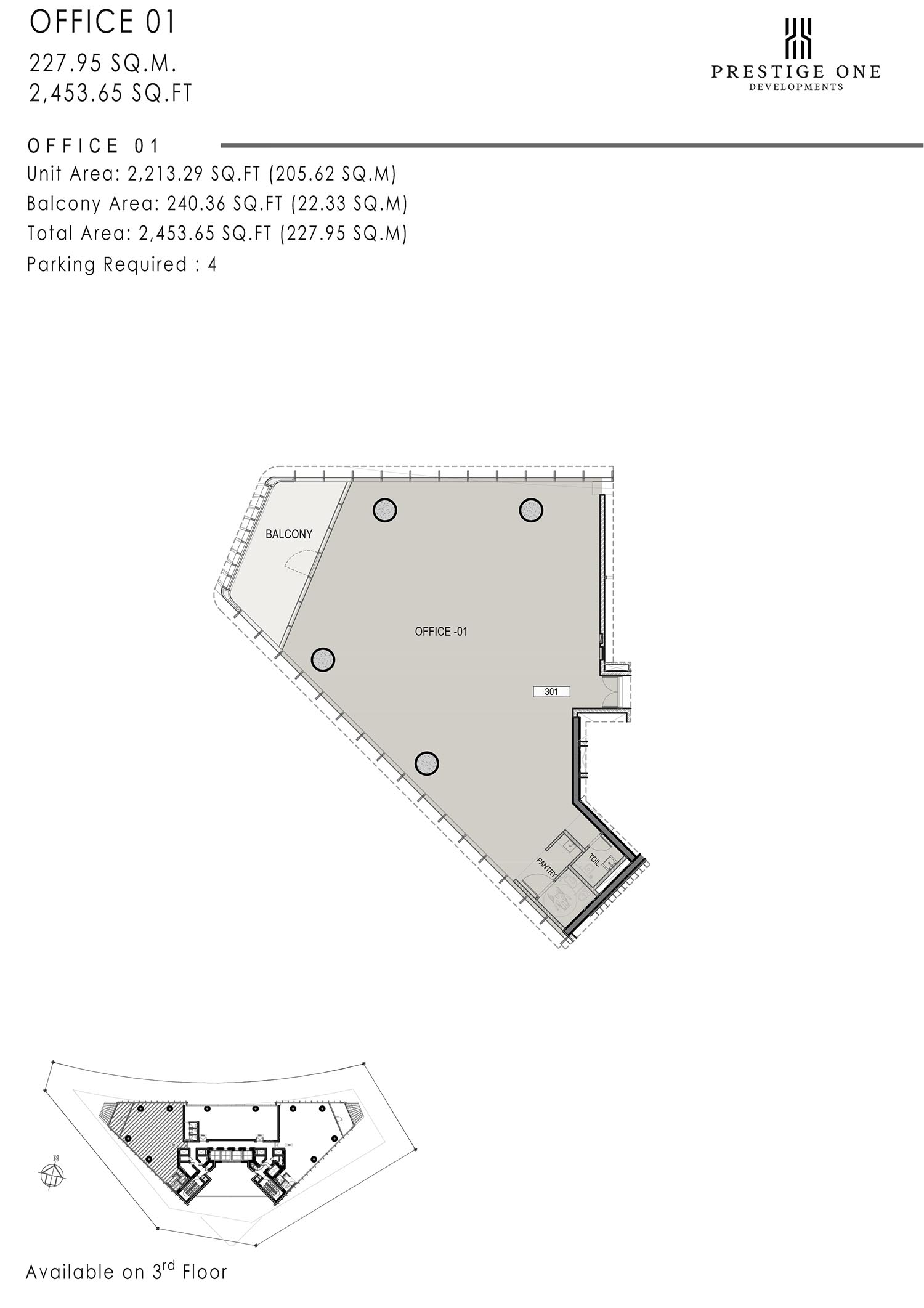 The floor plan of Prestige The One offers businesses a flexible and efficient layout, tailored to meet diverse commercial requirements. With an emphasis on openness and space utilization, the building’s layouts have been crafted to accommodate businesses of all sizes, from start-ups to multinational corporations. Each floor is designed to be highly adaptable, allowing tenants to create custom configurations that best suit their operational needs. In addition to traditional office spaces, the layouts integrate communal areas such as lounges, cafés, and relaxation zones, encouraging collaboration and interaction between employees.