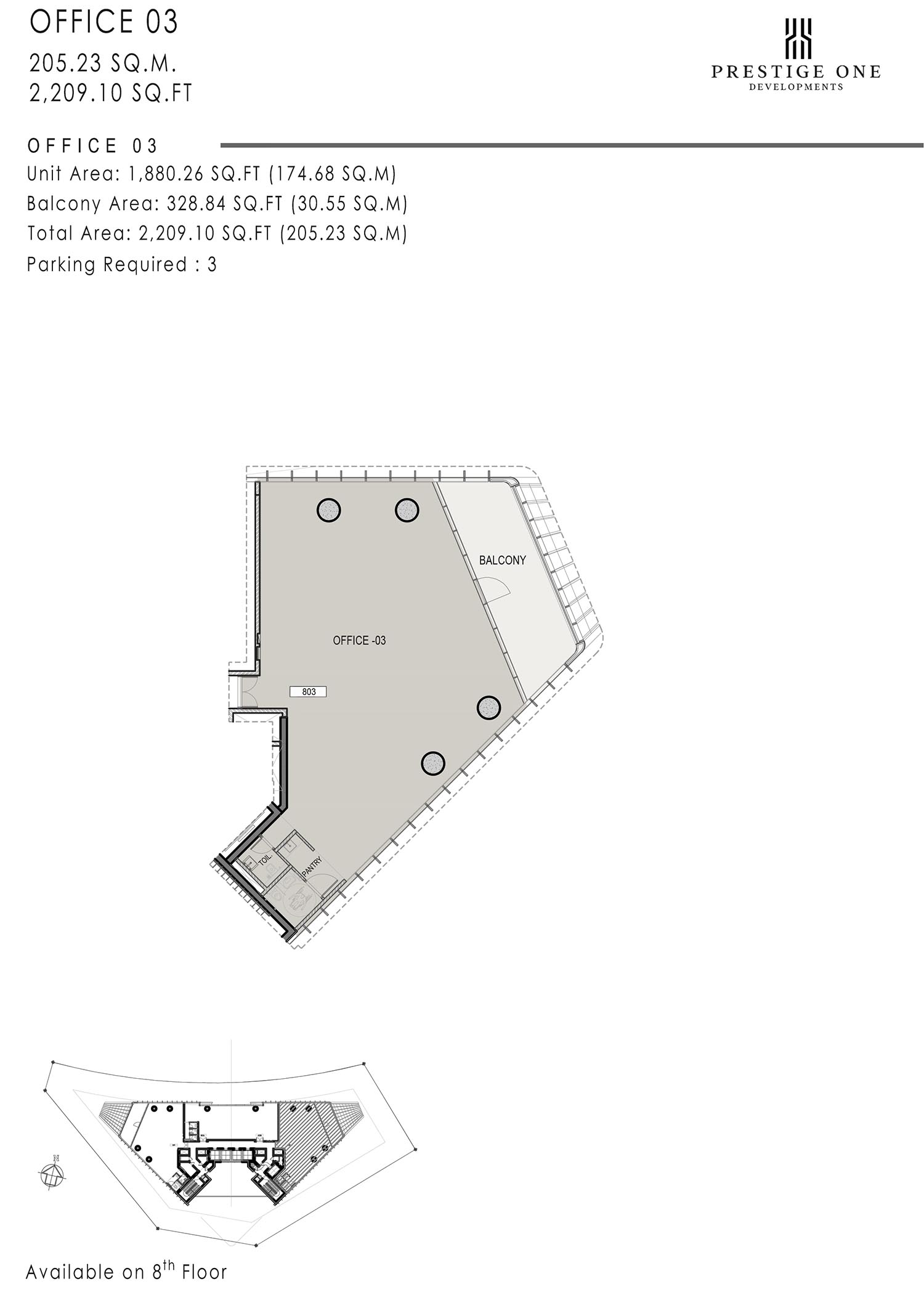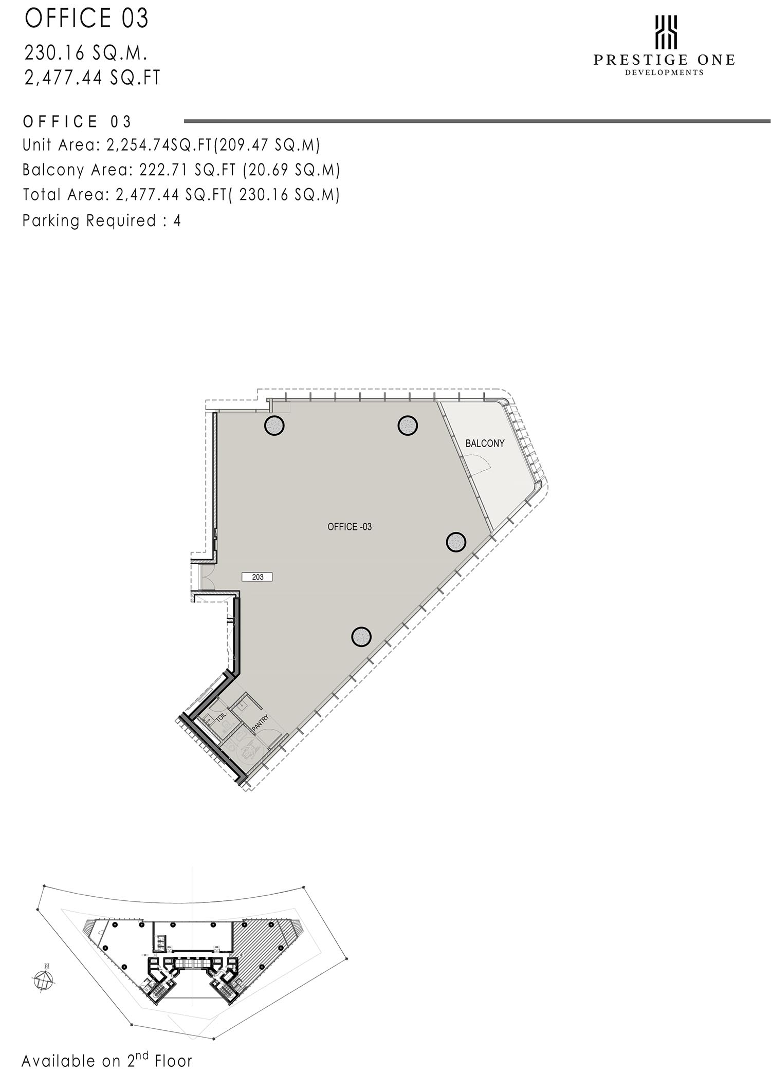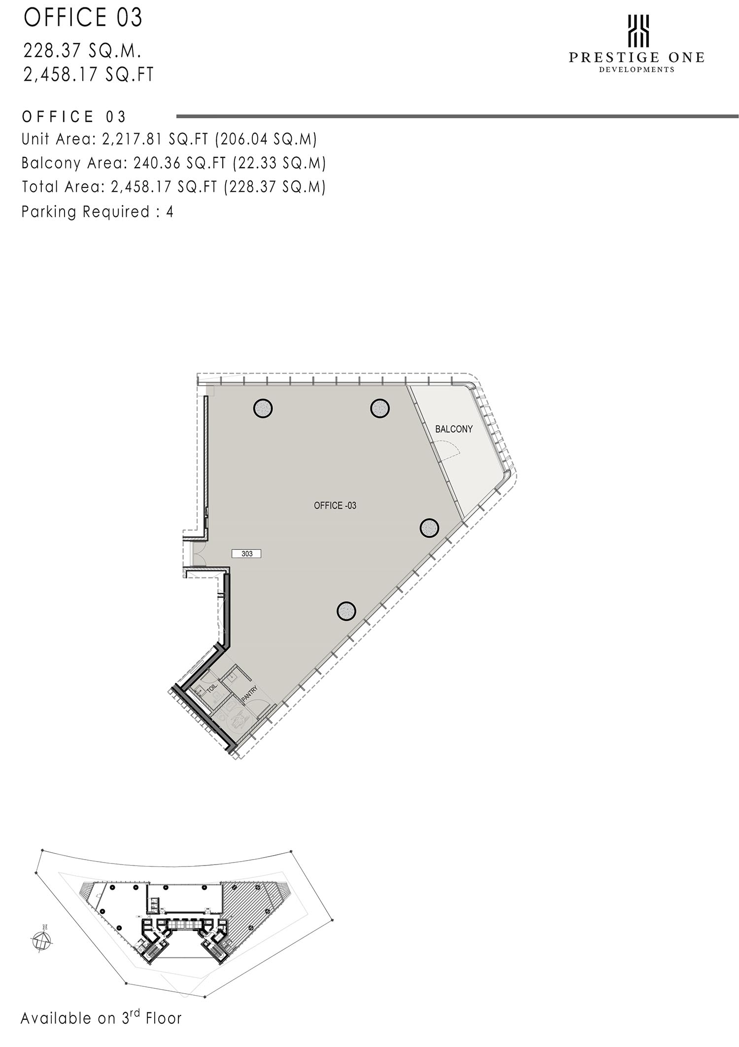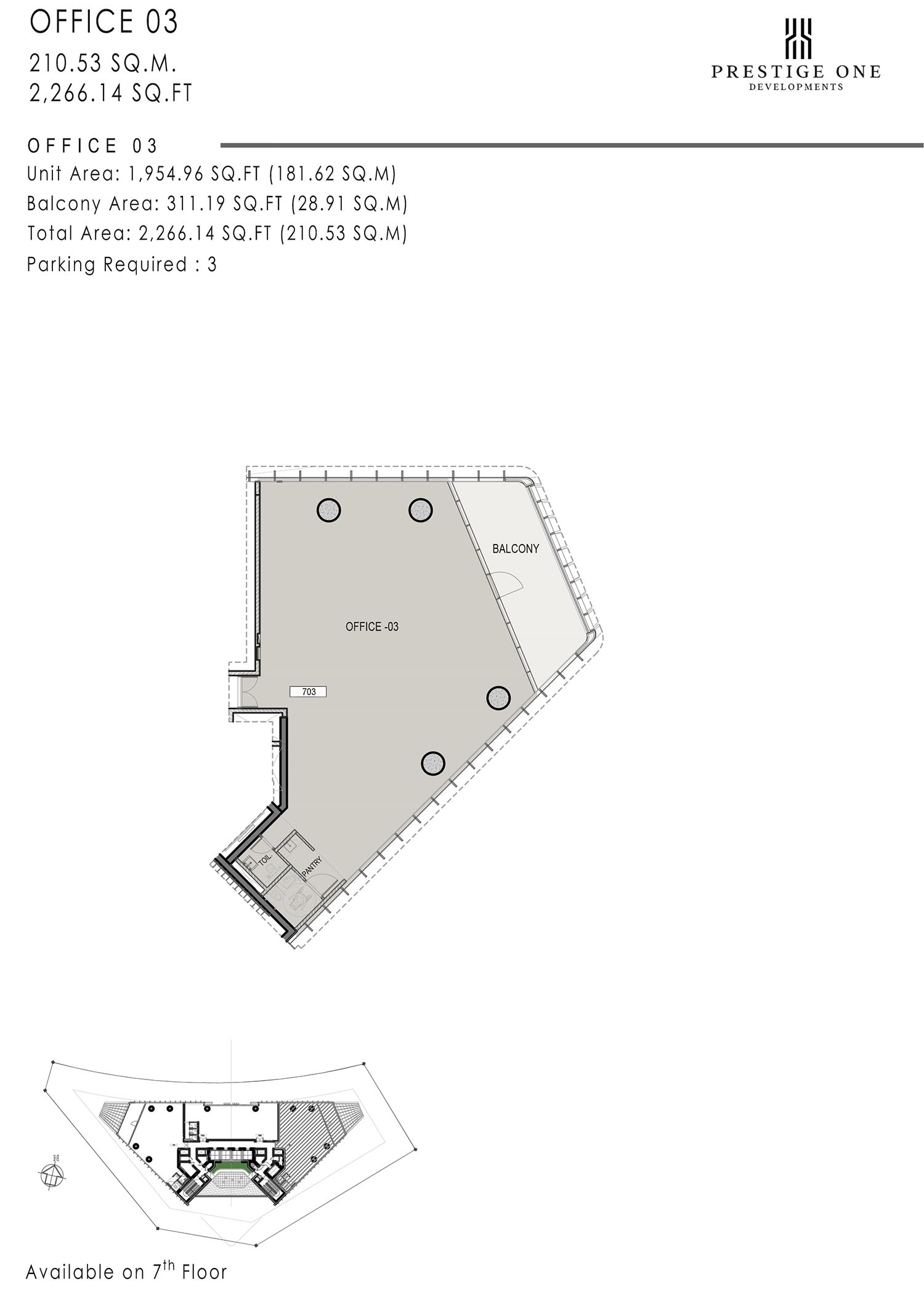 The floor plan of Prestige The One offers businesses a flexible and efficient layout, tailored to meet diverse commercial requirements. With an emphasis on openness and space utilization, the building’s layouts have been crafted to accommodate businesses of all sizes, from start-ups to multinational corporations. Each floor is designed to be highly adaptable, allowing tenants to create custom configurations that best suit their operational needs. In addition to traditional office spaces, the layouts integrate communal areas such as lounges, cafés, and relaxation zones, encouraging collaboration and interaction between employees.