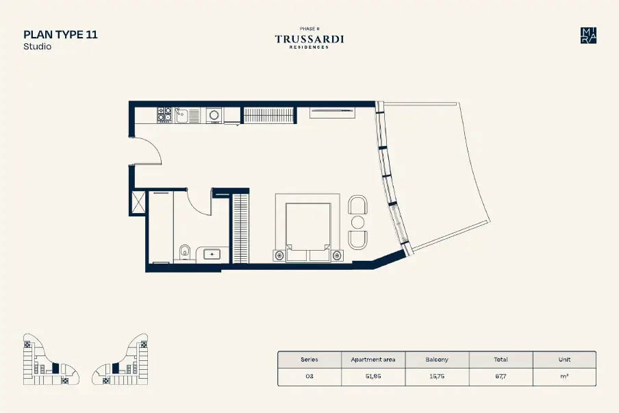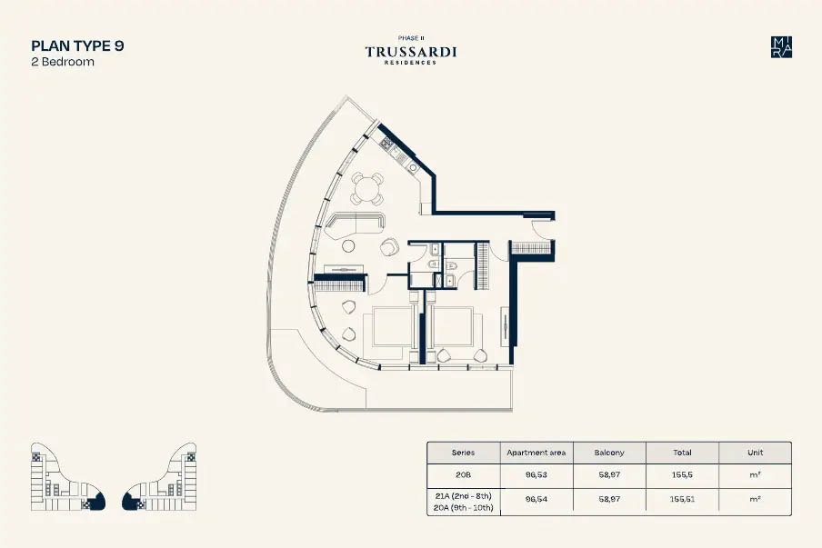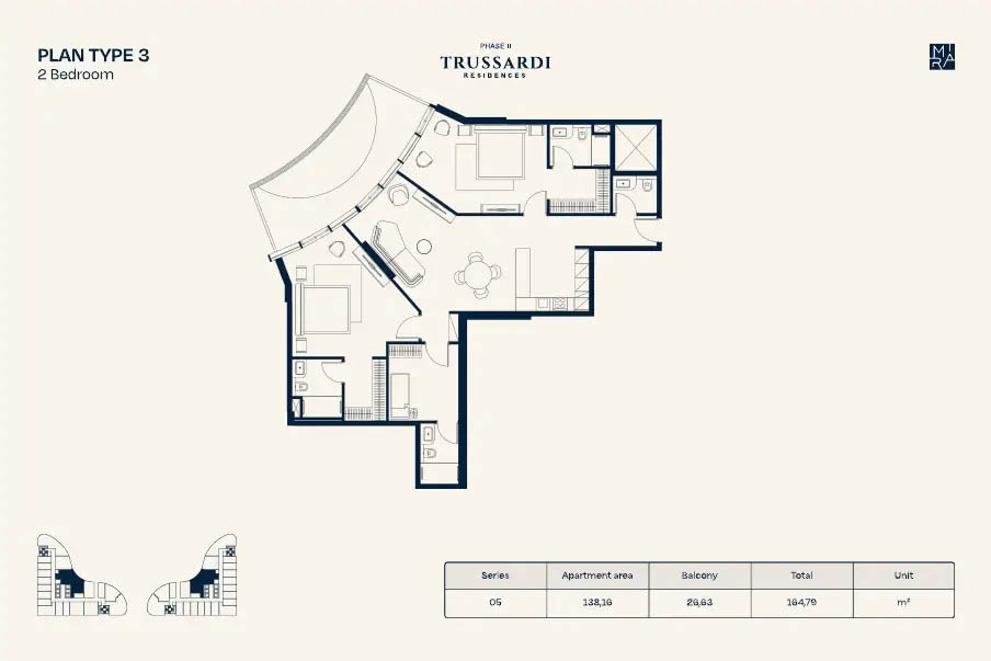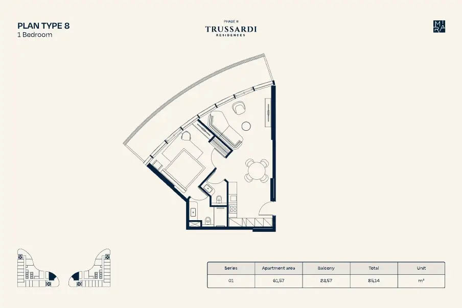 The architects at Trussardi Residences 2 built the floor plans of 1 and 2-bedroom apartments to bring the authentic luxury ambience. The luxury apartments incorporate open-layout designs, which maintain privacy throughout the spaces along with a feeling of openness. The building ensures maximum sunlight by using expansive windows together with cityscape and garden views. The apartments consist of roomy living spaces combined with smooth contemporary kitchens together with chic bedroom interiors that include private bathrooms. The exclusive feature includes private pool areas that select units offer as their unique benefit to residents who seek private space for relaxation.