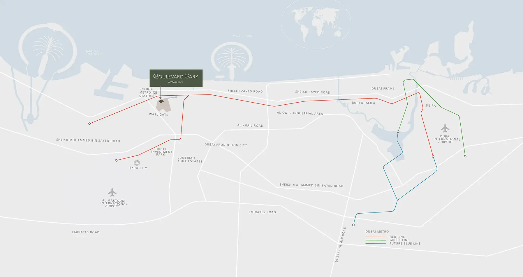 Boulevard Park at Wasl Gate - Dubai by Wasl Properties, offering urban & lavish studios to 4-bedroom apartments, duplexes, townhouses, & penthouses. Destined to elevate lifestyles, this brand-new massive development is positioned in the new heart of Jebel Ali Village. As the name suggests, it is an address that captures the lively locale of Centra Park and the prominent boulevard around it. This master project is defined by contemporary architecture, where modern living coexists with balanced natural harmony. Above all, it is not just a place to live, but an upcoming cosmopolitan escape that provides a self-sufficient contrast of living, where comfort, nature, and modern city living come together.