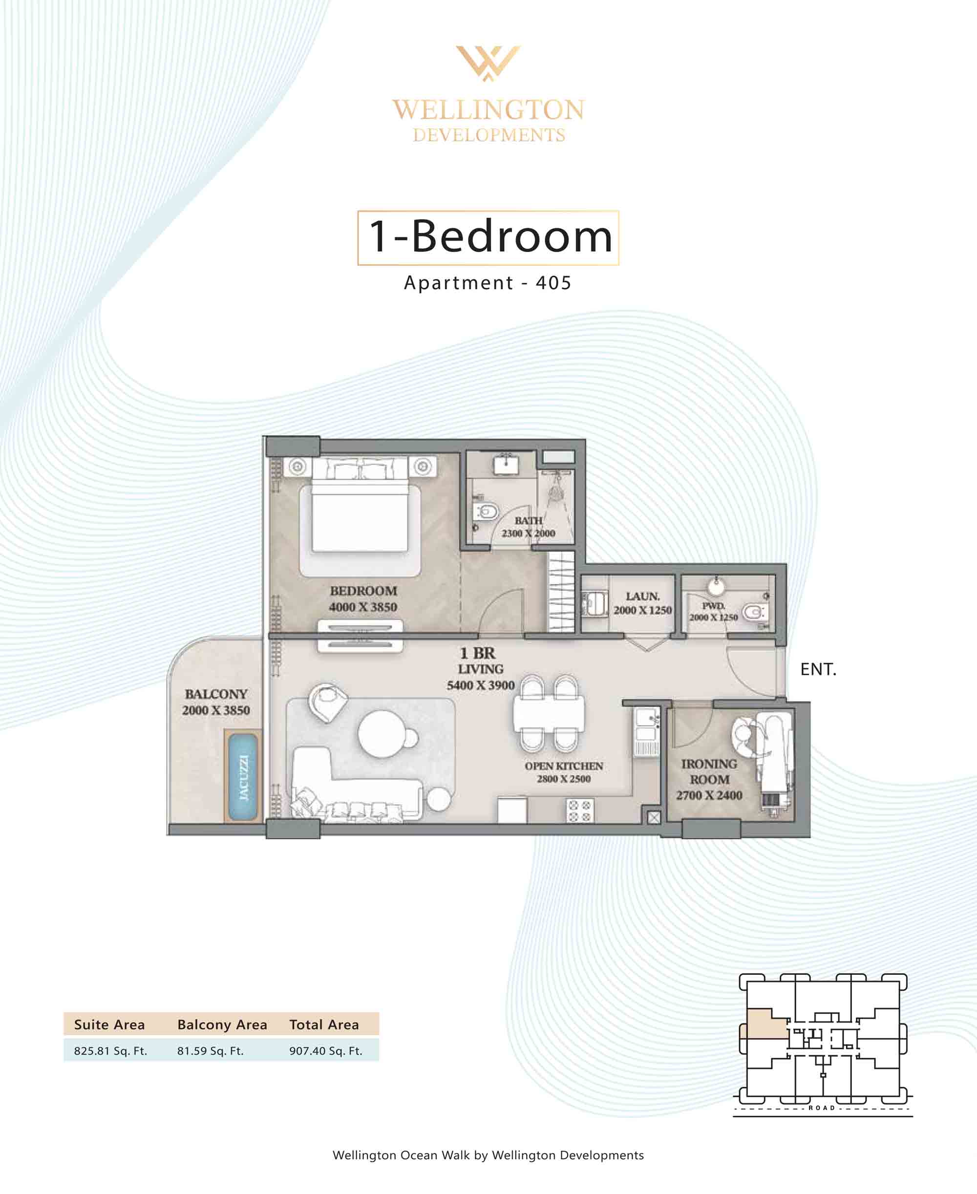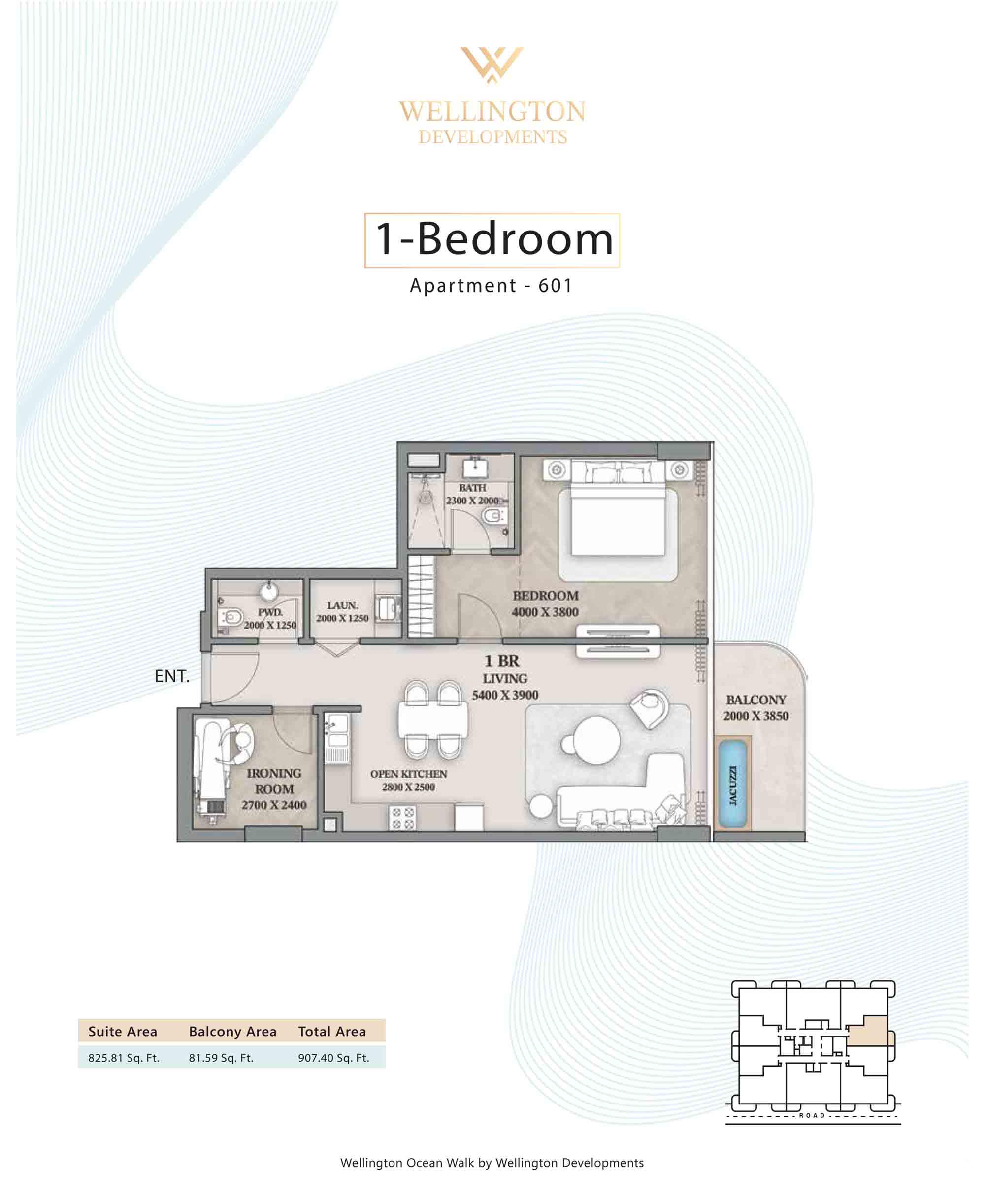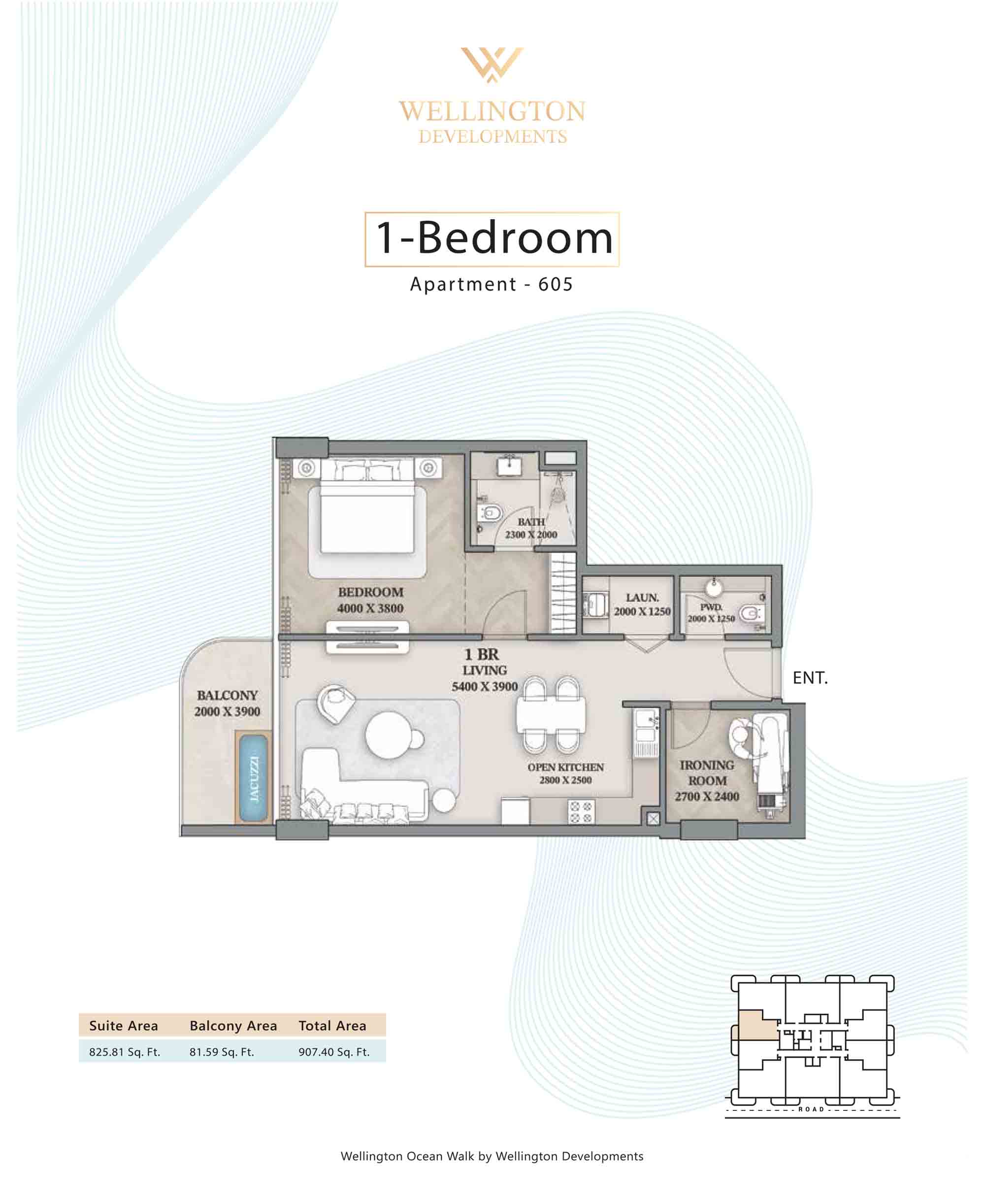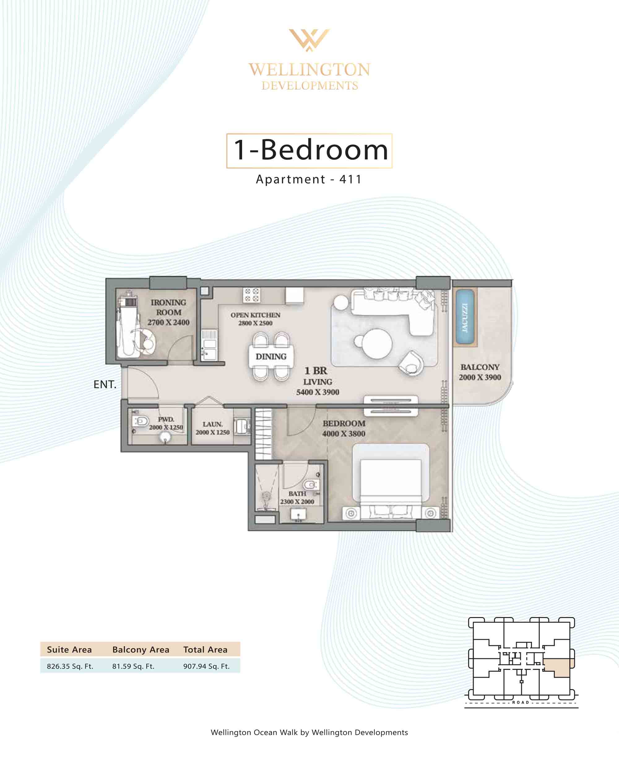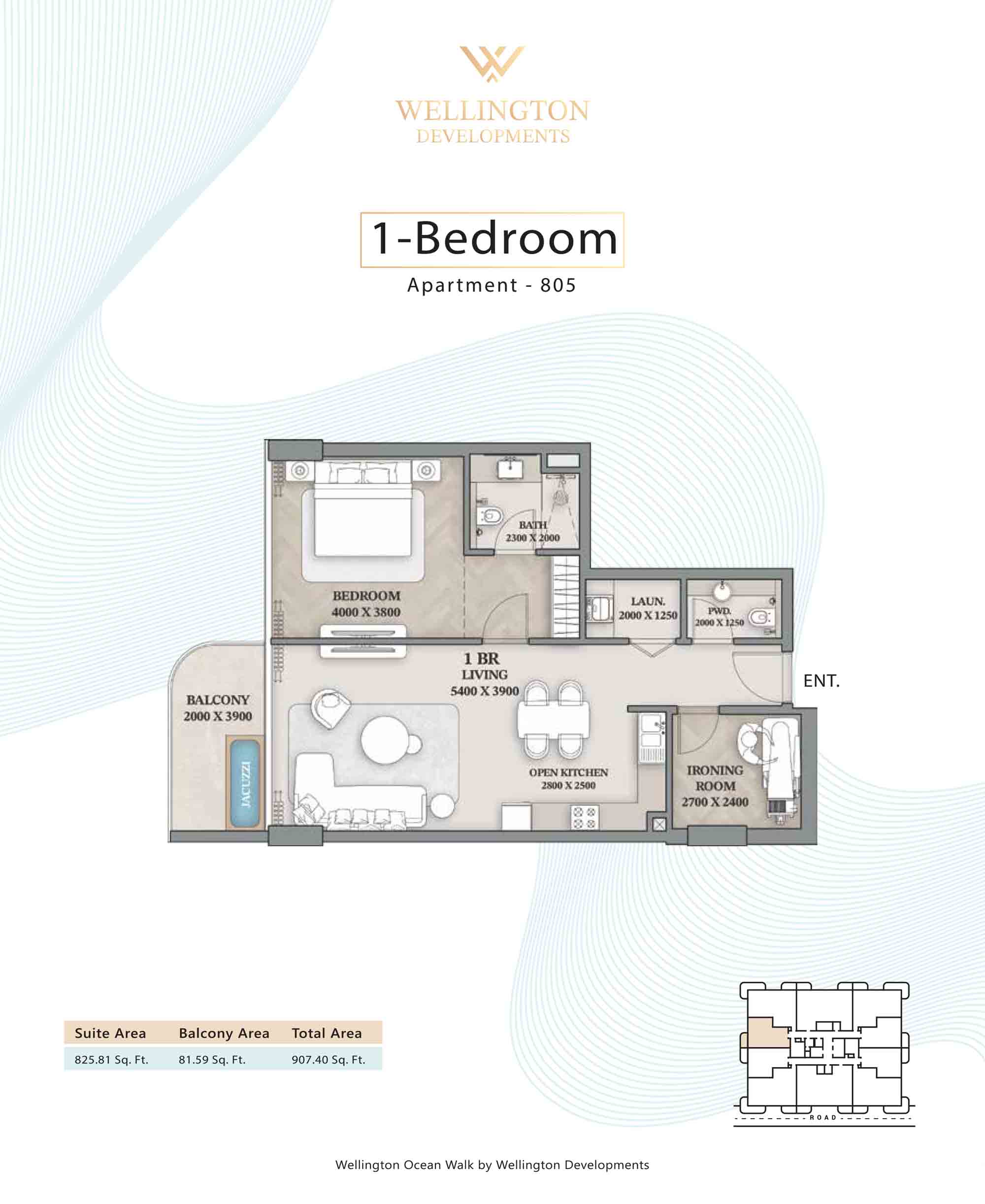 Floor plans at Wellington Ocean Walk include 1 and 2-bedroom apartments and 3-bedroom duplexes with options of either a personal jacuzzi or study room. In this 10-storey masterpiece, only 8 floors offer 79 homes. Each unit is perfect for individuals, couples, and families with vast layouts and open plan design to taste an elevated lifestyle. Here, every sanctuary is defined by high-ceiling windows and vast balconies to observe the serene waterfront and bustling island views. Insides are imagined with neutral and earthy tones, a furnished living space, including a dining zone and an open and fully equipped kitchen. Bedrooms are extremely warm and impressive with opulent lighting, tones, and quality furnishings. The interiors are crafted with meticulous attention to detail, incorporating premium finishes and high-quality materials that exude a luxurious ambience.